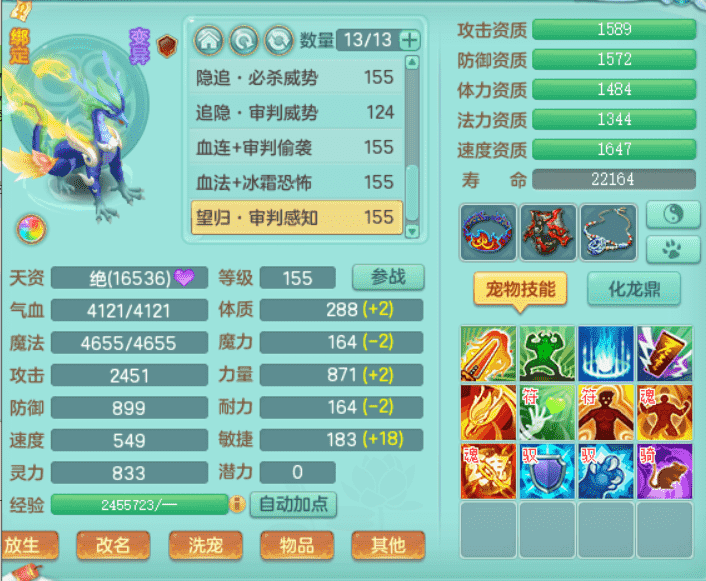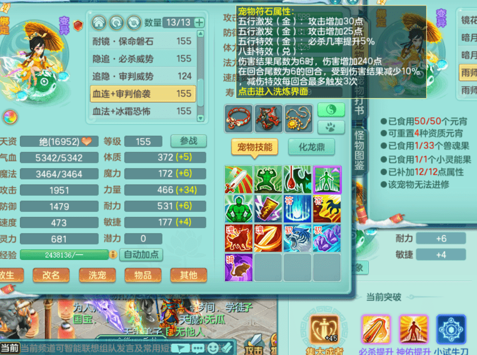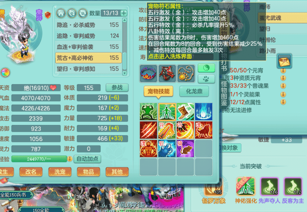 tx9442 天下无双159男万兽,1内丹青蛇,3镜子2龙姬,8觉醒,3真6字,7个满果子,黑白老虎,海洋豪宅,5.5化龙鼎+70攻击+280气血,带32天月卡1924金币