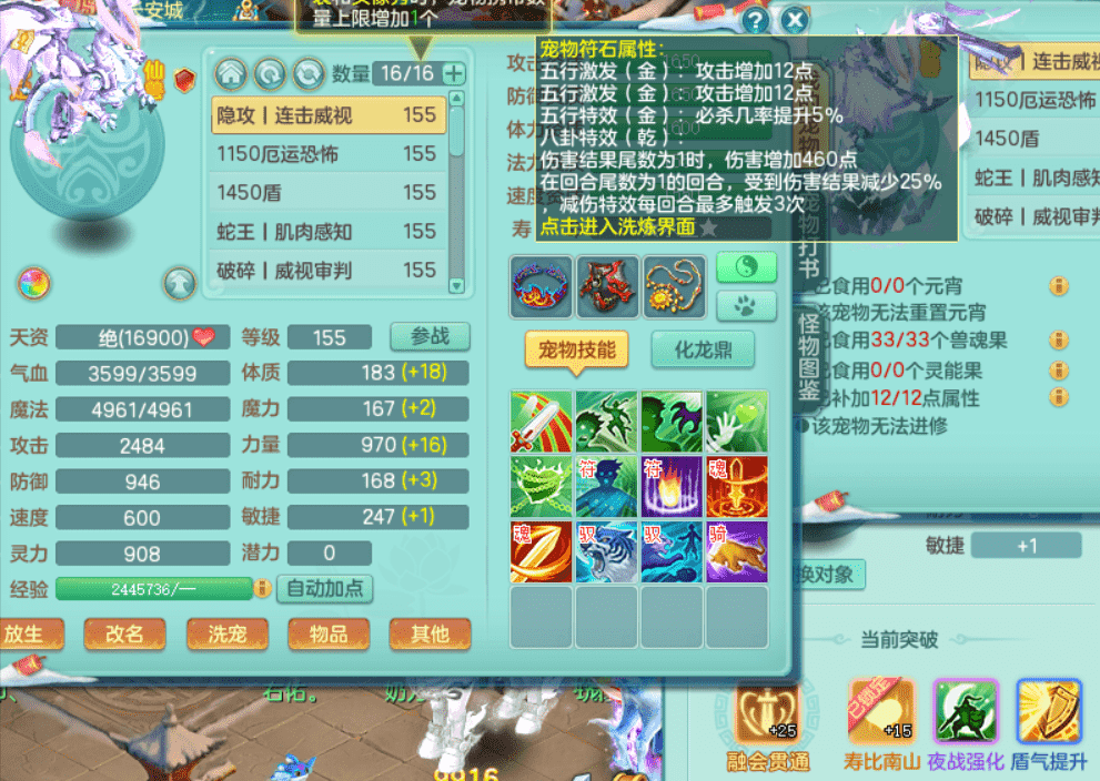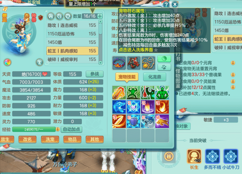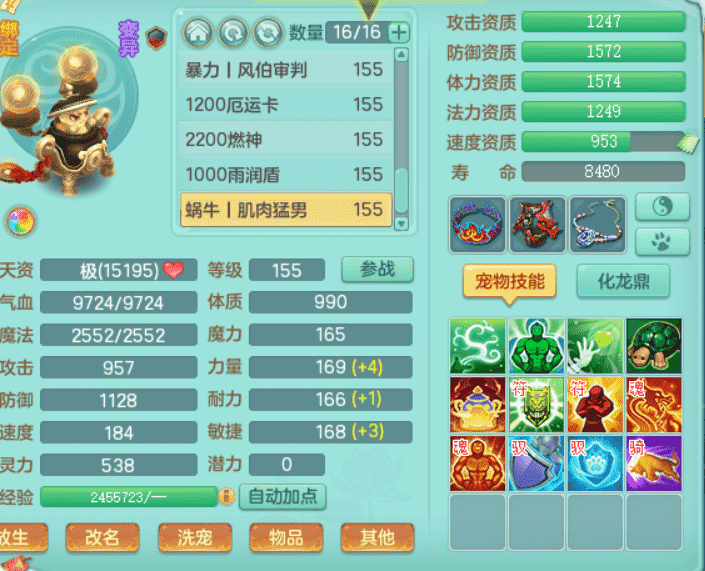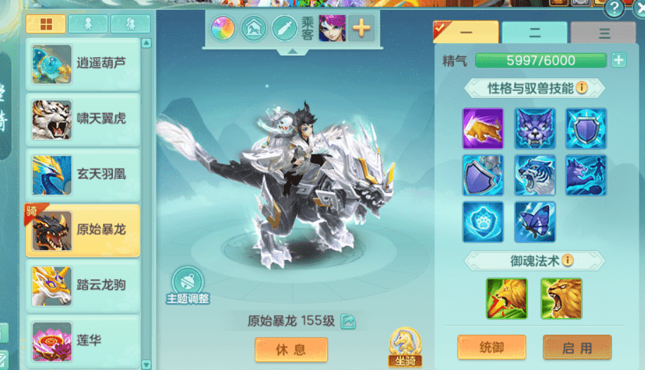 lt9453 龙腾九州 159男万兽 原始暴龙 4位靓号 3龙(1龙无内)2内丹神(仓库还有一个神兽内丹),4镜子1龙姬2特殊(善恶,禁锢),5觉醒,4真6字,20+满果子,10个BB皮肤,16/16格子,带2000金币
