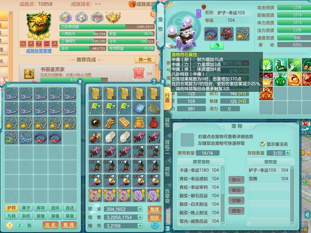 xa9463笑傲江湖99女龙宫1龙无内,2内胆神,【13只觉醒,已潜龙】,1宠皮,五雷单加34头,160易成长烽火单加链子,愤怒单加33腰带,易成长四海单加33鞋子,2.5基础鼎,9个纯六字,1个5字,19只满果子,宠排在榜,3只双人坐骑,原始暴龙泰坦+逍客+西瓜冰武器,月卡还有196天。带个159女龙宫精灵歌,1特殊上善,6.0鼎