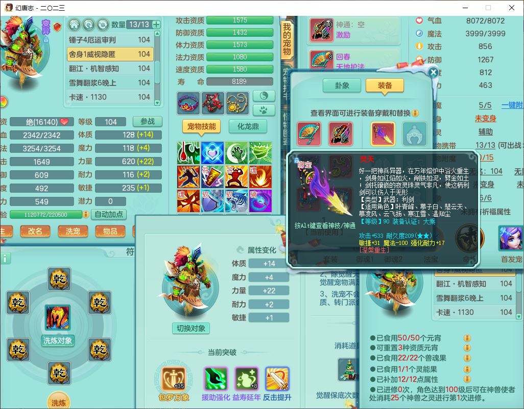 23-9474,2023区99男无量【潜龙号】体敏、全力双精灵,1内4翻江3舍身,9觉醒8六字1五字5四字综合14只满果子,10红装备,回春罗汉武器,坚毅水清项链,愤怒晶清腰带,Y四海鞋子,鼎2.5+42+168,9个仙兽灵,仓库多宝宝胚子