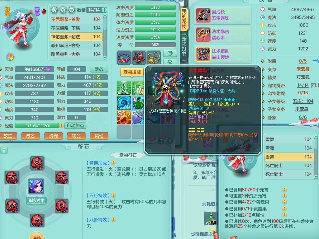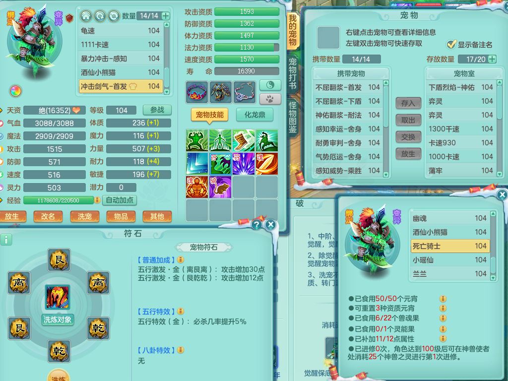 tx9493天下无双99男魔王全魔精灵,满级共鸣,1内丹神龙马1皮,9只满果子4觉醒3个5字,9红双法缭星辰之拥,Y五雷头,法爆水清武器,法缭双红衣服,法缭鞋,物理星辰之拥,Y破甲鞋,鼎2.5+42+168,2套符石,85天月卡,永久头饰精灵皮肤,飞行双人坐骑