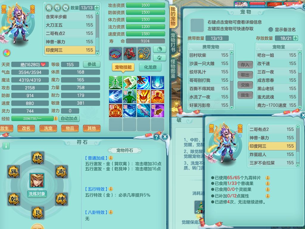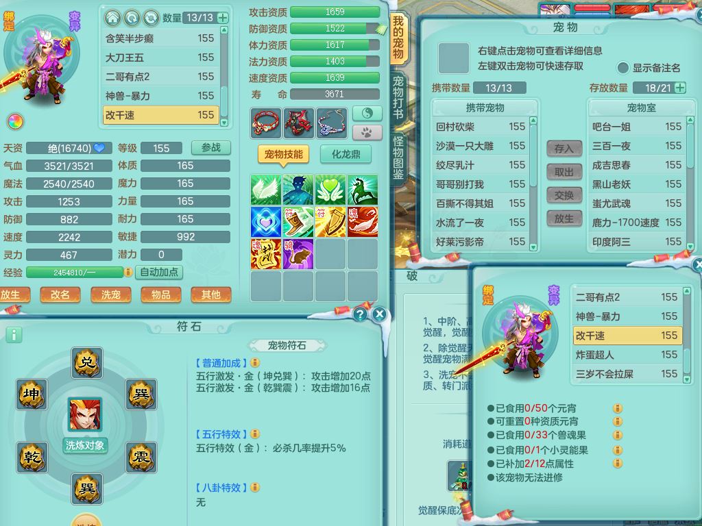 tx9513天下无双159男方寸精灵舞,1内丹神3特殊(剑胆/兽决墨守/藕断)2镜花灵,2觉醒,10红,封印双红头,单加封锁武器,神佑四海项链,愤怒Y腰带,单加Y晶清鞋,鼎4.5,78天月卡,庭院151房屋153