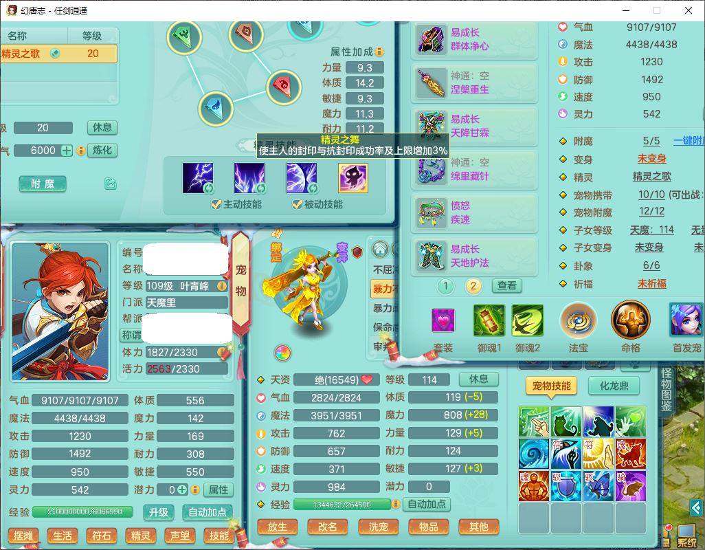 rj9526任剑逍遥109男无量【潜龙号】精灵歌,1龙(换、无内)1内丹青蛇1翻江2羽袭1飞羽,11觉醒1宠皮9六字17只满果子,11红装备,回春心神武器,Y罗汉衣服,药香四海项链,愤怒疾速,Y笑里鞋子,一套输出装备,587法爆武器,Y群体守备衣服,神佑项链,Y破血鞋子,鼎3.0+42+168,庭院160,永久外观、精灵皮肤,301W神武币,10个内丹碎片,1双人飞行坐骑,带109成品男天魔精灵舞,10红装备,成品159女魔王9红装备