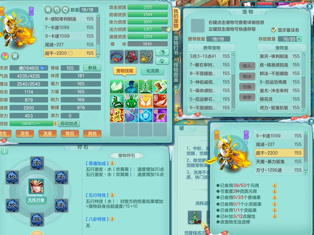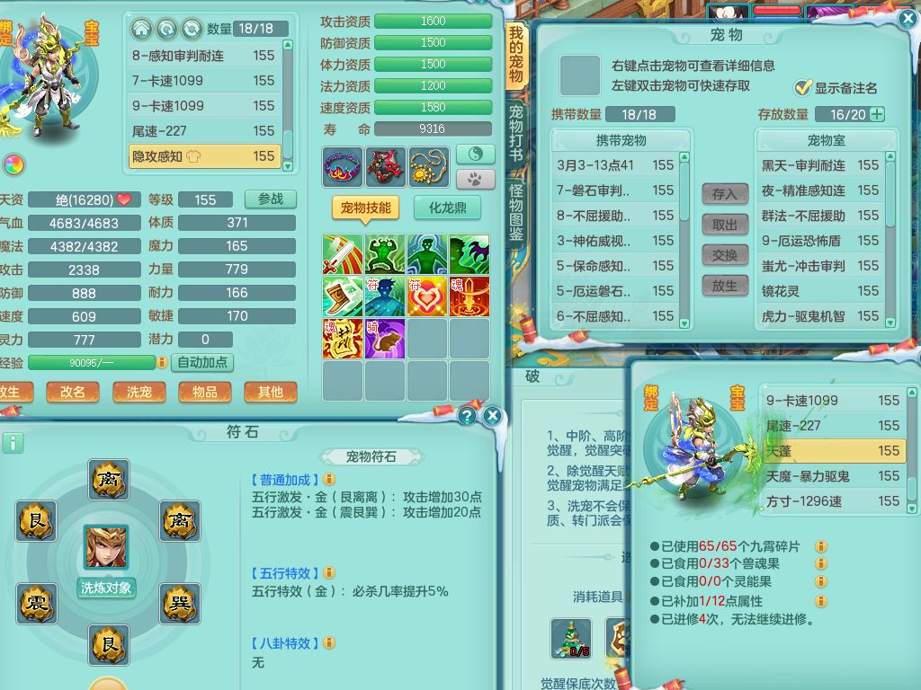 sr9520生日快乐159男万兽【潜龙号】精灵歌,4字靓号,4龙(换)3内(1青蛇)2特殊(风卷/破碎兽决)18格子26只满果子8觉醒13个纯6字,全身单加,Y玉清头,916狂暴双红武器,崩山项链,鼎5.5+70+280,28天月卡,庭院167房屋155,永久外观精灵皮肤,1640金币,宠排在榜,4坐骑(2只双人)带150奶粉佛门