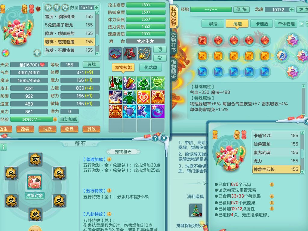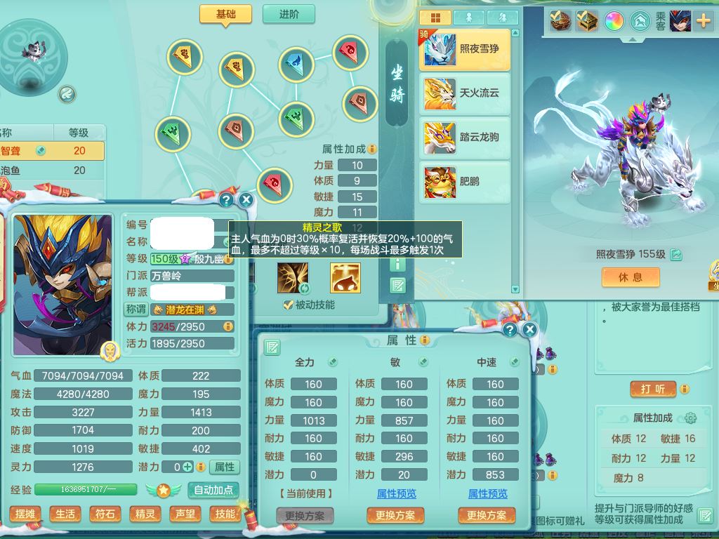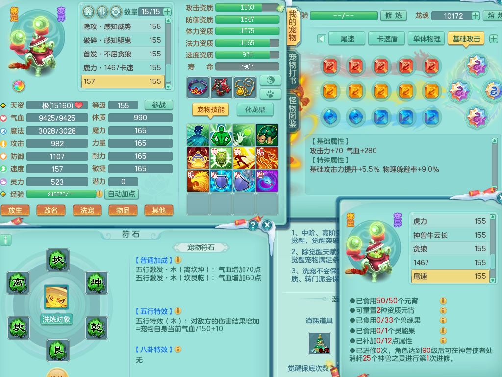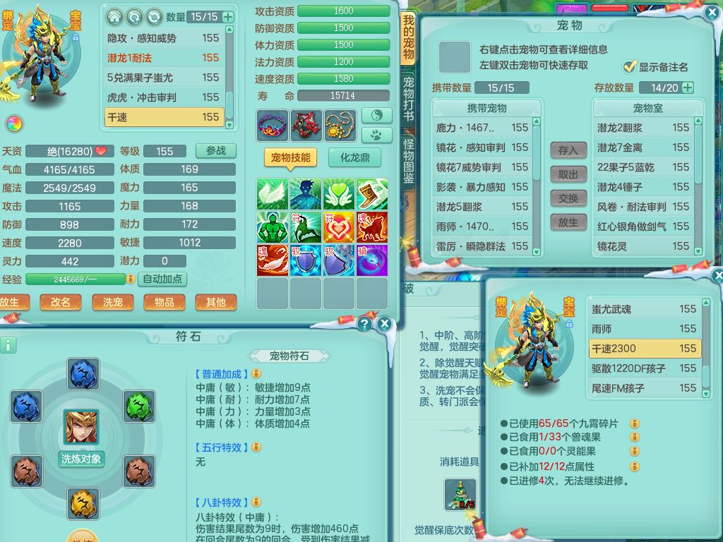 tx9522天下无双159男万兽【潜龙号】精灵歌,1龙(换)2内2皮7特殊(青霜/虎虎/影袭/翻江*2/兽决月光/逆龙)19只满果子9觉醒7个纯6字,全身单加,917必杀武器,崩山衣服,神佑双红项链,Y双红鞋,鼎5.5+70+280,28天月卡,永久外观精灵皮肤,100多果子,1677金币,3只双人坐骑,带150奶粉魔王