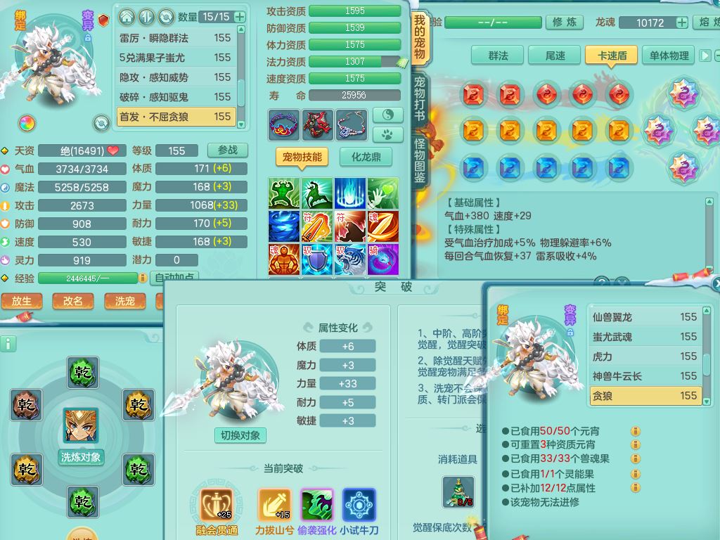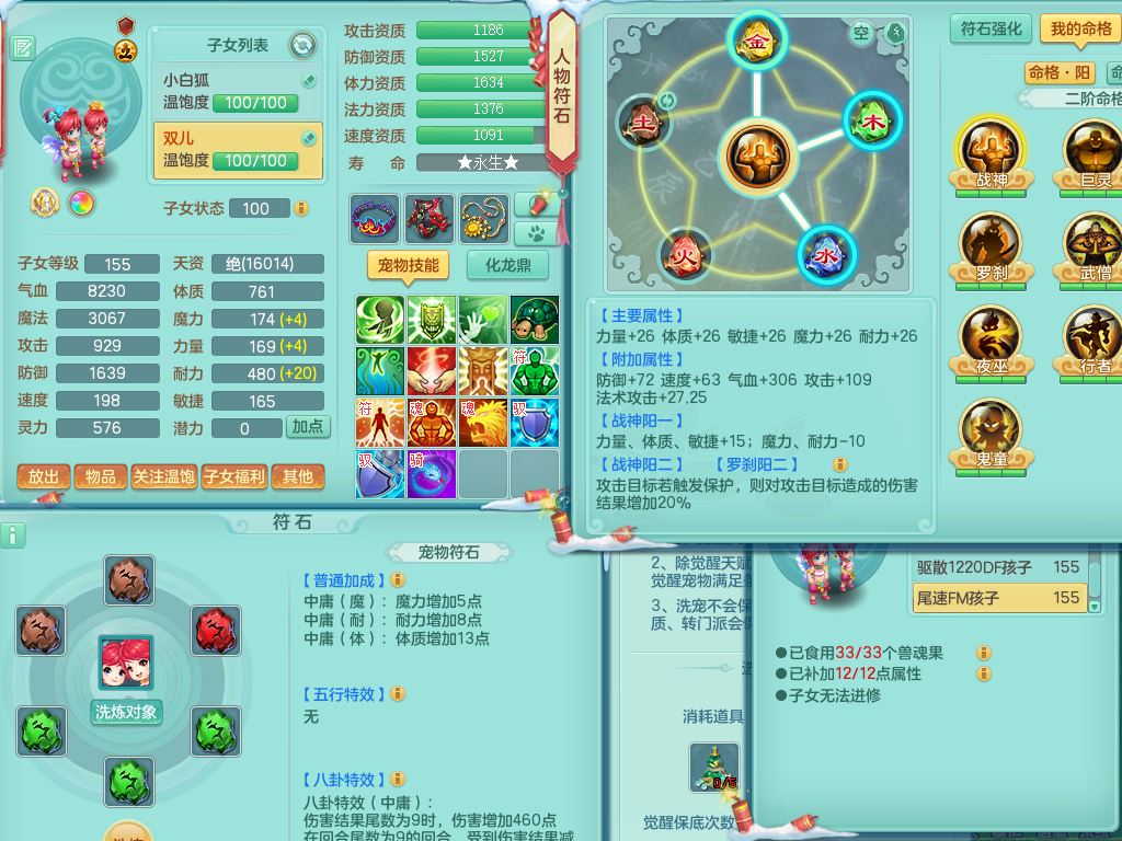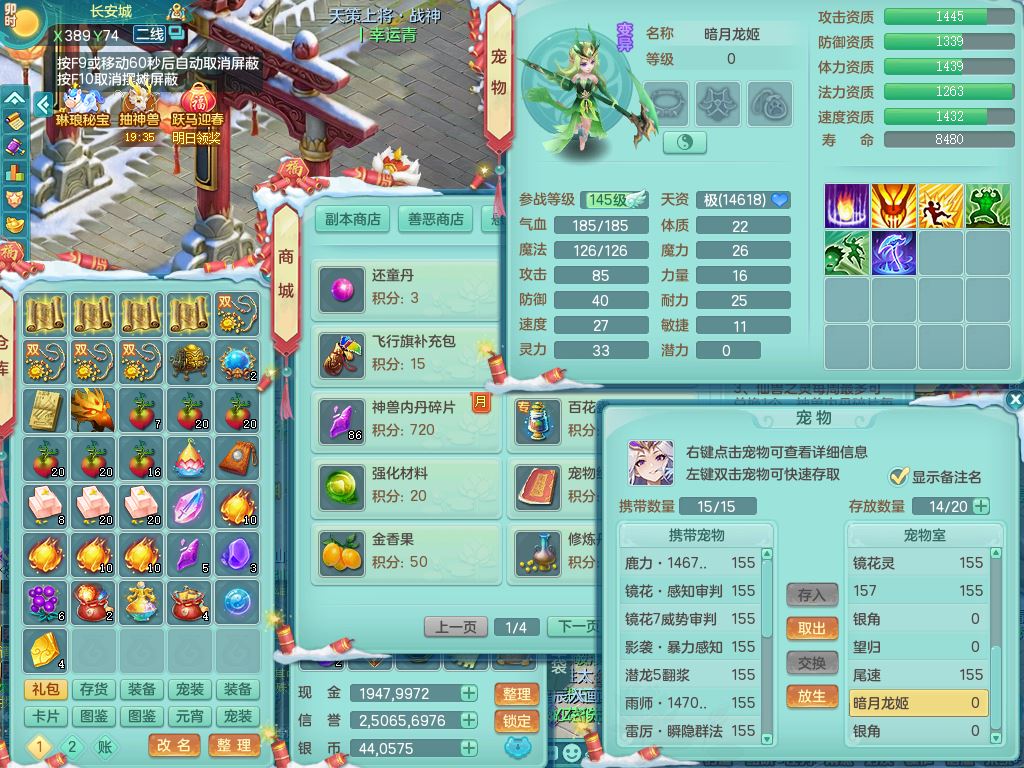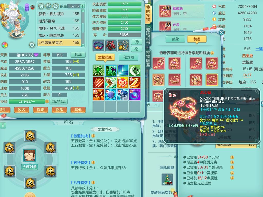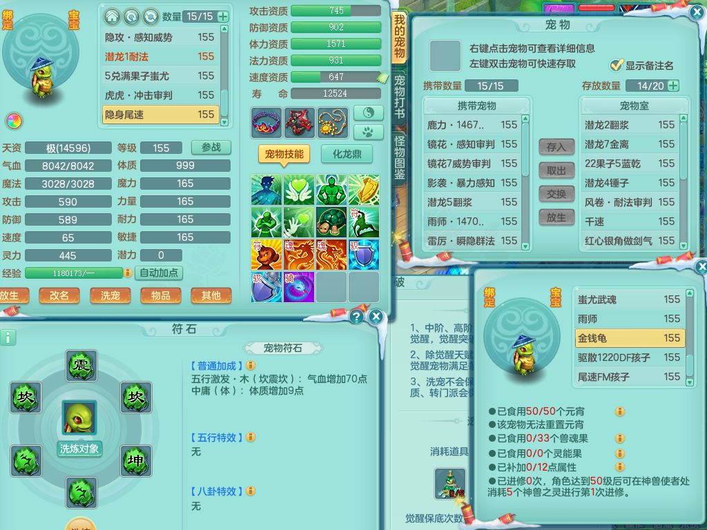 tx9522天下无双159男万兽【潜龙号】精灵歌,1龙(换)2内2皮7特殊(青霜/虎虎/影袭/翻江*2/兽决月光/逆龙)19只满果子9觉醒7个纯6字,全身单加,917必杀武器,崩山衣服,神佑双红项链,Y双红鞋,鼎5.5+70+280,28天月卡,永久外观精灵皮肤,100多果子,1677金币,3只双人坐骑,带150奶粉魔王