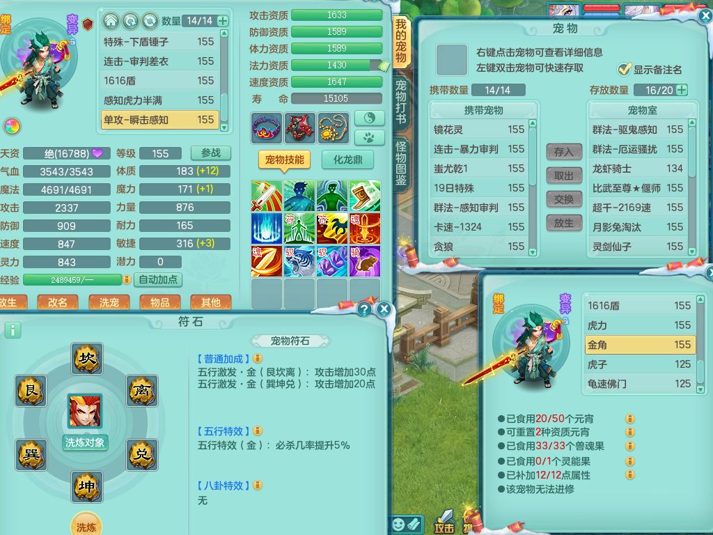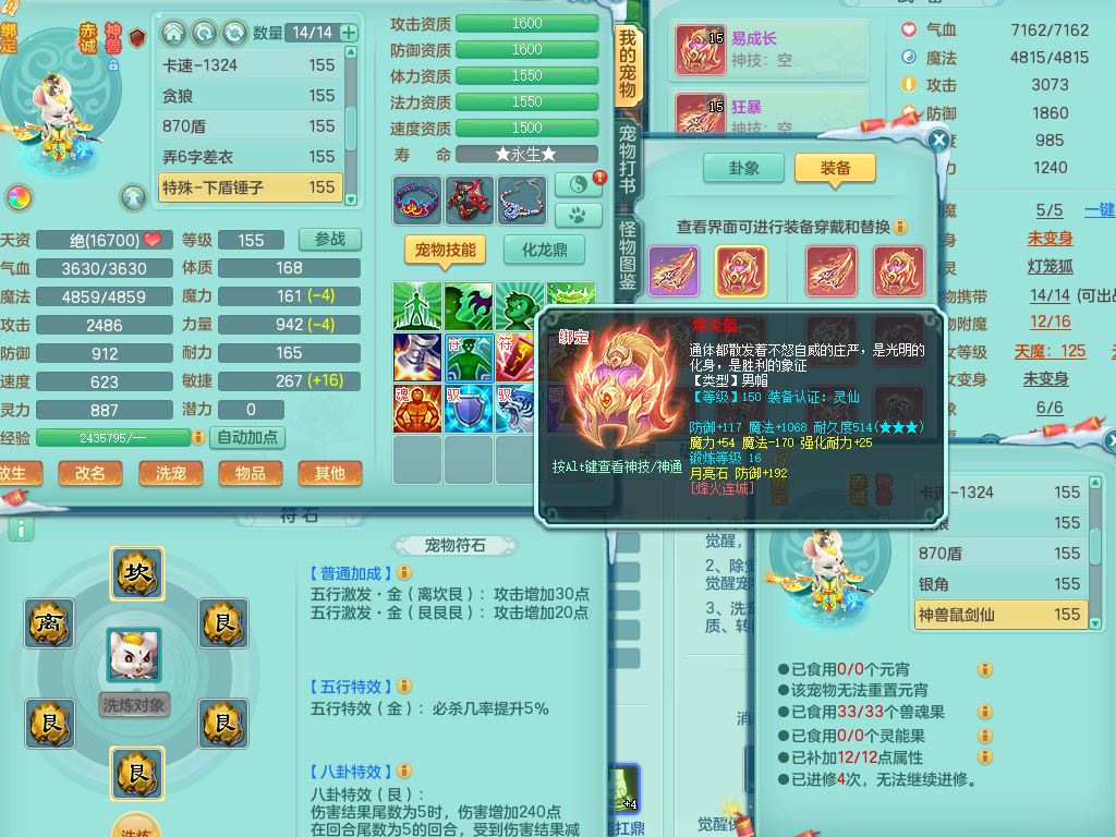sr9527生日快乐159男万兽【准潜龙,只差4宠物装备4血石头潜龙】精灵舞,1龙(换,无内)1内1皮,12只满果子7觉醒7个纯6字,918狂暴武器,单加Y破血鞋,鼎4.5+70,永久外观精灵皮肤,宠排在榜,飞行双人坐骑