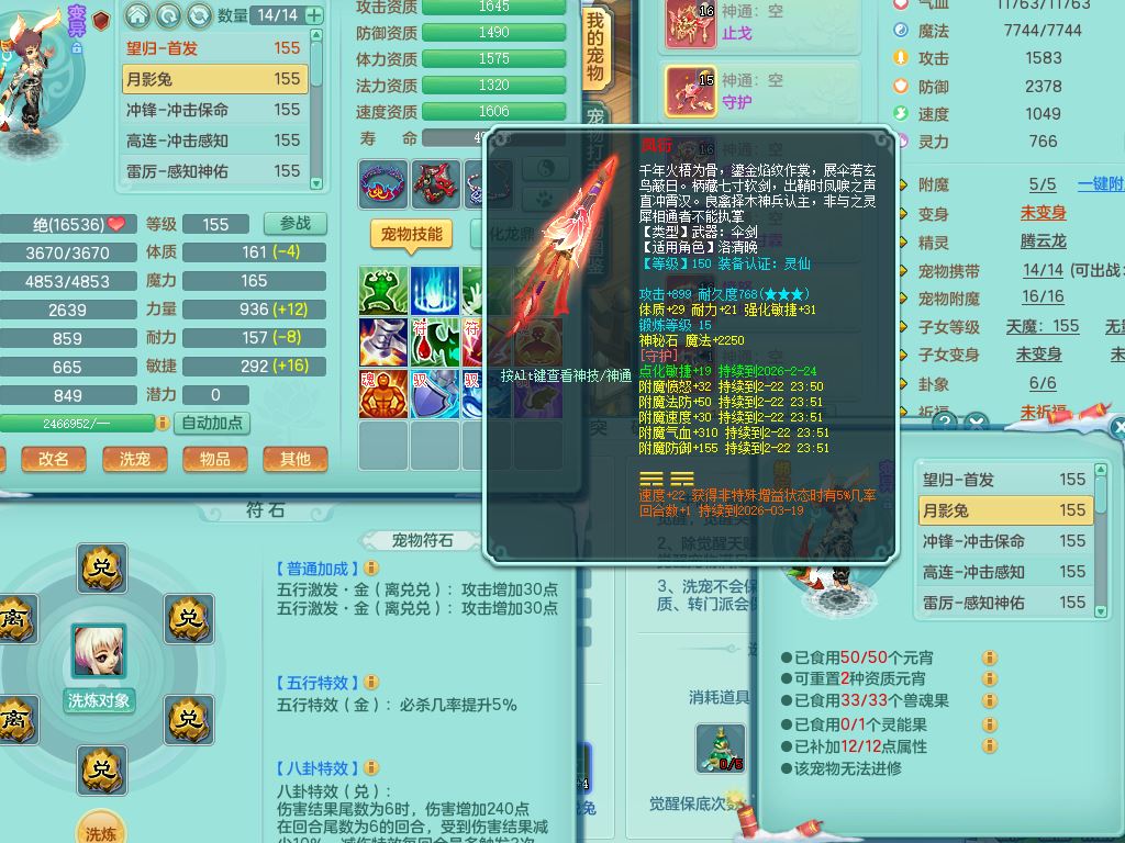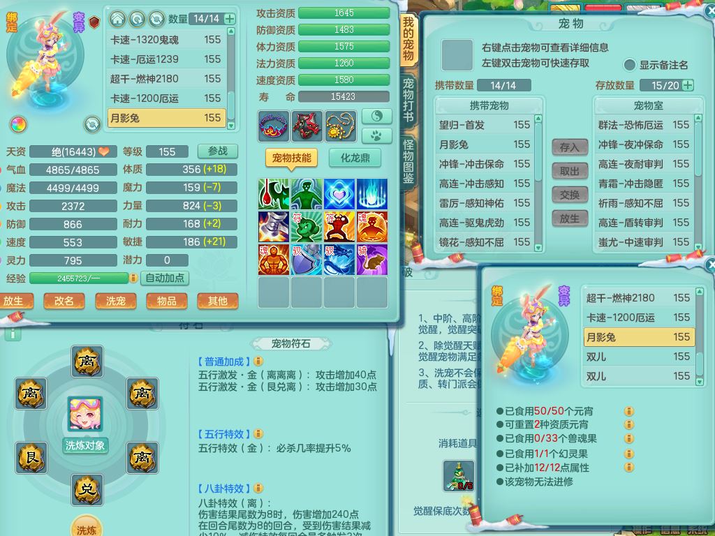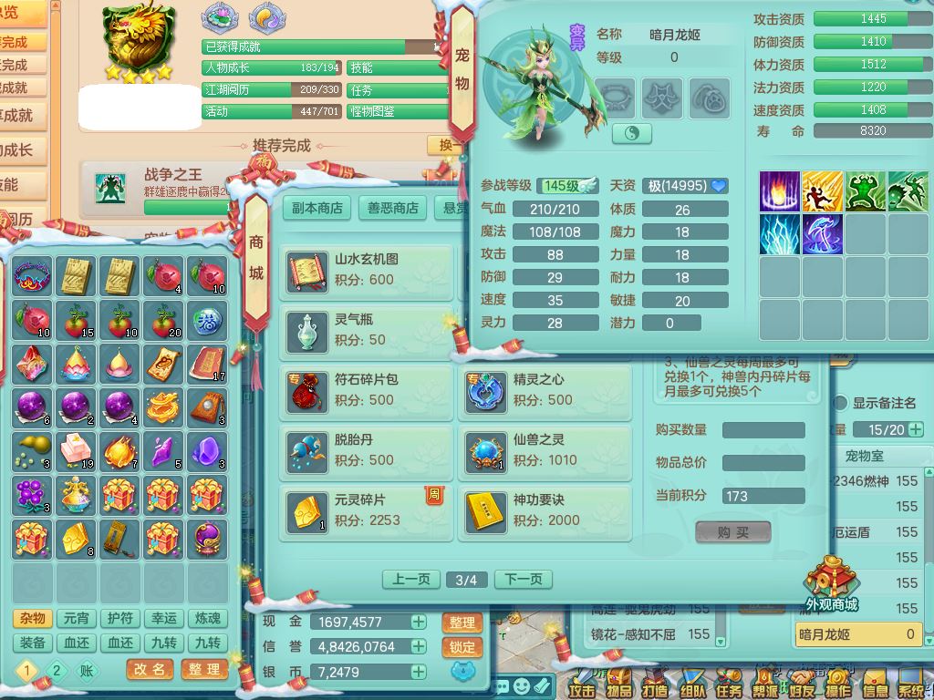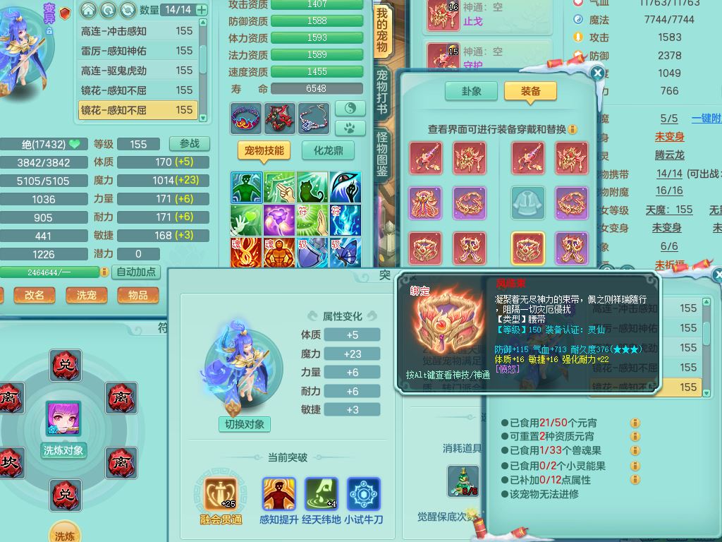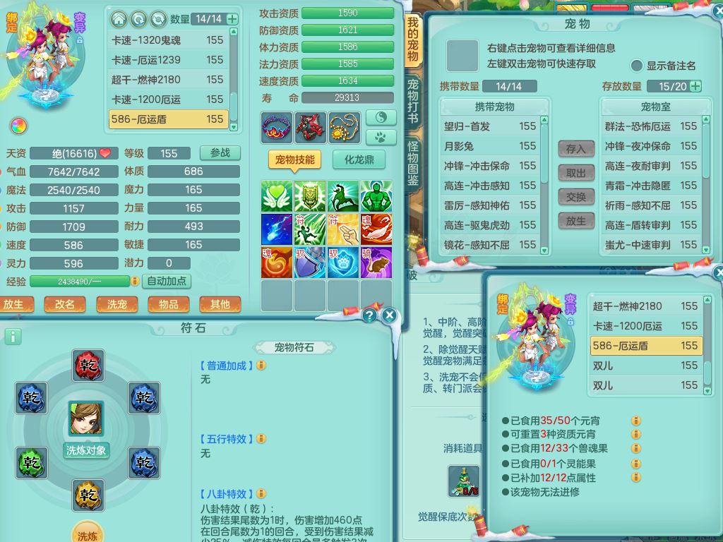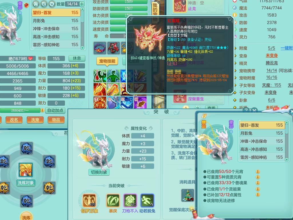 qq9536七窍玲珑159女灵月精灵舞,3龙(换,无内)1内1破境1神兽内丹4皮2特殊(青霜/祈雨/冲锋)综合15只满果子5觉醒3个纯6字,愤怒6特,愤怒罗汉腰带,鼎5.5+70+280,68天月卡,庭院151房屋155,永久外观精灵皮肤,1799金币,宠排在榜,2只双人坐骑