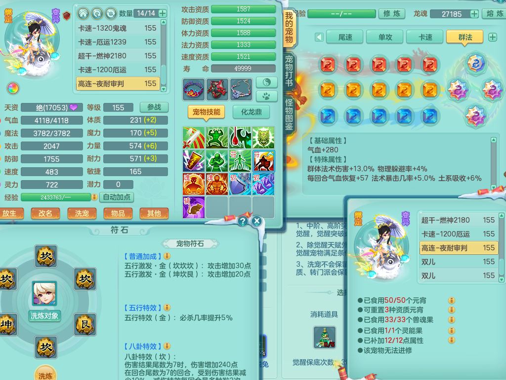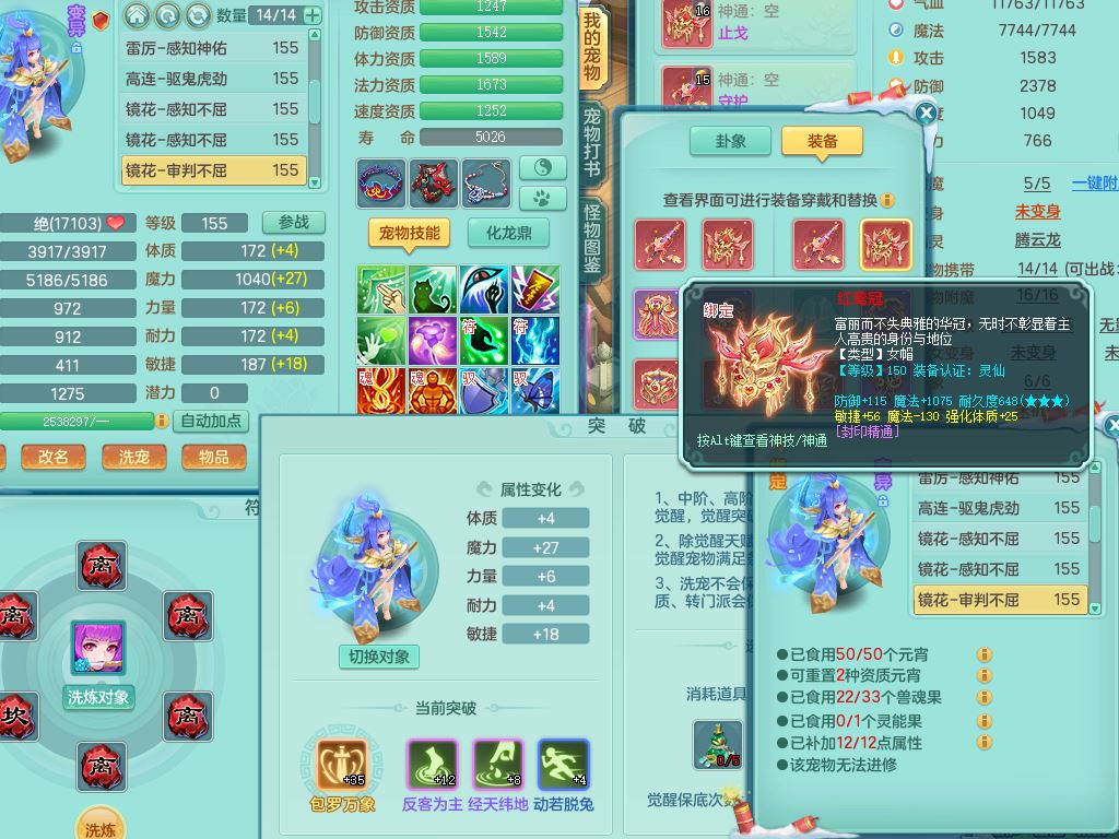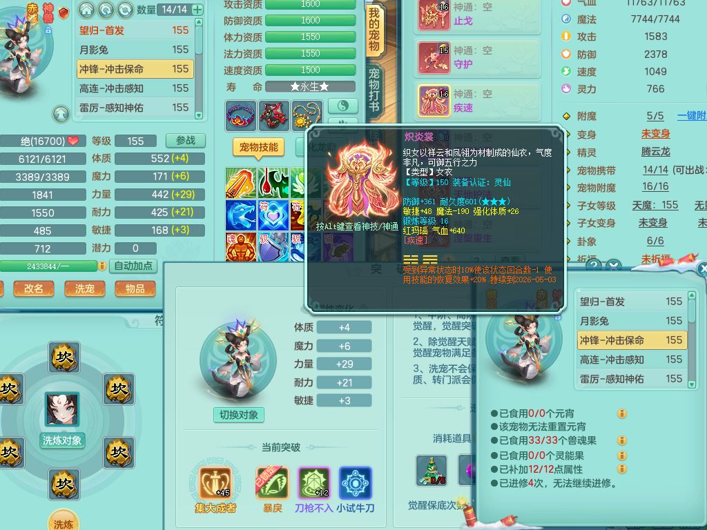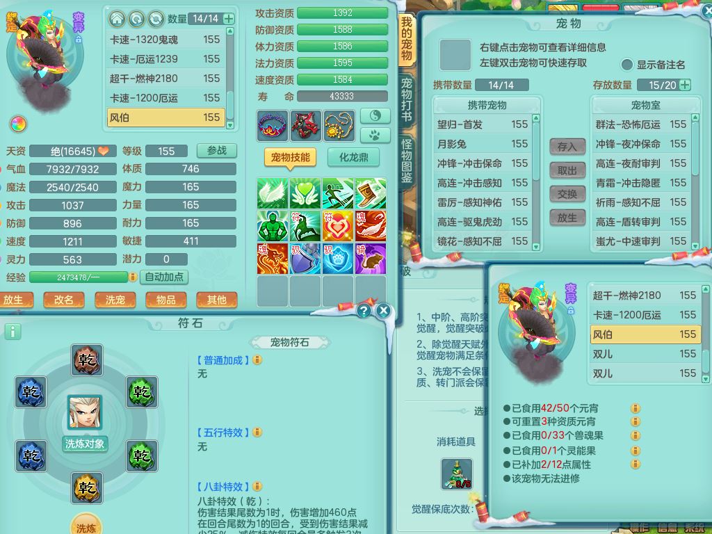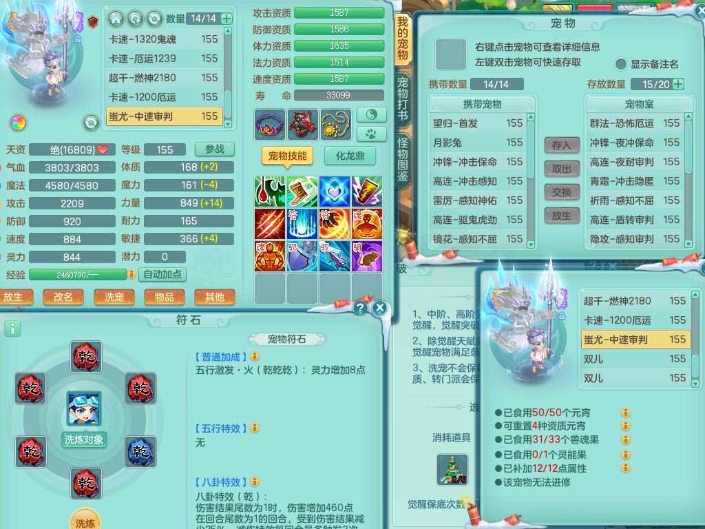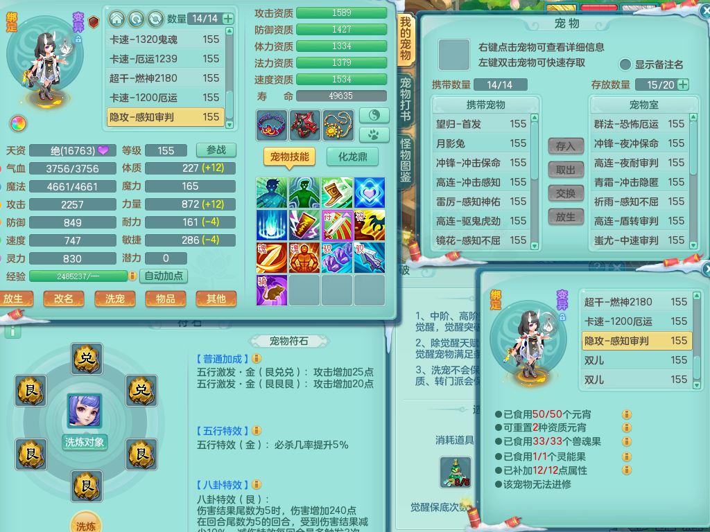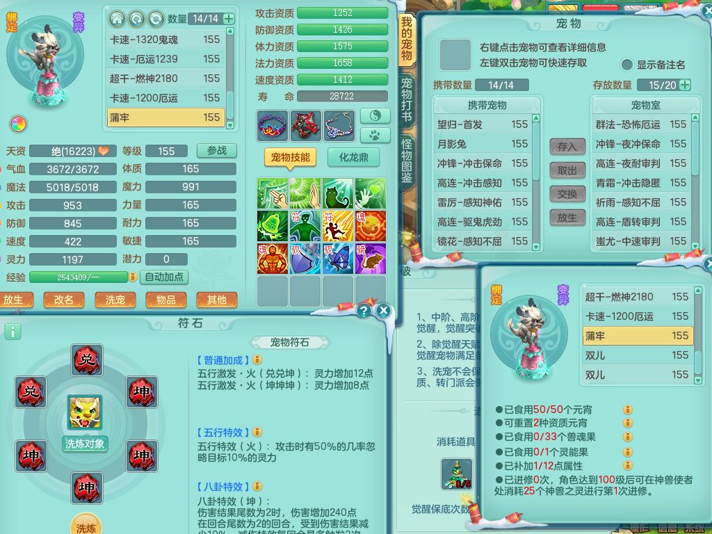qq9536七窍玲珑159女灵月精灵舞,3龙(换,无内)1内1破境1神兽内丹4皮2特殊(青霜/祈雨/冲锋)综合15只满果子5觉醒3个纯6字,愤怒6特,愤怒罗汉腰带,鼎5.5+70+280,68天月卡,庭院151房屋155,永久外观精灵皮肤,1799金币,宠排在榜,2只双人坐骑