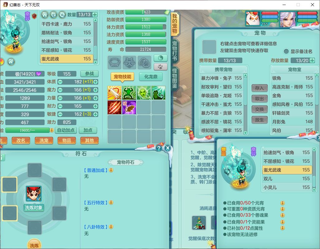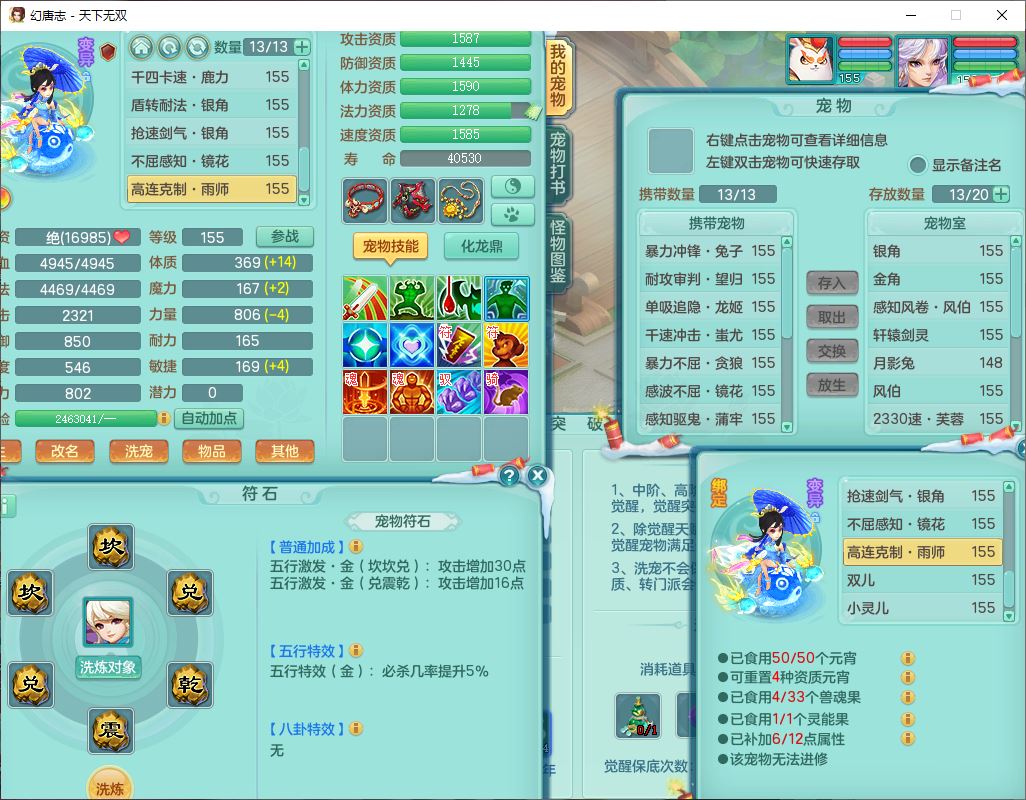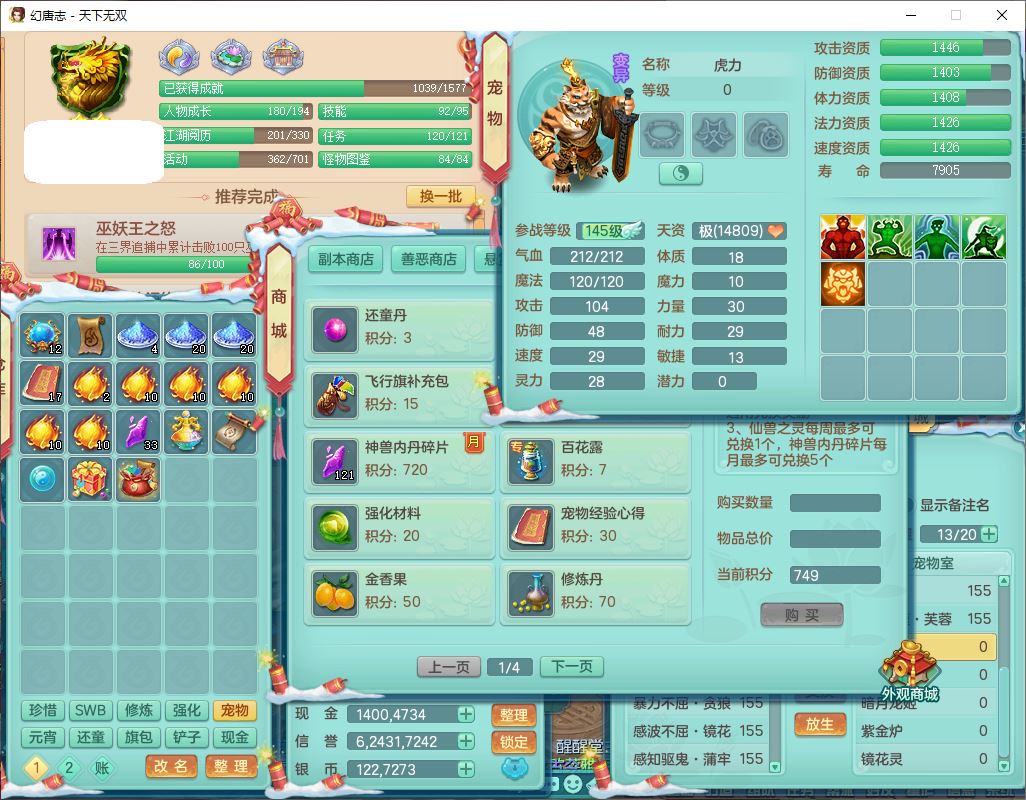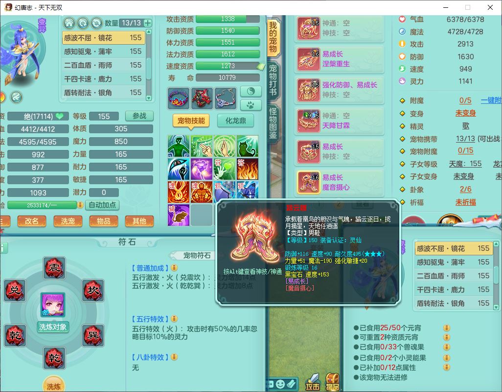 tx9572天下无双159男万兽精灵歌,1神兽(无内)1望归1龙姬2镜花,2觉醒1六字1五字,8红装备,Y慈航武器,强化防御Y衣服,Y魔音鞋子,鼎4.5,庭院156,永久头饰、背饰、精灵皮肤,122w神武币,12个仙兽灵,33个内丹碎片,3坐骑(1双人飞行)