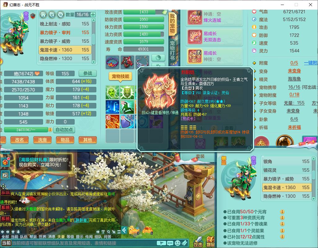 zw9582战无不胜159男魔王【潜龙号】精灵舞,4位靓号,3龙(换,1破境)2内(1小马)4镜花(2胚子)3特殊(影袭、战争,怒破兽决)1七技能风卷妖鬼,9觉醒8宠皮17六字20只满果子,10红全单加装备,法爆Y武器,强壮Y疾速衣服,275Y项链,Y四海腰带,五雷鞋子,一套物理装,Y破血武器,鼎6.0+70+280,2套符石,40天月卡,永久外观、精灵皮肤,7个内丹碎片,3双人坐骑,带150奶粉