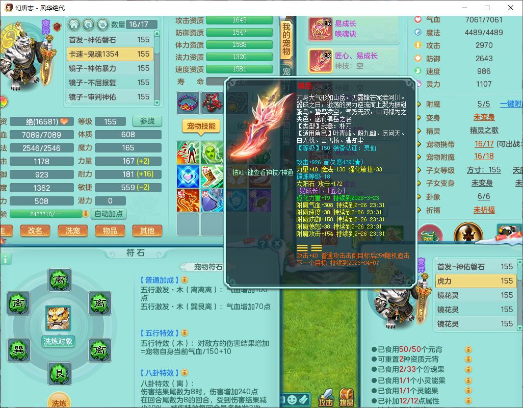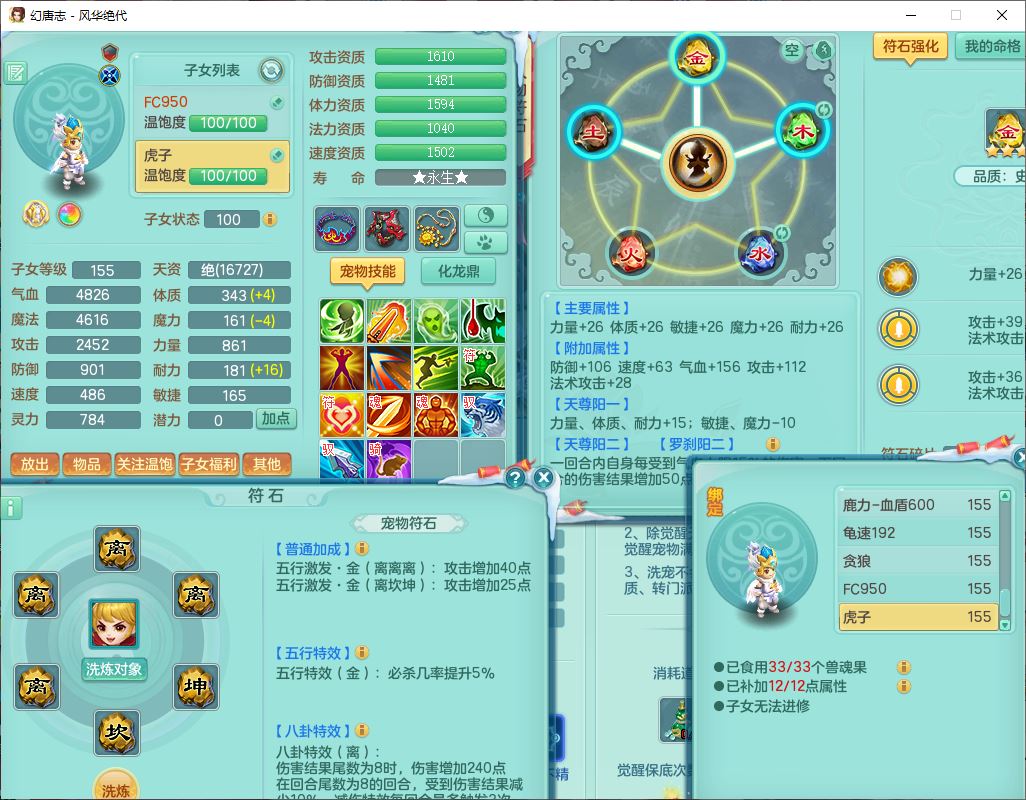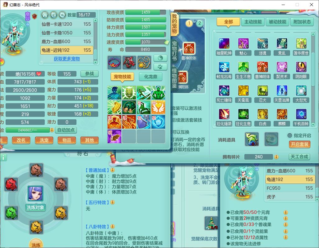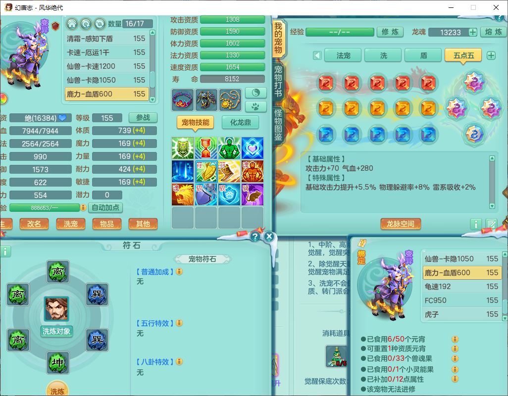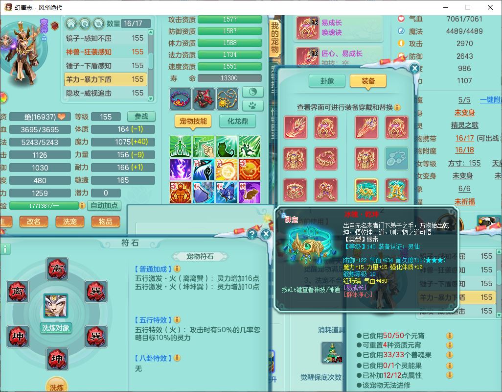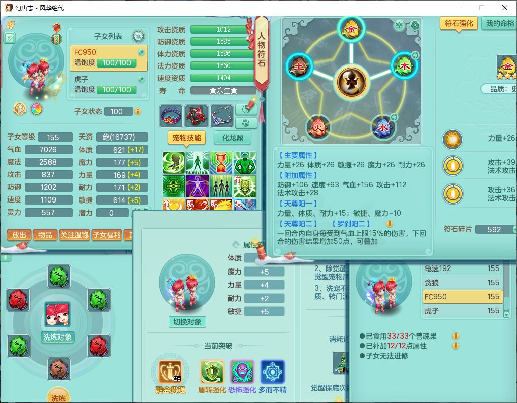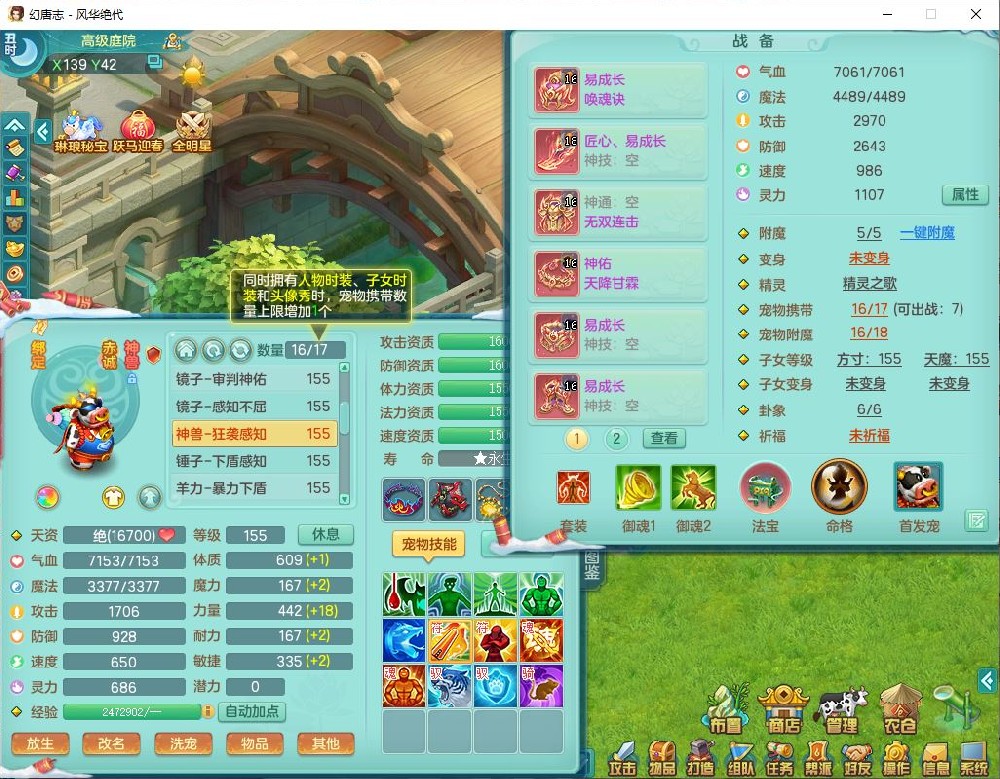 fh9581风华绝代159男天策【潜龙号】精灵歌,2龙(换、无内)1望归1内(带蛇影)5镜花(1胚子)7特殊(青霜、飞花、双星*2、善恶、守护,飞花兽决),10觉醒9宠皮11六字2五字9四字24只满果子,17格子,9红装备,Y唤魂帽子,926单加匠心Y武器,神佑四海项链,崩山衣服,鼎5.5+70+280,20天月卡,永久外观、精灵皮肤,13个内丹碎片,3坐骑(1双人飞行)