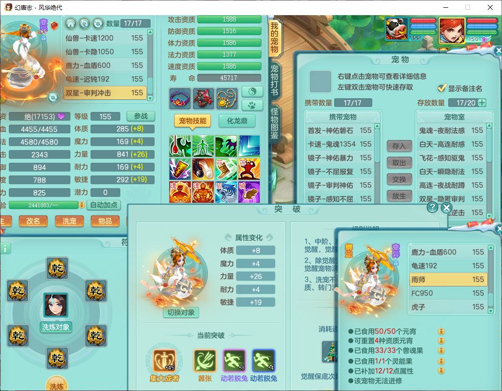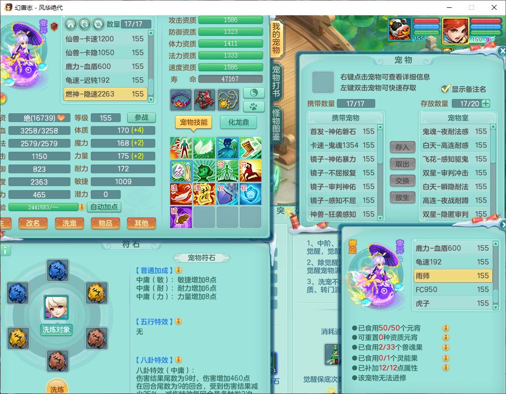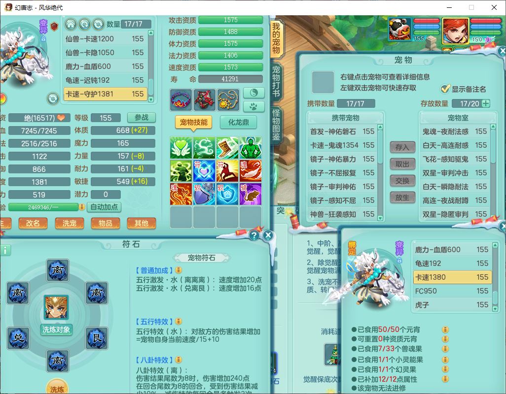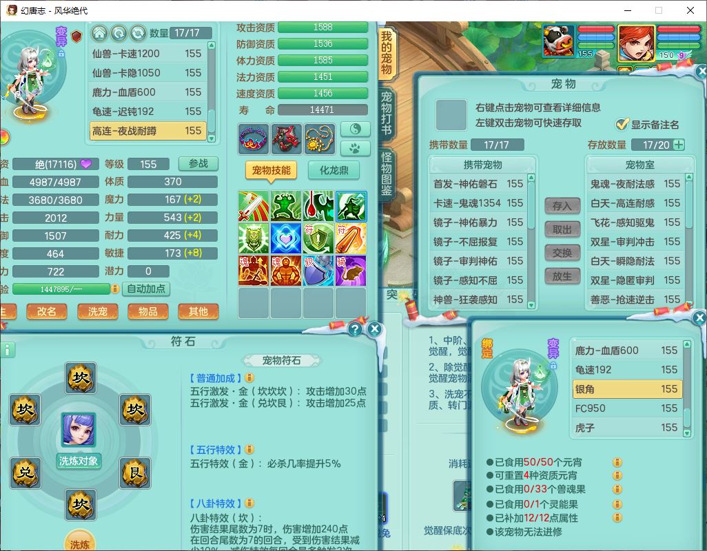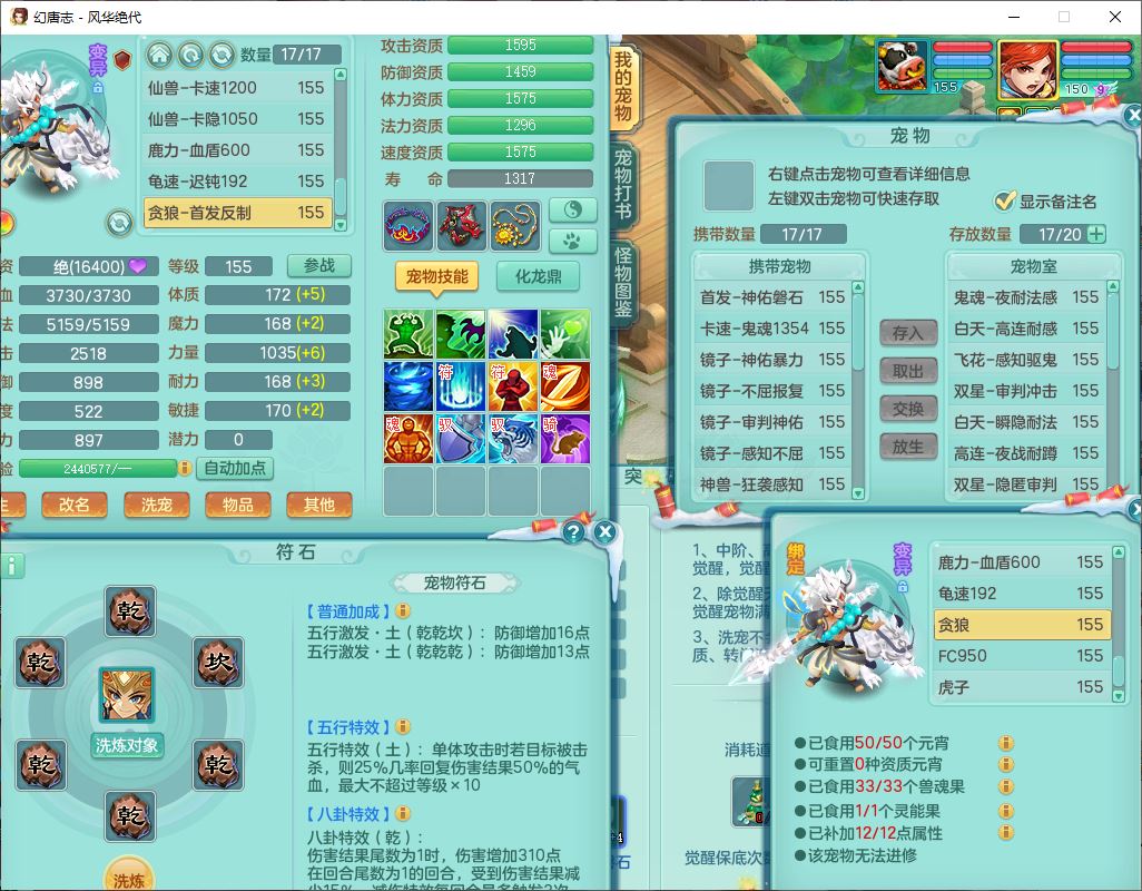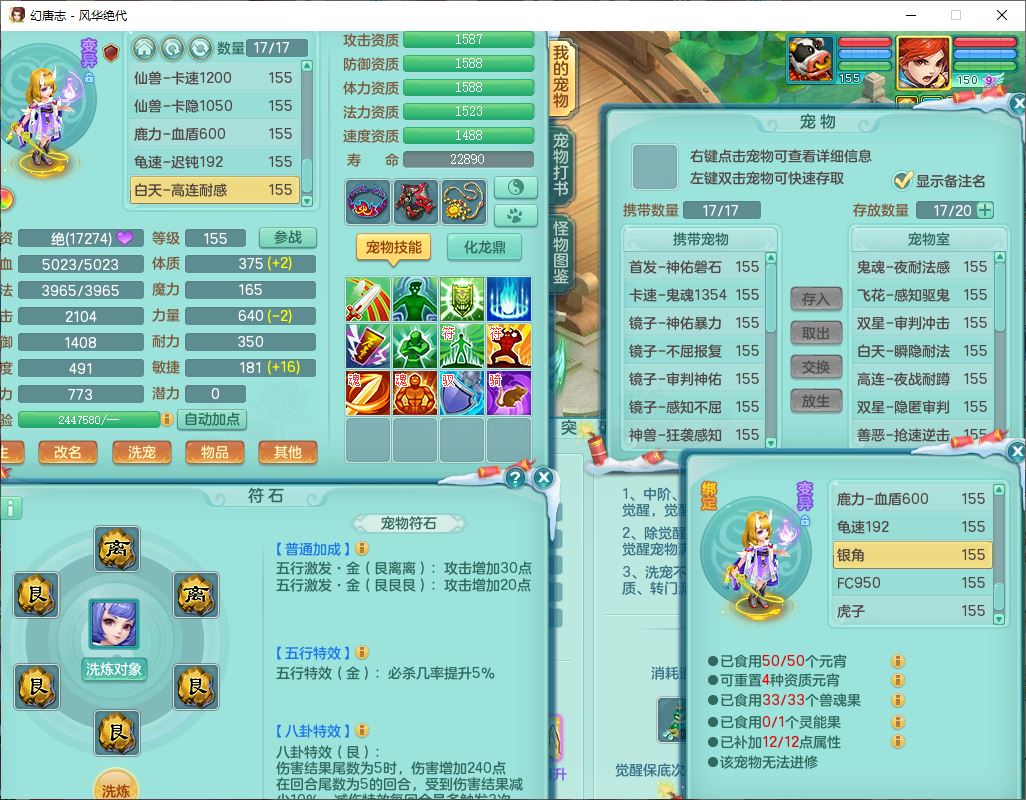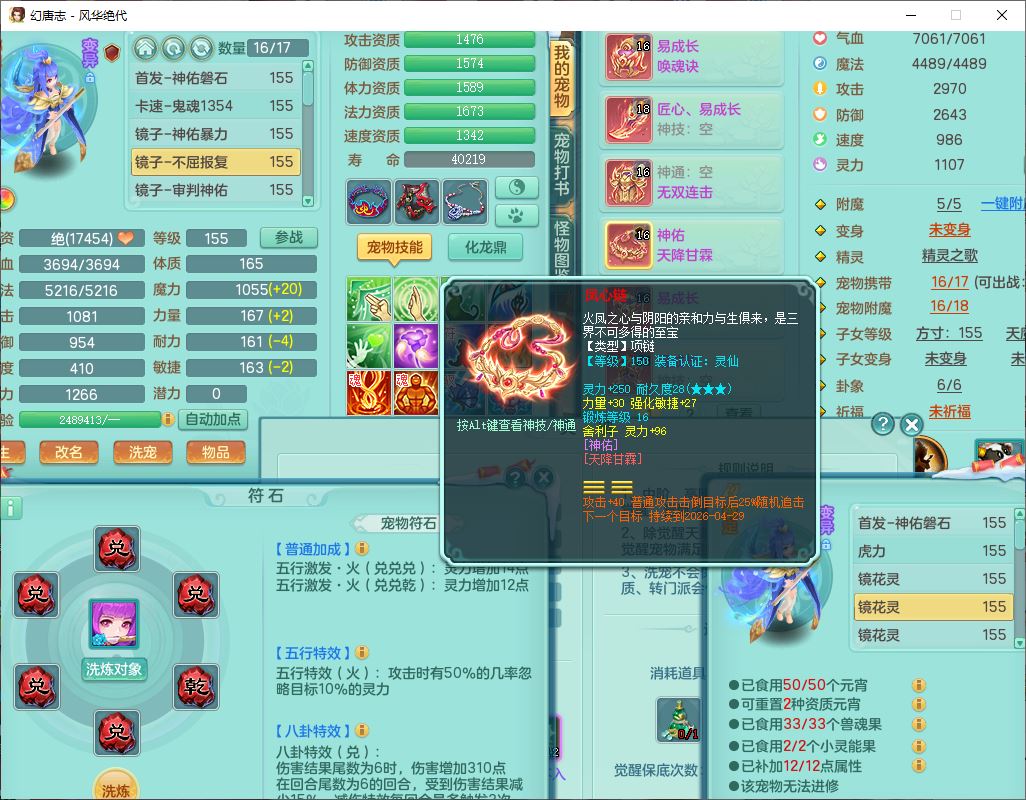 fh9581风华绝代159男天策【潜龙号】精灵歌,2龙(换、无内)1望归1内(带蛇影)5镜花(1胚子)7特殊(青霜、飞花、双星*2、善恶、守护,飞花兽决),10觉醒9宠皮11六字2五字9四字24只满果子,17格子,9红装备,Y唤魂帽子,926单加匠心Y武器,神佑四海项链,崩山衣服,鼎5.5+70+280,20天月卡,永久外观、精灵皮肤,13个内丹碎片,3坐骑(1双人飞行)