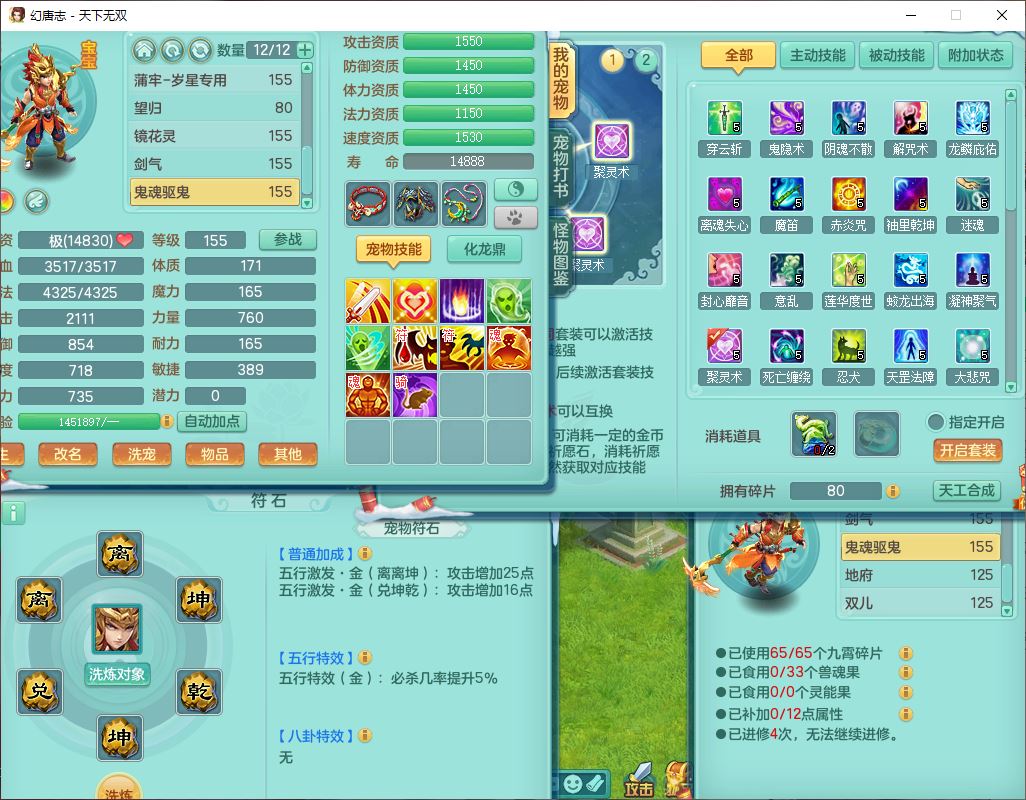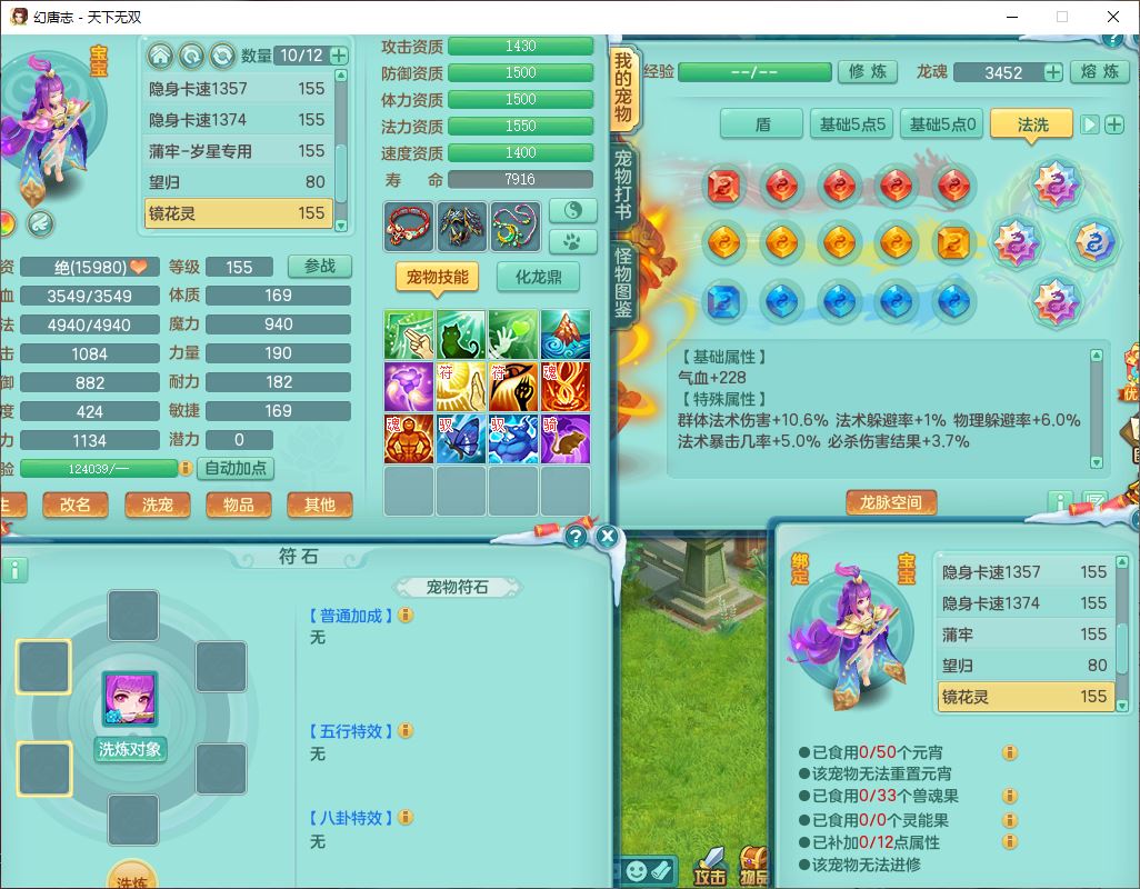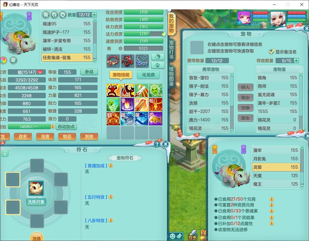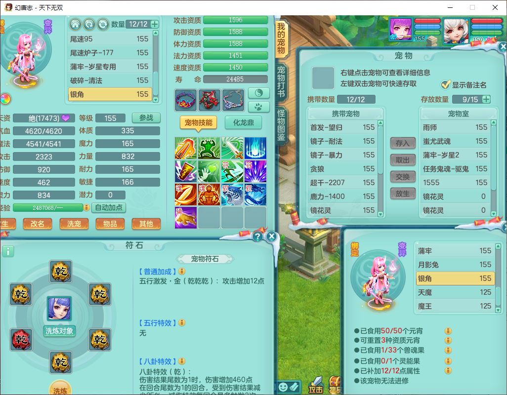 tx9592天下无双双开号159女盘丝精灵舞,1望归2镜花1鹿力1金炉,宝宝种类齐全,3五字6四字,愤怒五特装备齐全,鼎4.5;带159女鬼谷精灵歌,2镜花1蒲牢,8红装备,五雷武器,Y水清项链,愤怒群体疾速,鼎5.5,庭院152环境