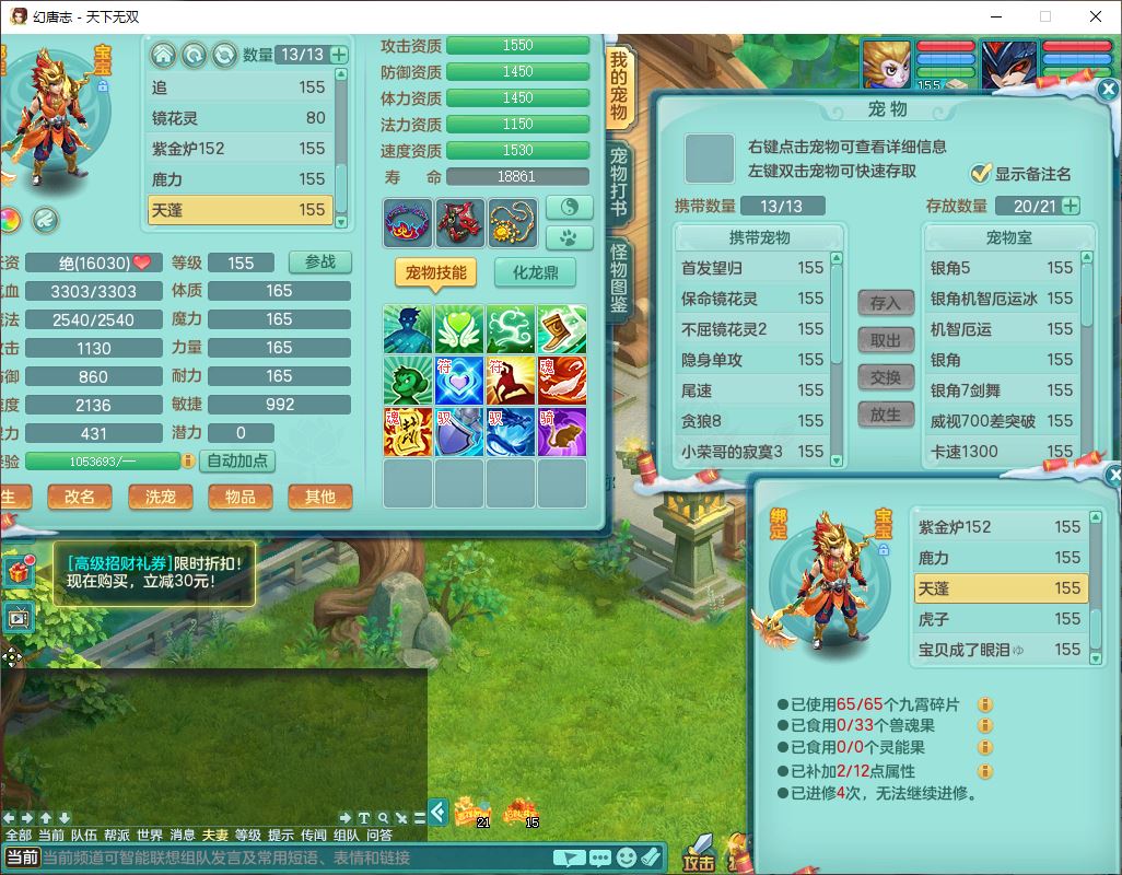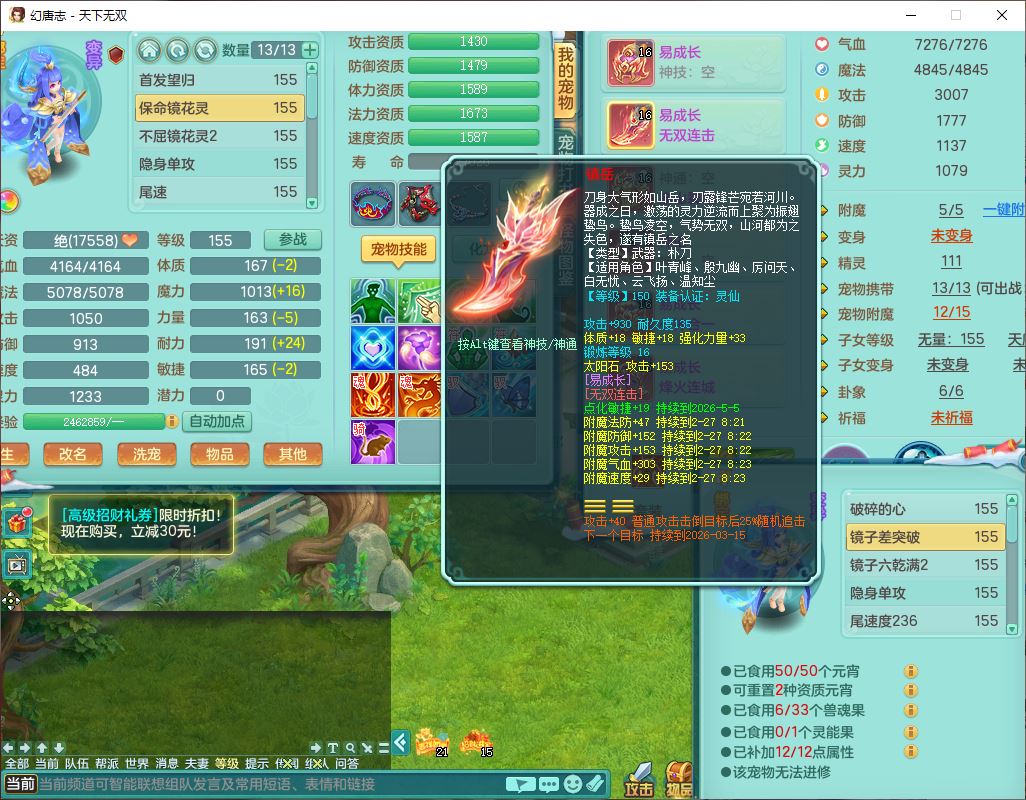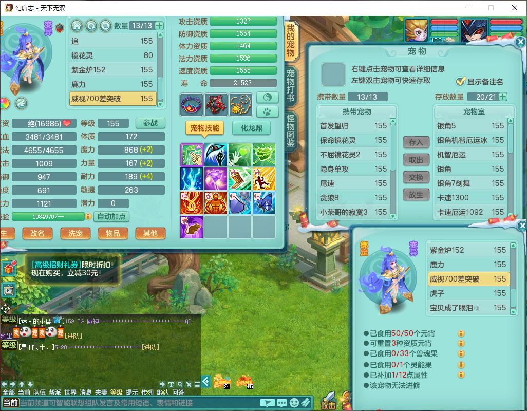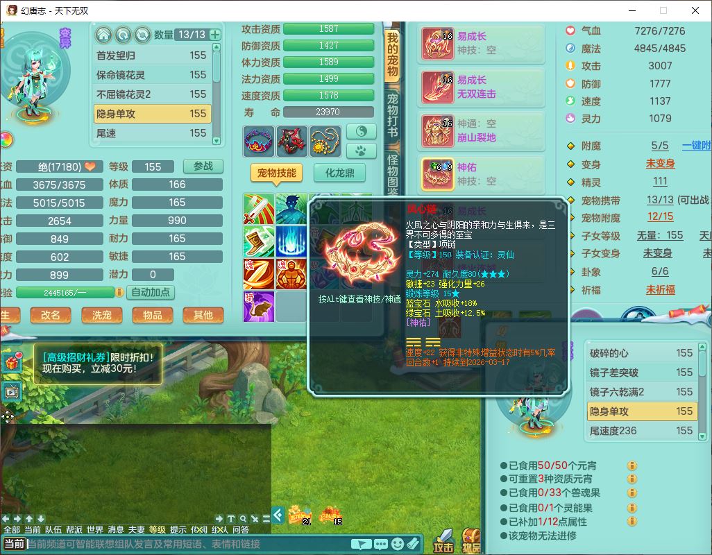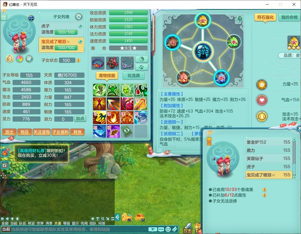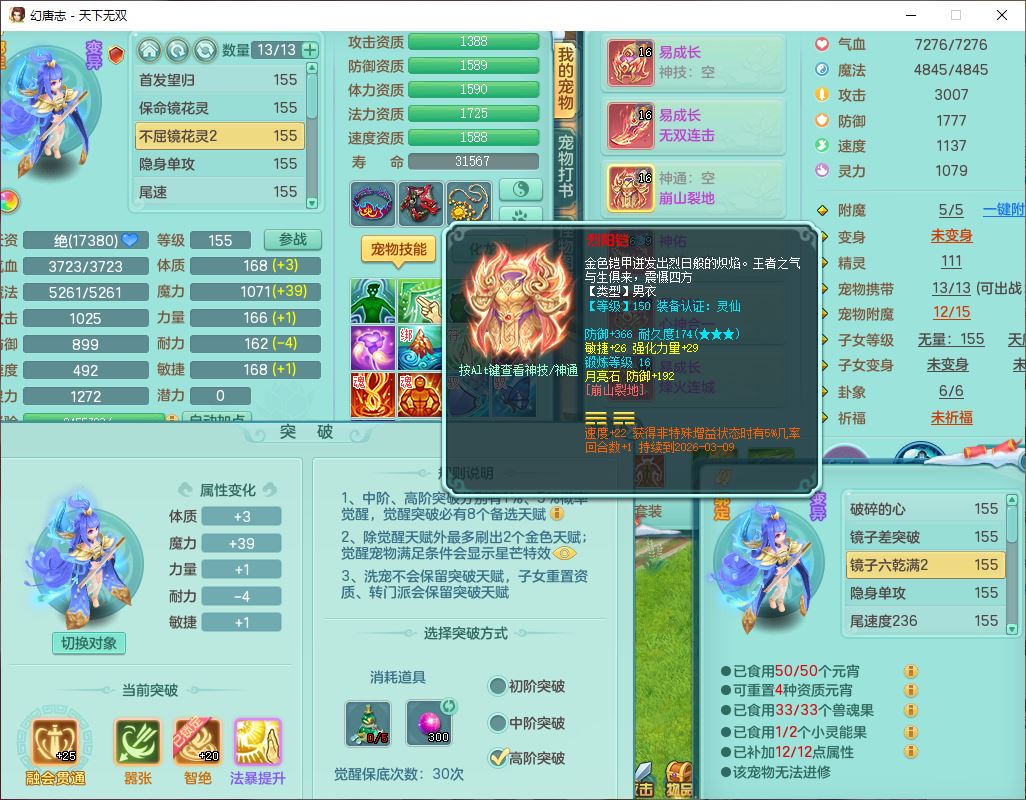 tx9588天下无双159男万兽准精灵舞,1内1望归1龙姬4镜花(1胚子)3特殊(青霜,飞花、舍身兽决)1金炉,4觉醒7六字8只满果子,9红装备,930Y破血武器,崩山衣服,Y心神腰带,Y烽火鞋子,鼎4.5,59天月卡,315W神武币,35个仙兽灵,1通灵珠,38个内丹碎片