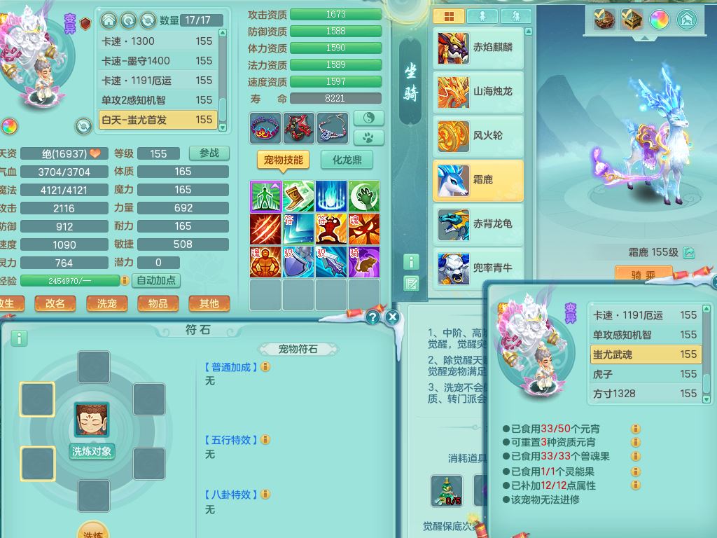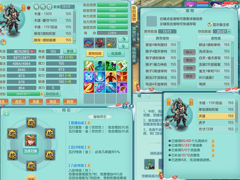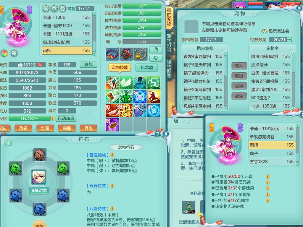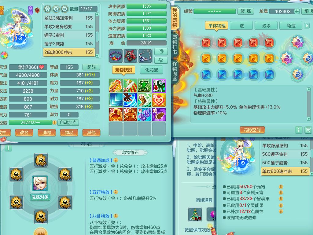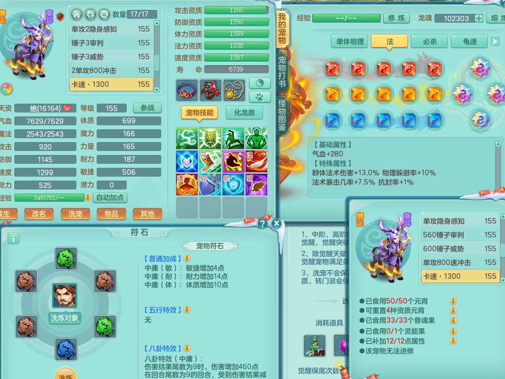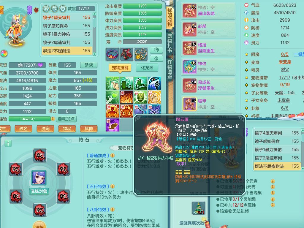 jn9595今年勇159男五庄精灵舞,2套星穹,1龙(换)2内1神兽内丹2皮,6特殊(堕天/烈焰斩/兽决夺命/舍身/祈雨/烈焰焚心)17格子22只满果子6觉醒17个纯6字(1洗练珠)全身单加,911必杀武器,崩山头,格挡慈航衣服,Y慈航腰带,破甲鞋,鼎5.5+70+280,2套符石,27天月卡,永久外观精灵皮肤,34内丹碎片,宠排在榜,双人坐骑
