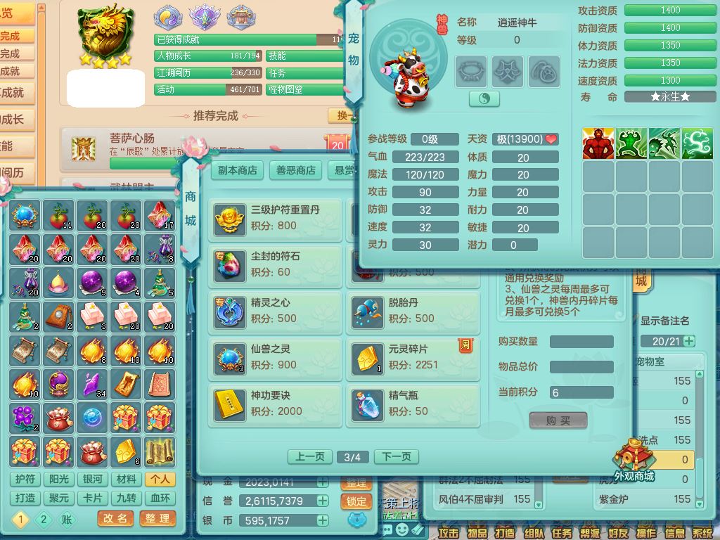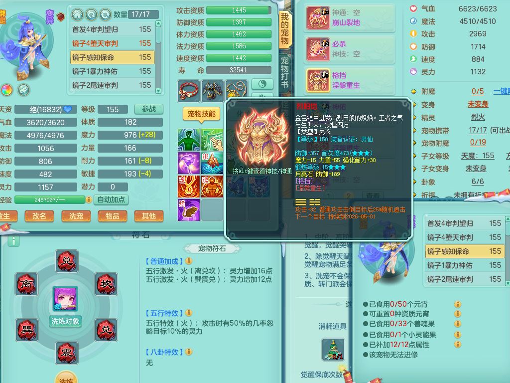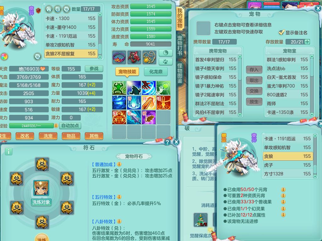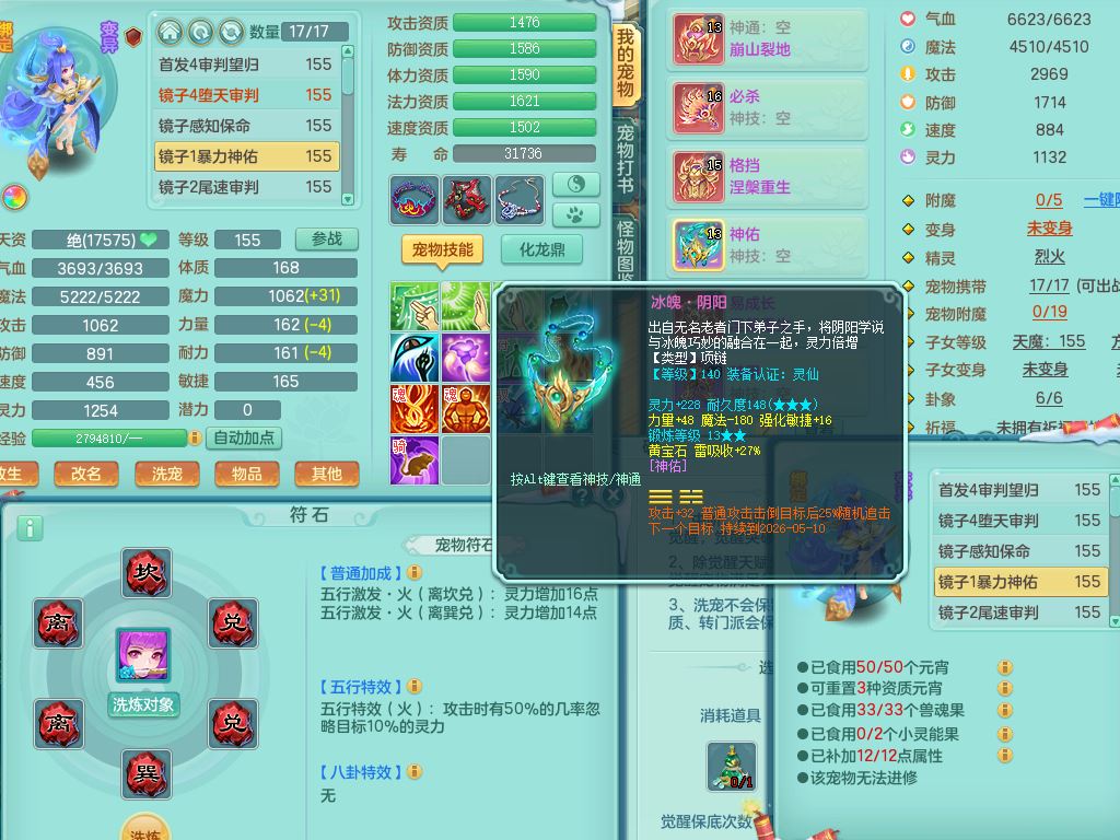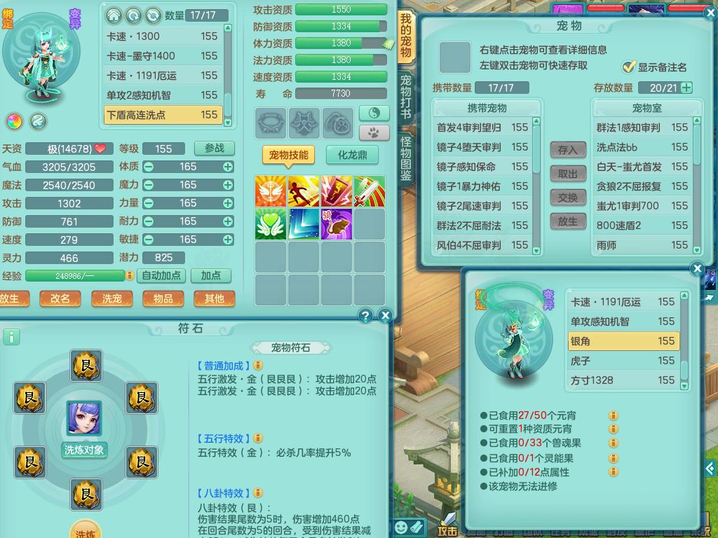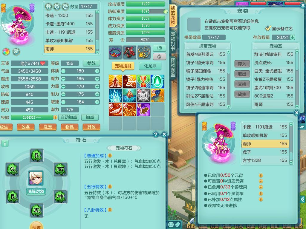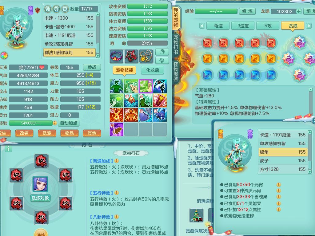 jn9595今年勇159男五庄精灵舞,2套星穹,1龙(换)2内1神兽内丹2皮,6特殊(堕天/烈焰斩/兽决夺命/舍身/祈雨/烈焰焚心)17格子22只满果子6觉醒17个纯6字(1洗练珠)全身单加,911必杀武器,崩山头,格挡慈航衣服,Y慈航腰带,破甲鞋,鼎5.5+70+280,2套符石,27天月卡,永久外观精灵皮肤,34内丹碎片,宠排在榜,双人坐骑