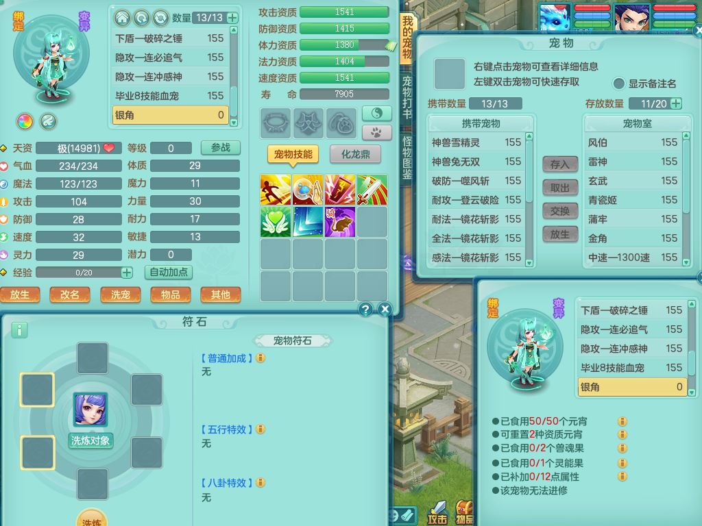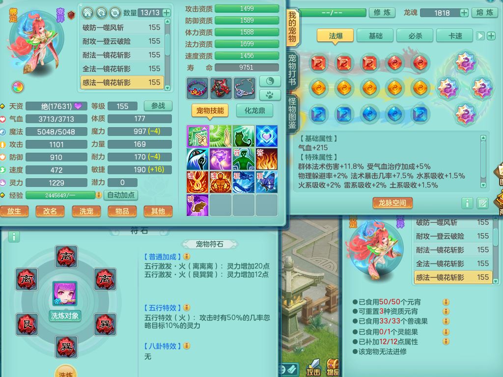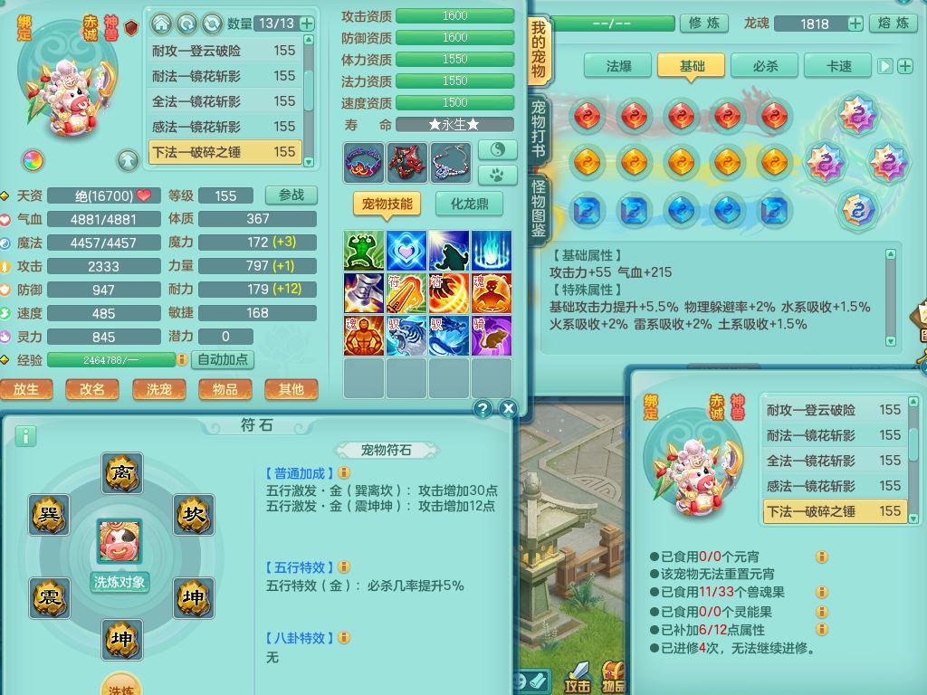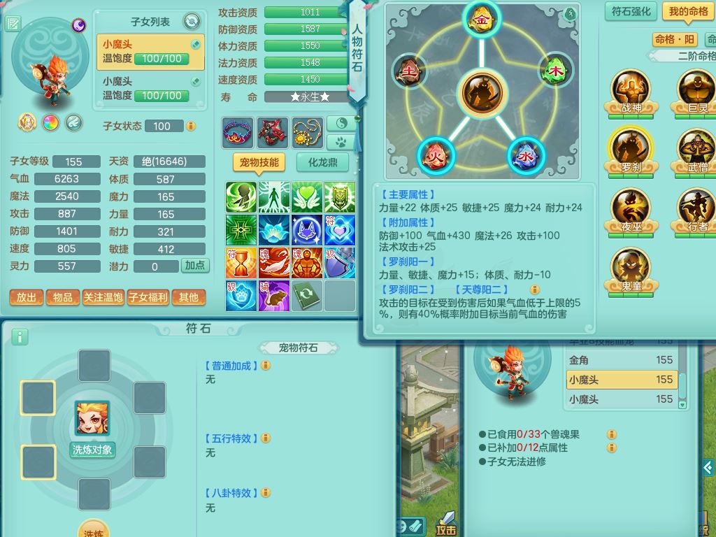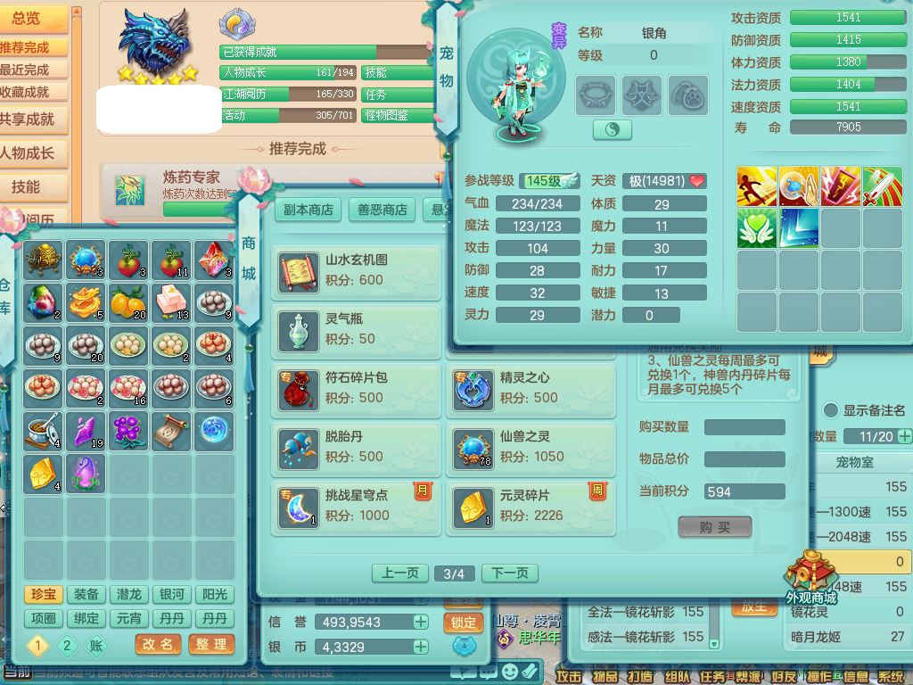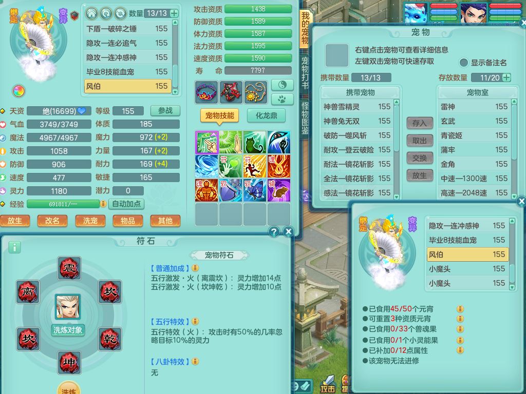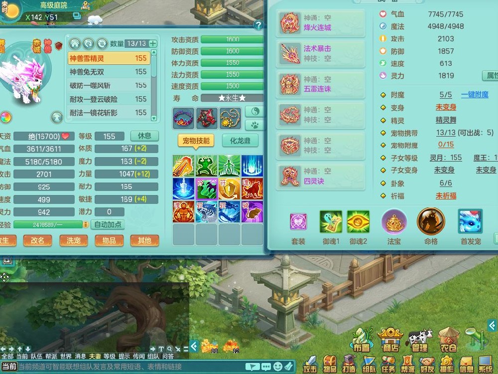 ss9598三生万物158男天宫精灵舞,2内丹神,3镜花灵,法爆武器,五雷衣服,单加四灵鞋,鼎5.5,永久外观精灵皮肤,19内丹碎片,双人坐骑