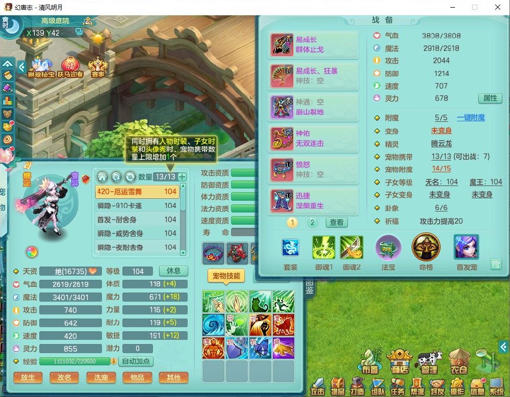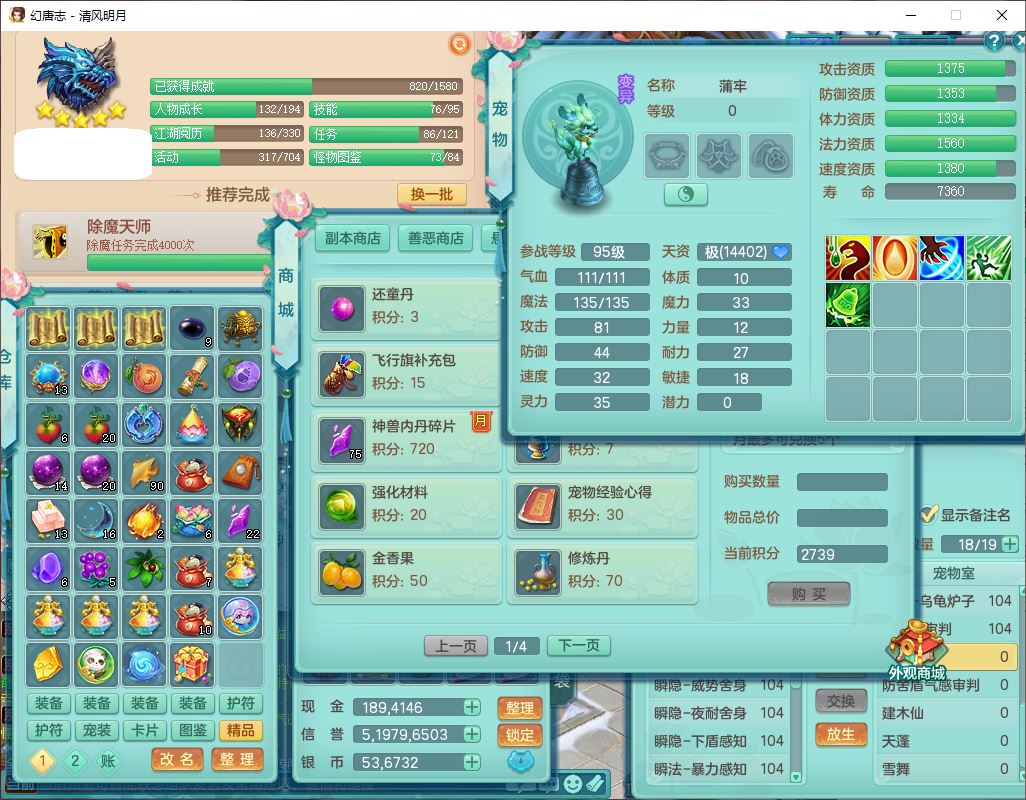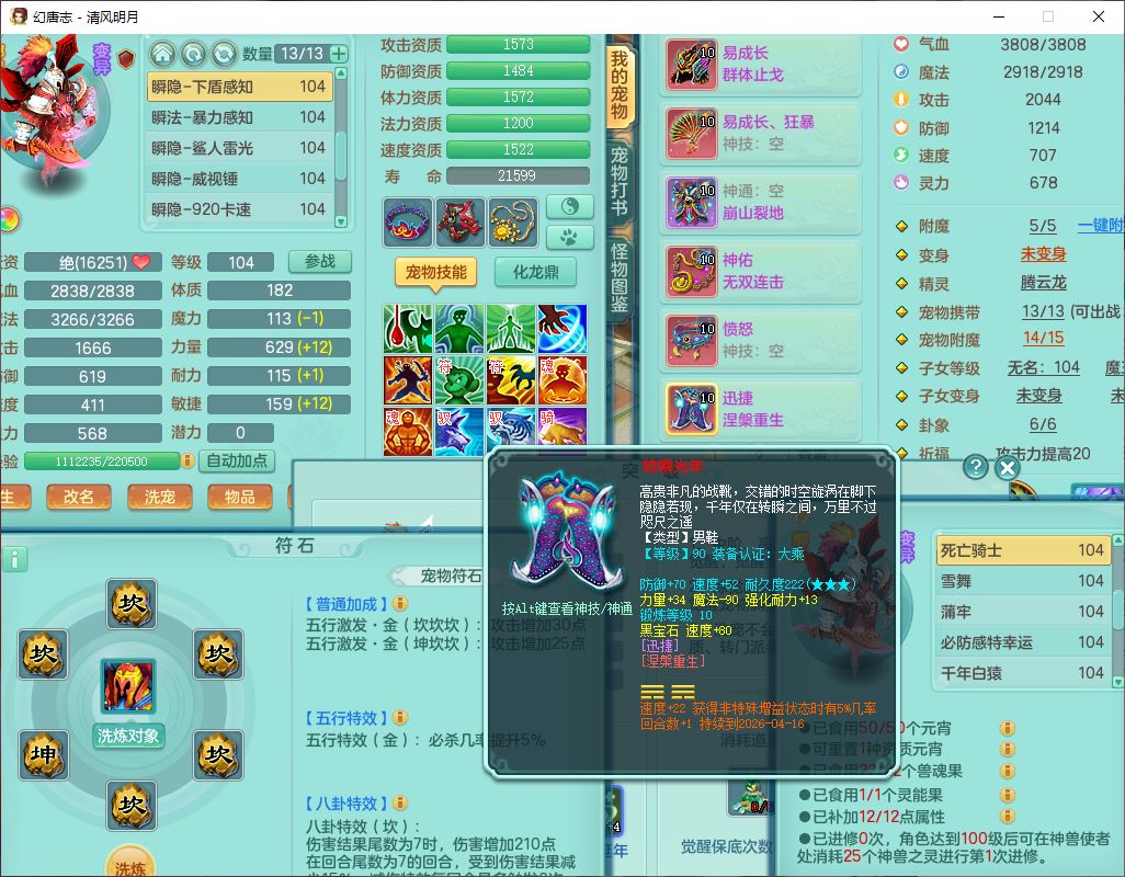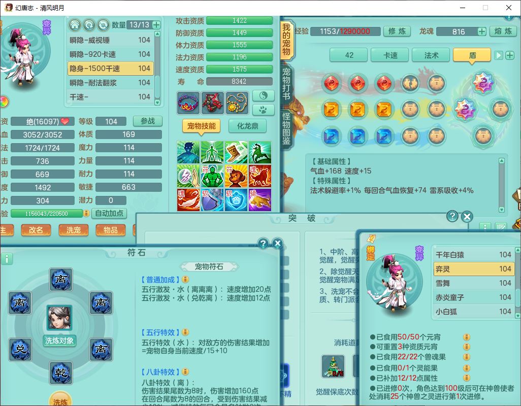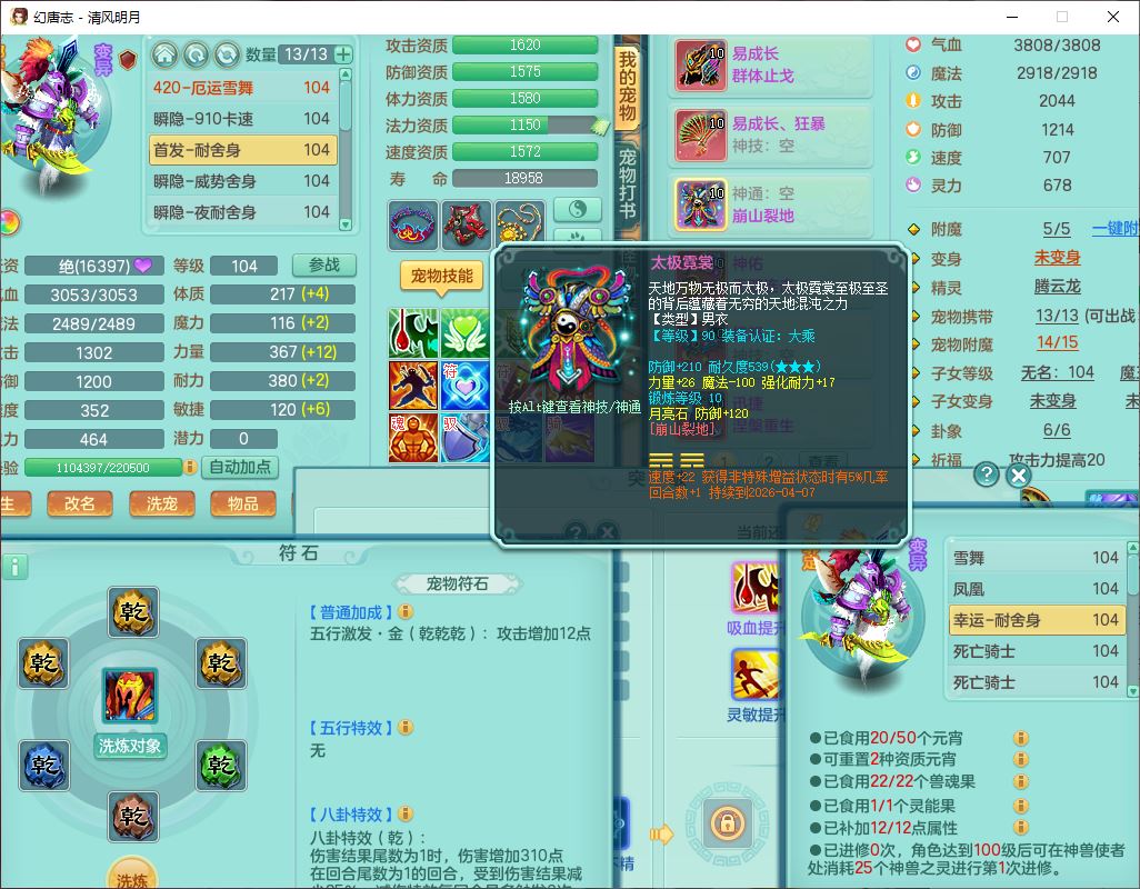 qf9600清风明月99男天宫【准潜龙号,差1条附加】全力精灵,1内(青蛇)2翻江4舍身1童子1金炉,7觉醒8六字3五字3四字15只满果子,10红全单加装备,Y群体止戈帽子,Y狂暴武器,崩山衣服,神佑破血项链,迅捷慈航鞋子,愤怒玉清腰带,鼎2.5+42+168,永久外观、精灵皮肤,1814金币,1坐骑,带150奶粉