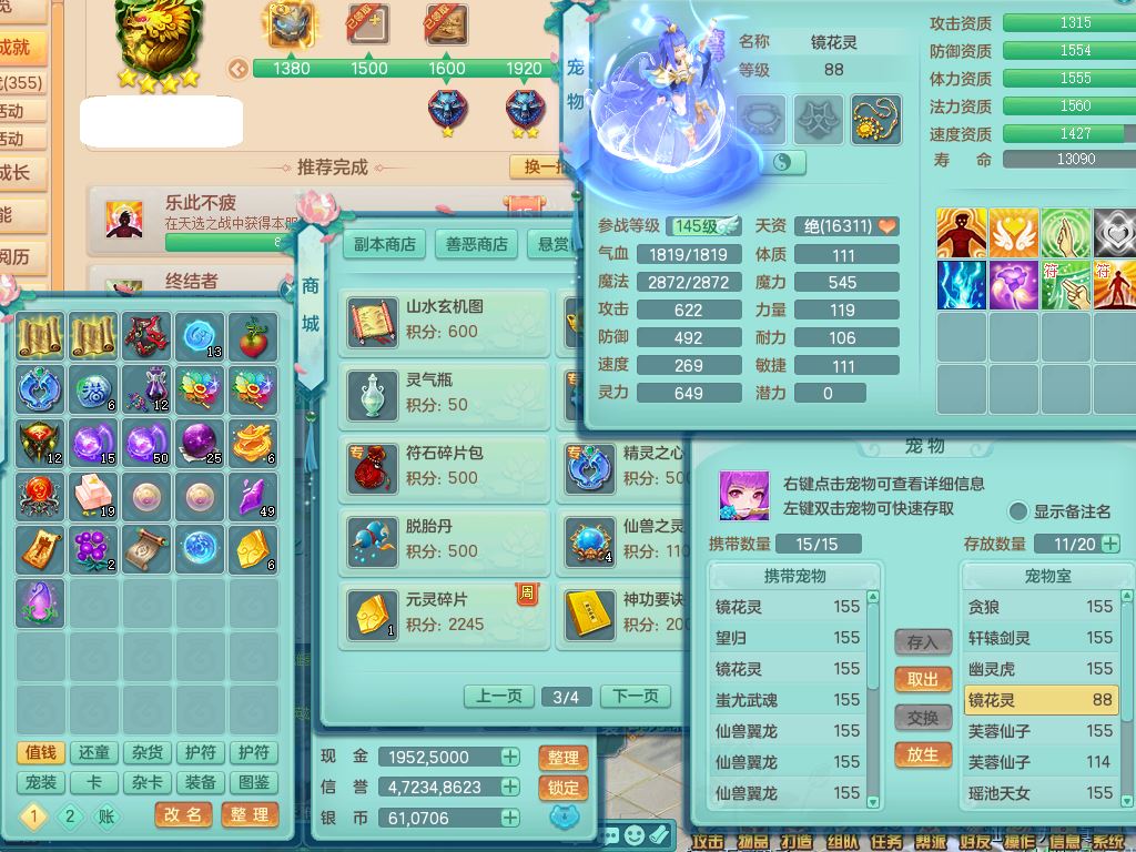 zs9605醉生梦死159男普陀【潜龙号】精灵舞,8字靓号,7龙(换,无内)1内,15只满果子7觉醒7个纯6字,8红愤怒5特,单加回春双红武器,Y慈航衣服,鼎5.5+70,30天月卡,永久外观精灵皮肤,49内丹碎片,宠排在榜,4只双人坐骑
