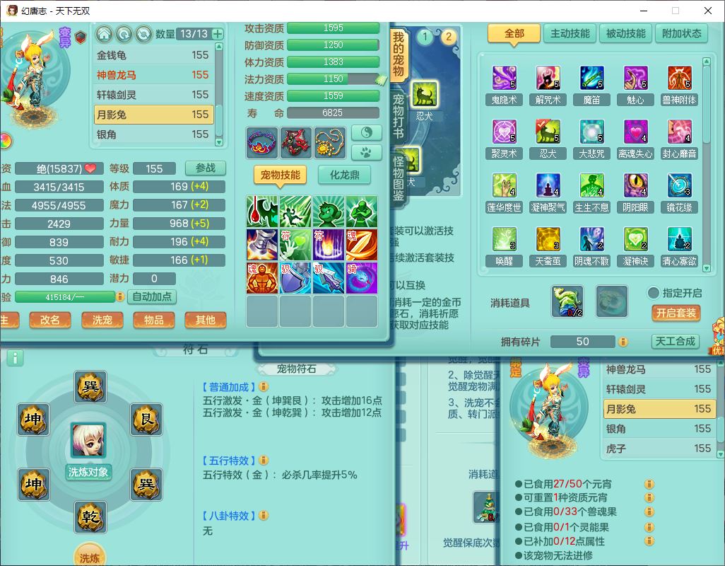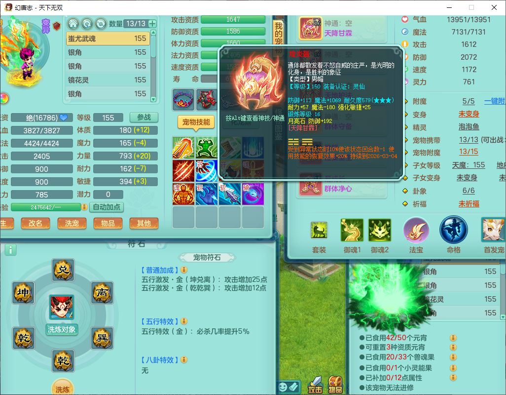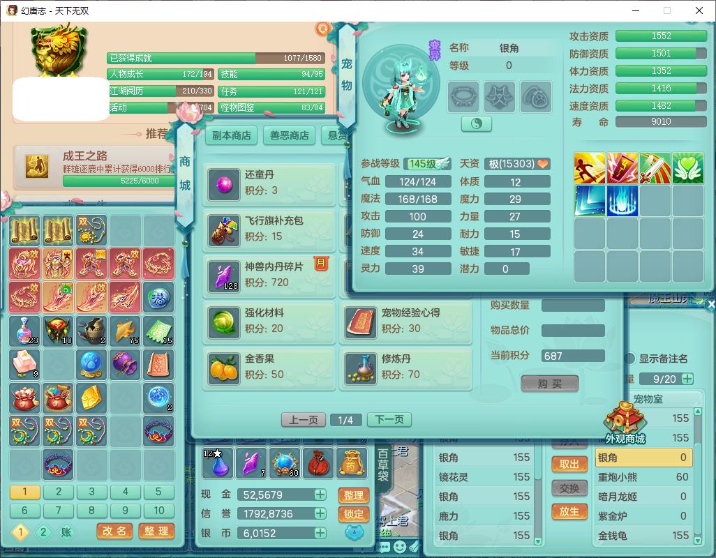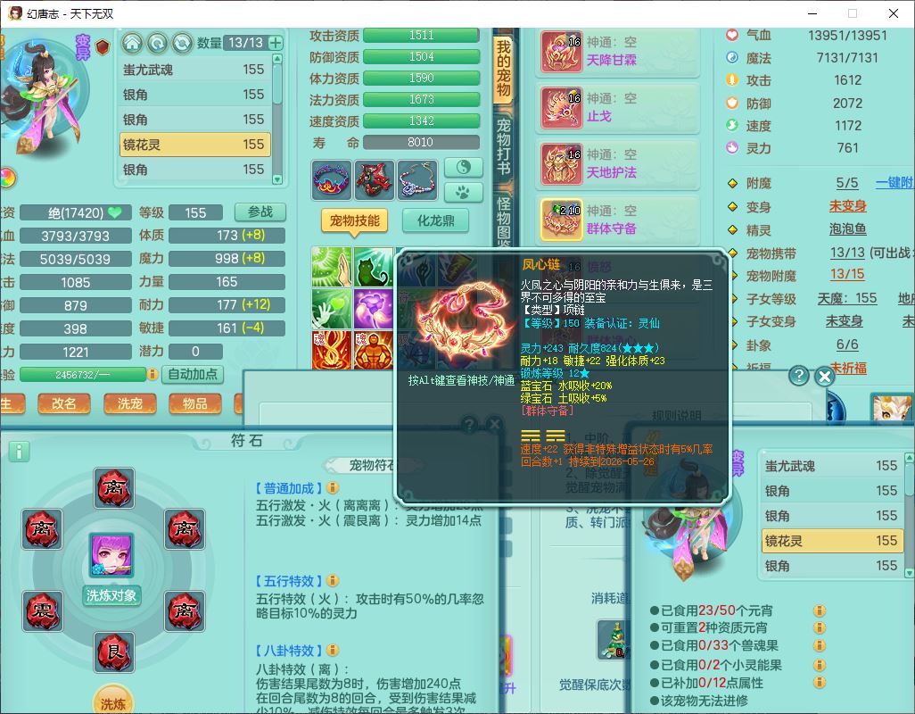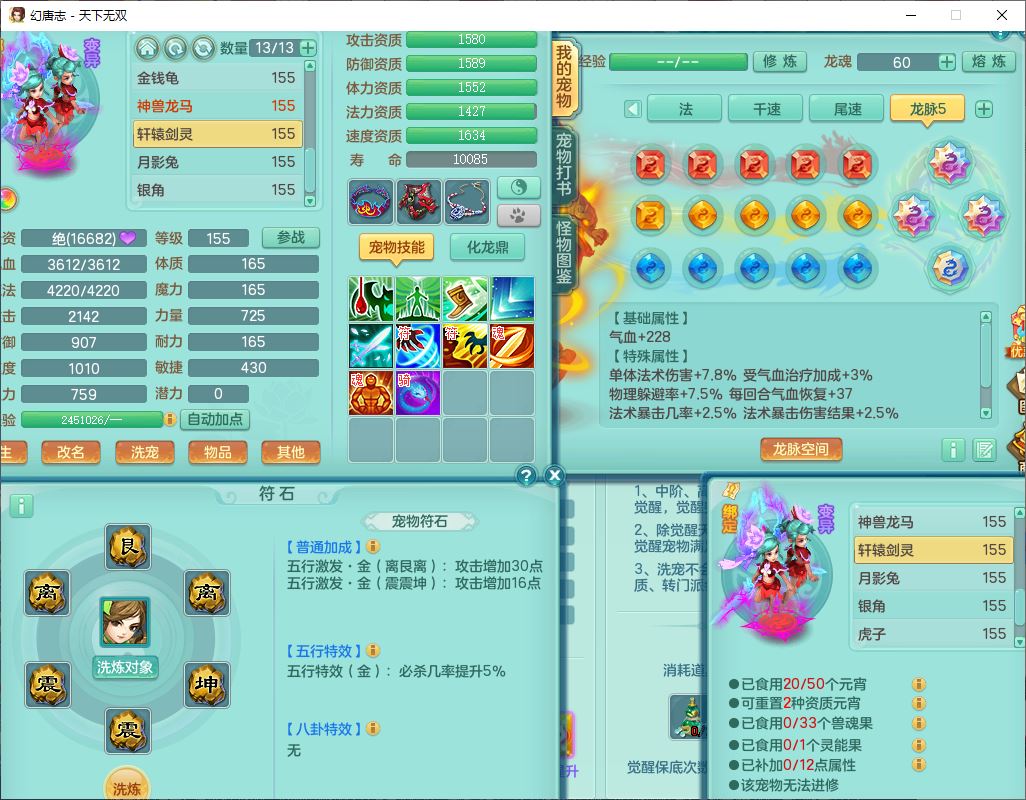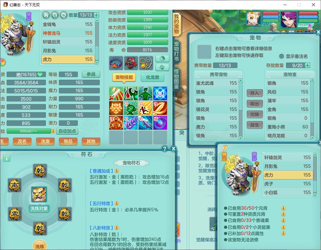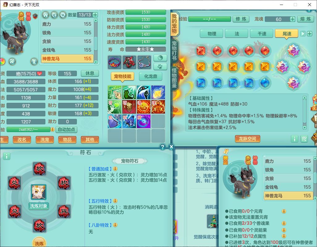 tx9608天下无双159男灵月精灵怒,1龙马(无内)1镜花3特殊(藕断、青霜,以战兽决)16只成品宝宝,2六字1五字5四字,8红装备,愤怒慈航,Y晶清鞋子,有法系装,鼎5.5,25天月卡,7个内丹碎片,60个仙兽灵,2坐骑