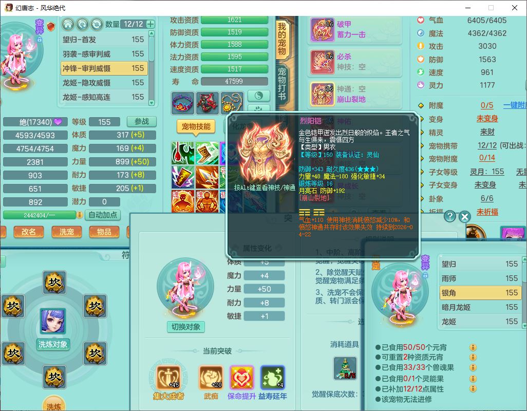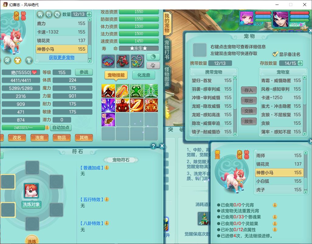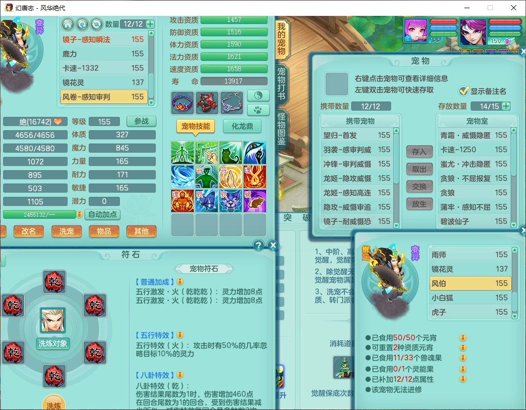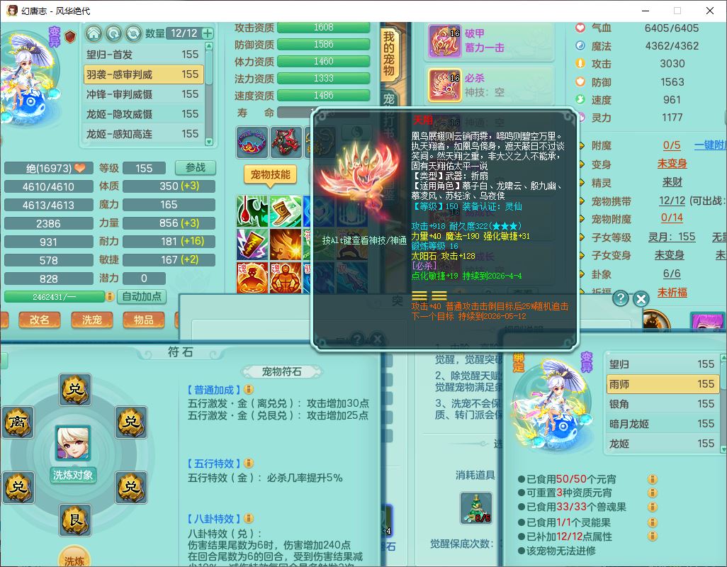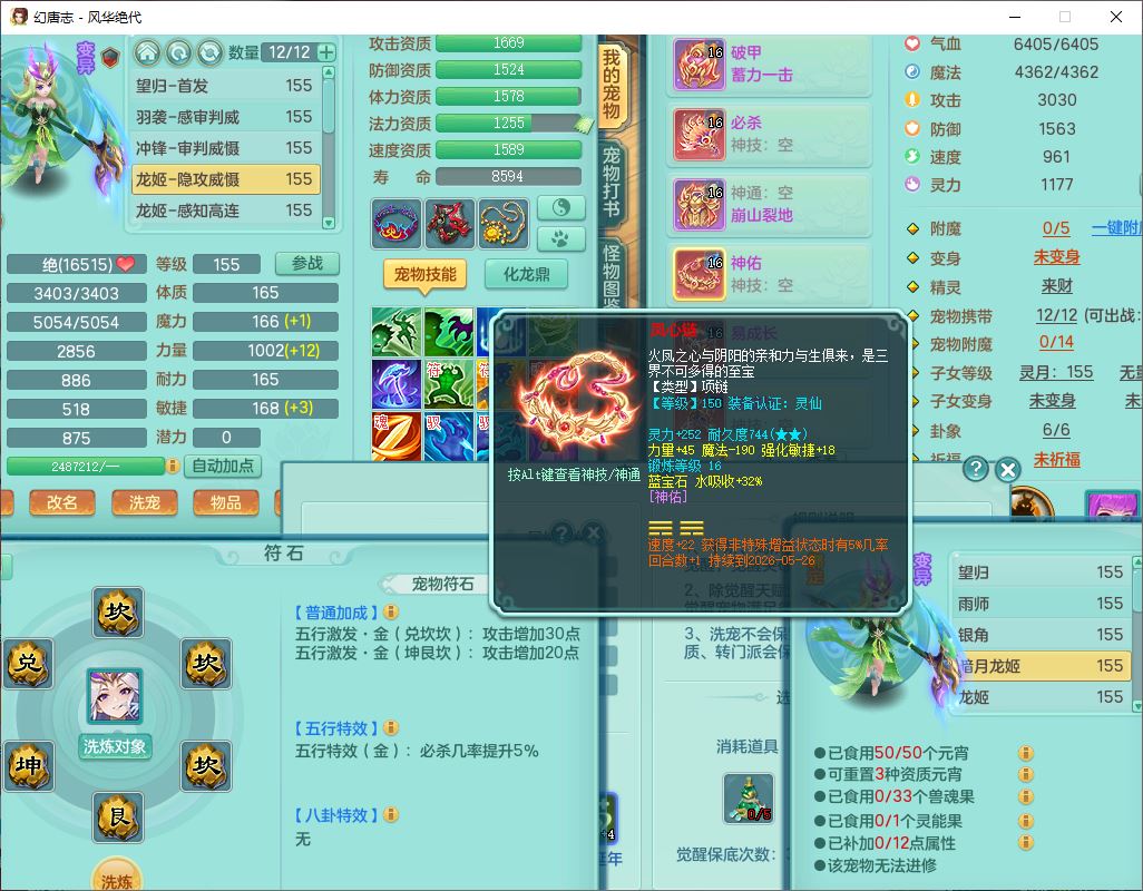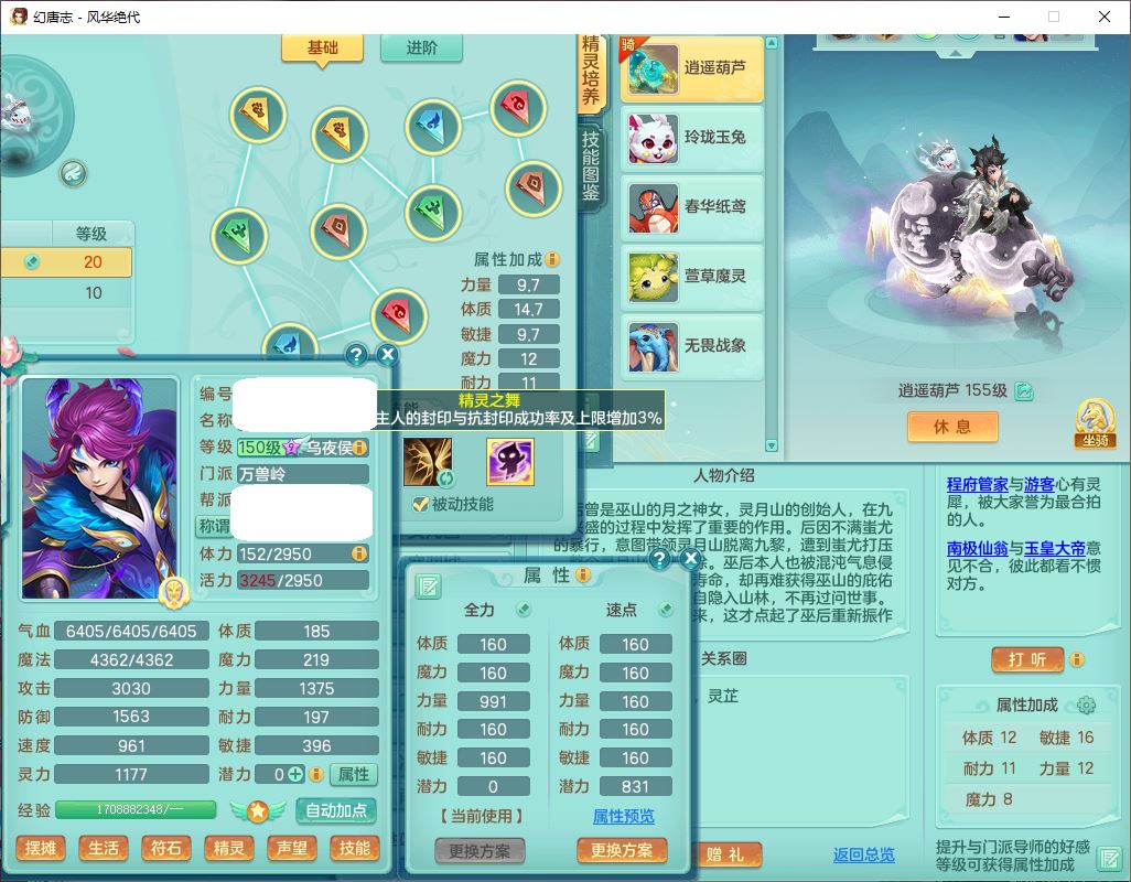 fh9611风华绝代159男万兽精灵舞,1神兽小马(无内)1望归3镜花1龙姬4特殊(羽袭、勇猛、堕天、灵傀),3觉醒6六字4四字综合6只满果子,全单加7红装备,破甲蓄力帽子,必杀武器,崩山衣服,鼎5.5,永久背饰、精灵皮肤,53个仙兽灵,17个内丹碎片,1洗练珠,2双人坐骑(1飞行),带150奶粉无量
