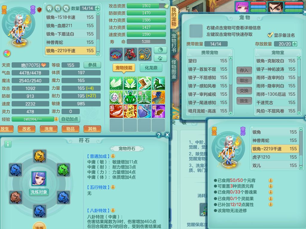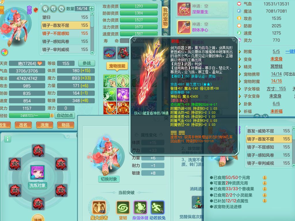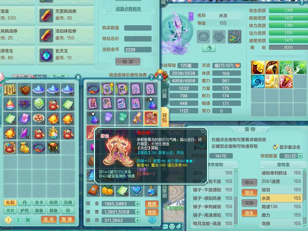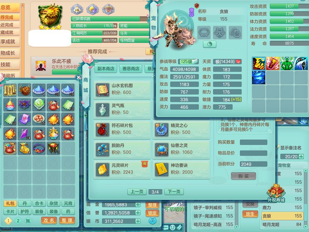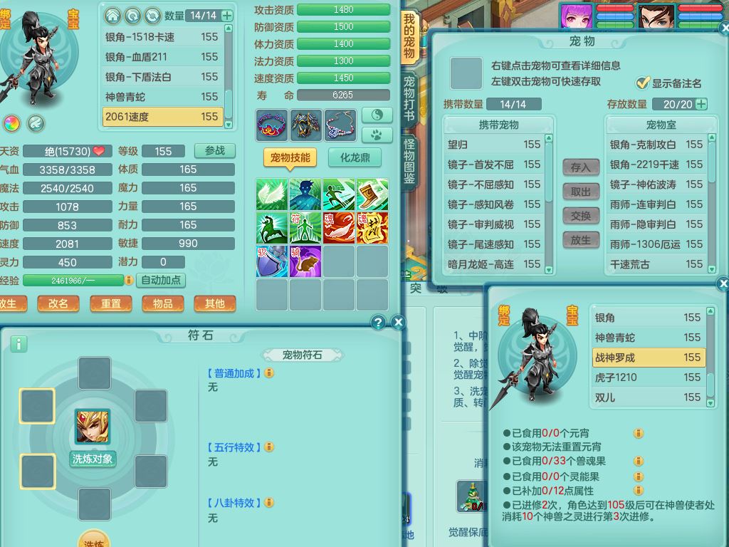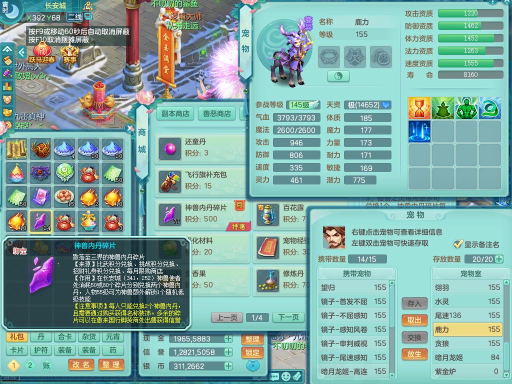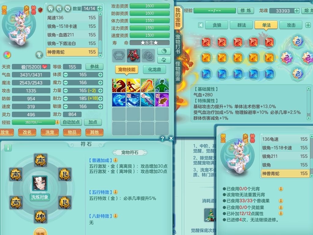 tx9620天下无双159男方寸【暴龙泰坦+西瓜冰】精灵舞,1龙(换,无内)1内丹青蛇1皮,3特殊(风卷/羽袭/剑胆)6镜花灵1龙姬,16只满果子13觉醒4个纯6字,9红愤怒5特,Y四海衣服,Y笑里项链,愤怒幸运腰带,鼎5.0+70+280,20天月卡,永久外观精灵皮肤,311W神武币,2228金币,24内丹碎片,宠排在榜,2坐骑(1只双人)