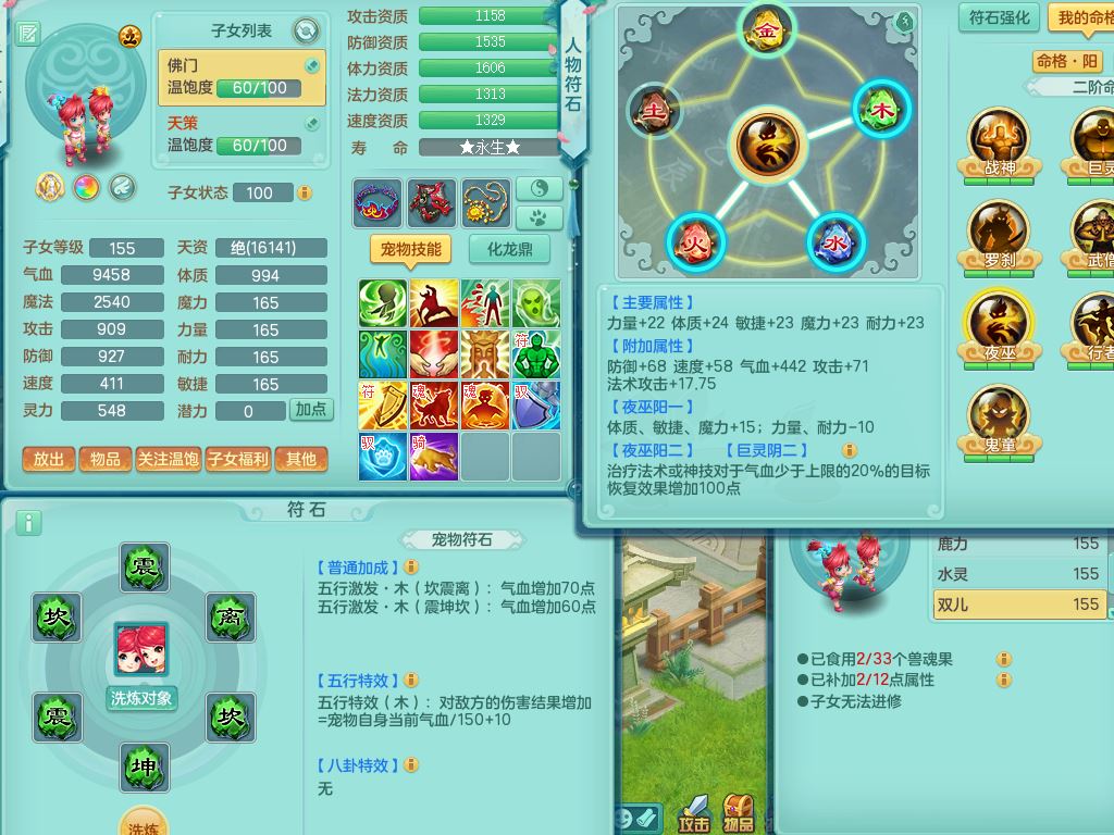 qq9623七窍玲珑159男佛门,宝宝装备齐全,1镜花灵,回春武器,愤怒4特,鼎4.5,263W神武币