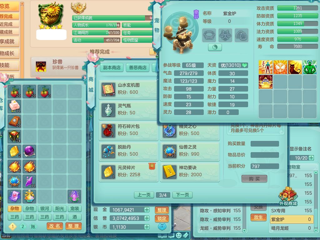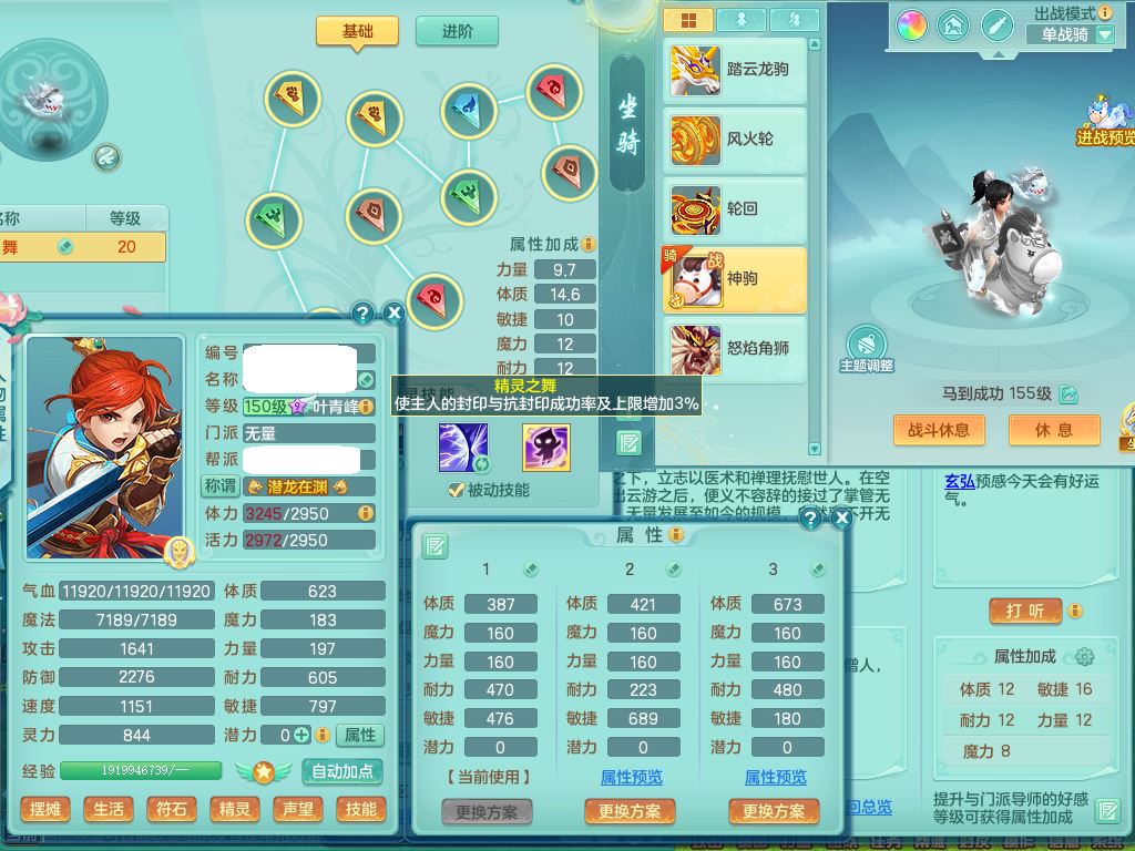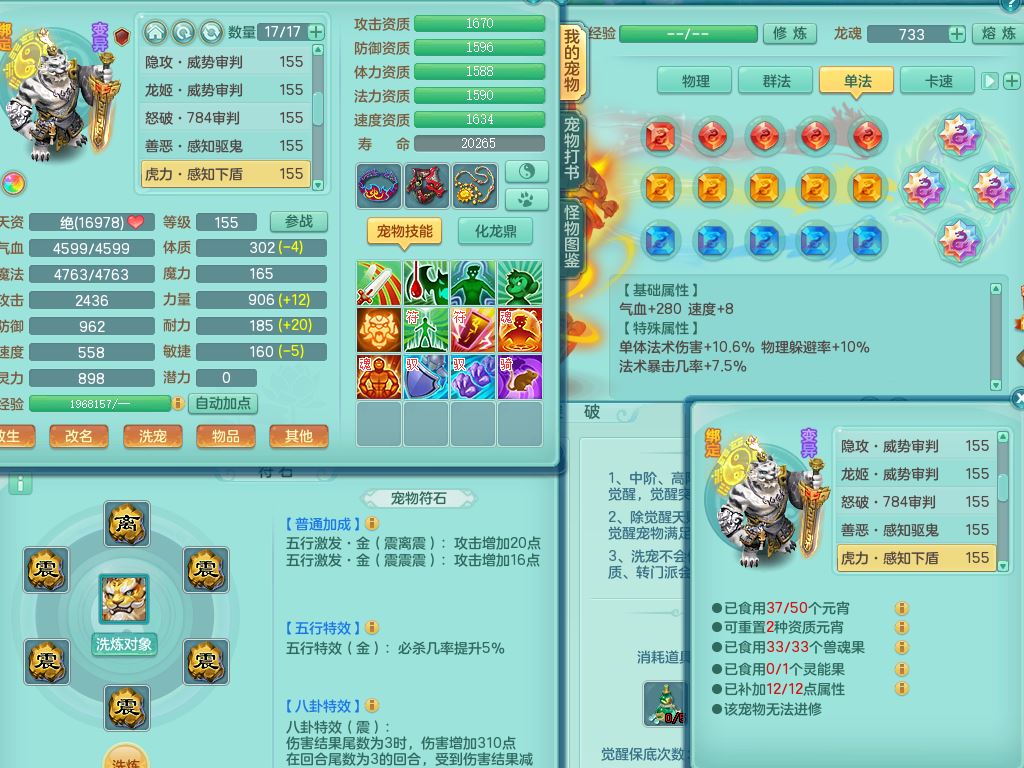 jt9631九天揽月159男佛门【潜龙号+神驹马到成功+西瓜冰】精灵舞,1龙(换,无内)1内12皮(1幻灵果),5特殊(羽袭/怒破/善恶/剑胆/守护/)17格子20只满果子9觉醒9个纯6字,10红愤怒6特,回春守备武器,匠心Y明镜衣服,愤怒双红腰带,鼎6.0+70+280,2套符石,152天月卡,房屋152,精灵皮肤,宠排在榜,2坐骑(1双人)带2个150奶粉