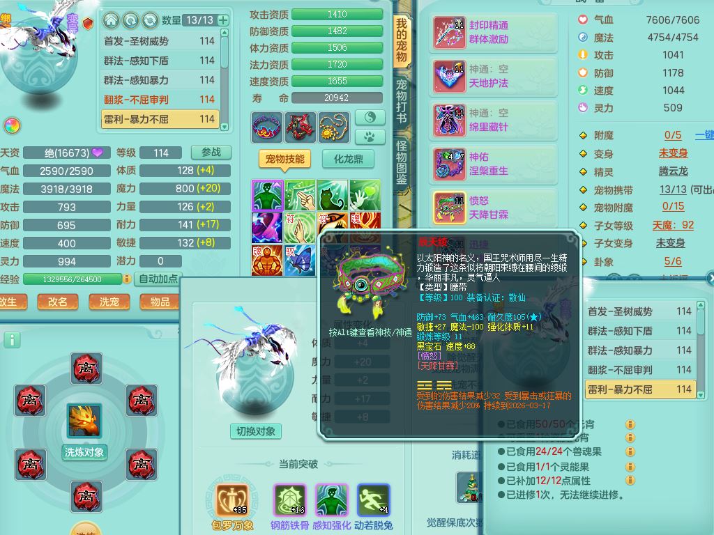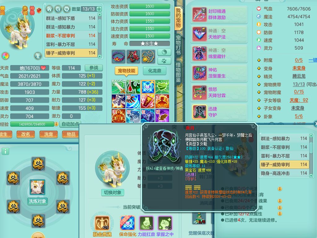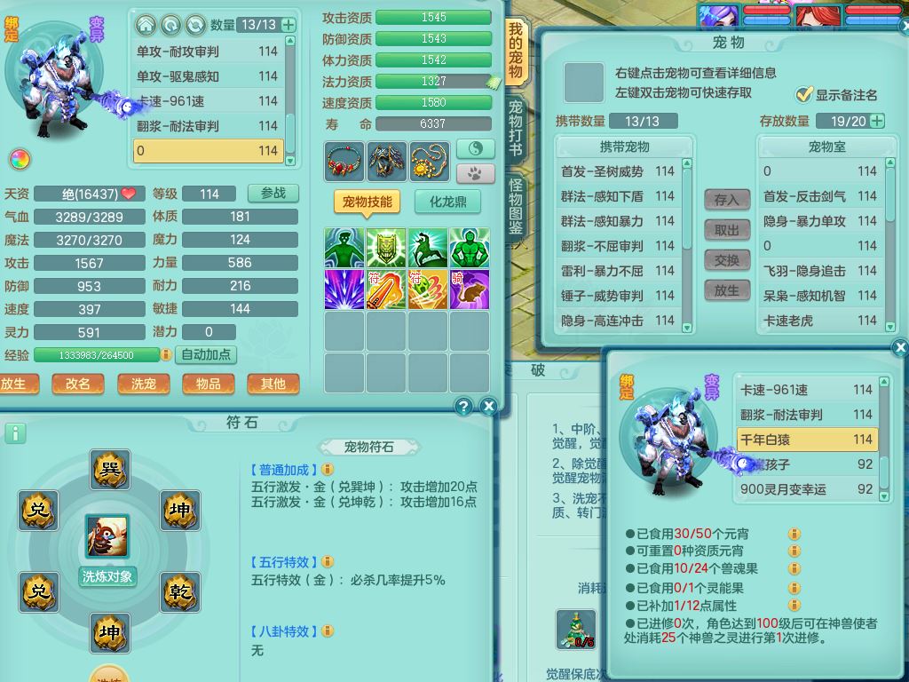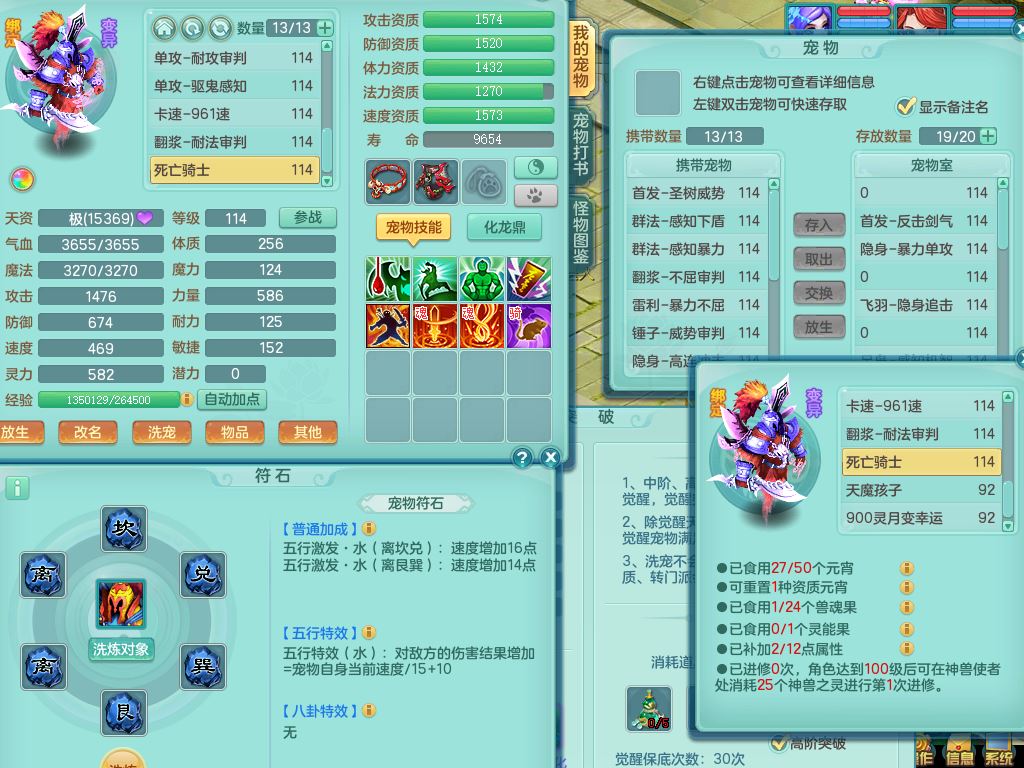 tx9657天下无双109女方寸【潜龙号】精灵舞,1内丹龙马,18只满果子10觉醒11个纯6字,10红星辰之拥,愤怒6特,封印双红头,神佑慈航项链,愤怒四海腰带,迅捷守护鞋,鼎2.5+42+168,永久外观,18仙兽灵,宠排在榜,双人坐骑