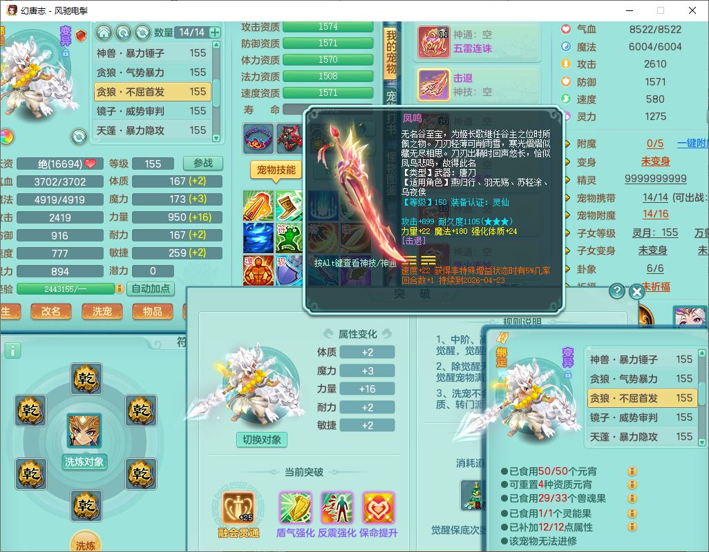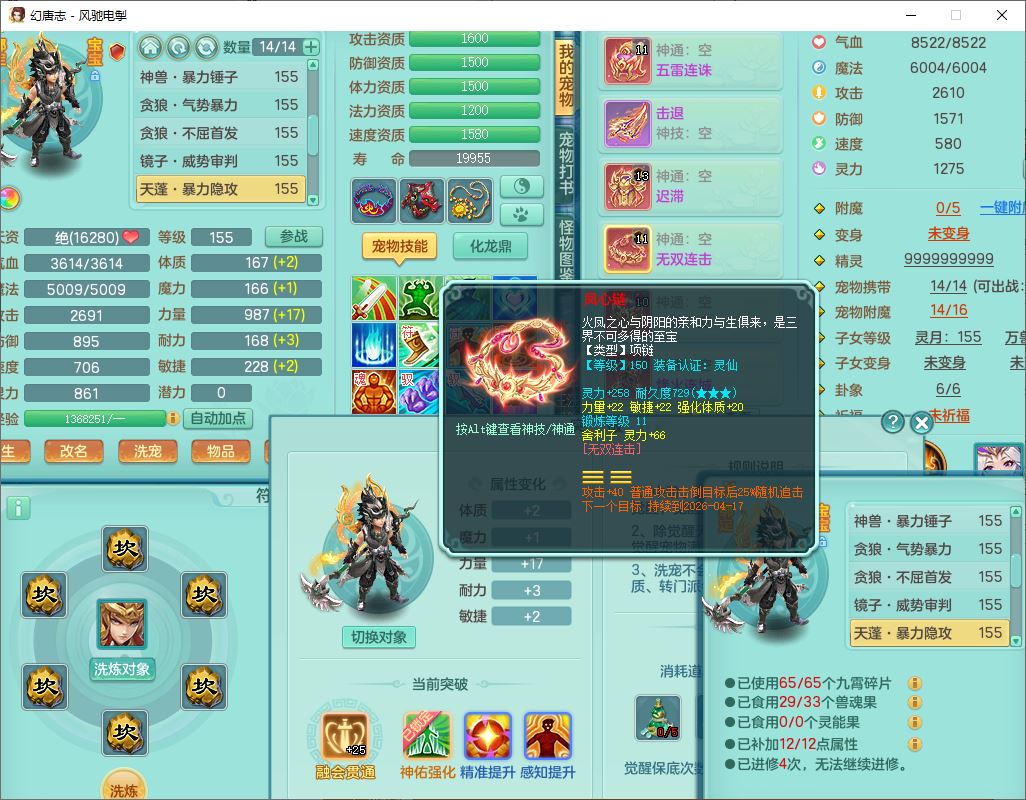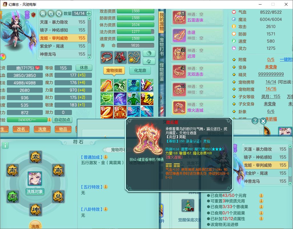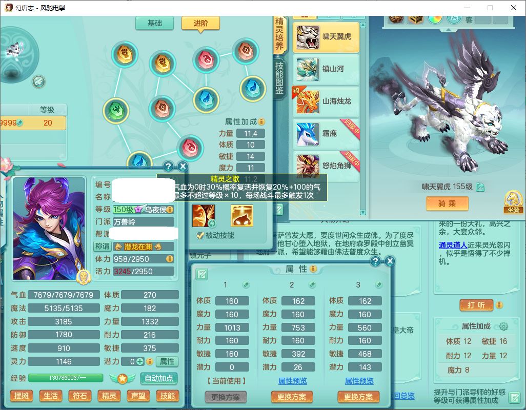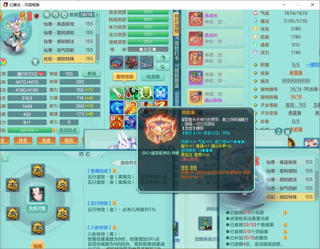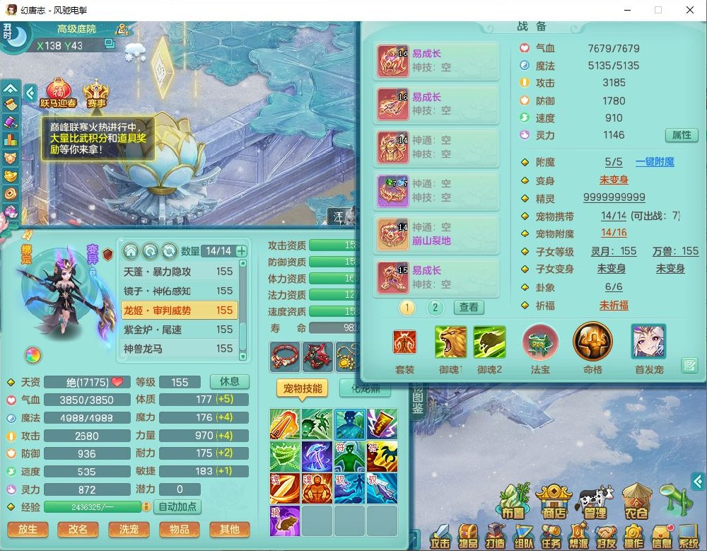 fc9665风驰电掣159男万兽【潜龙号】精灵歌,4位靓号,4龙(换)3内(1龙马)1龙姬2镜花1金炉,7觉醒3宠皮9六字1五字(洗练珠)3四字综合18只满果子,装备齐全,Y武器,崩山衣服,五雷帽子,击退武器,鼎法爆8.7+70+280,冰晶庭院202,永久外观、精灵皮肤,5个内丹碎片,仓库多高书存货,5坐骑(1双人飞行),带150奶粉,1双人坐骑