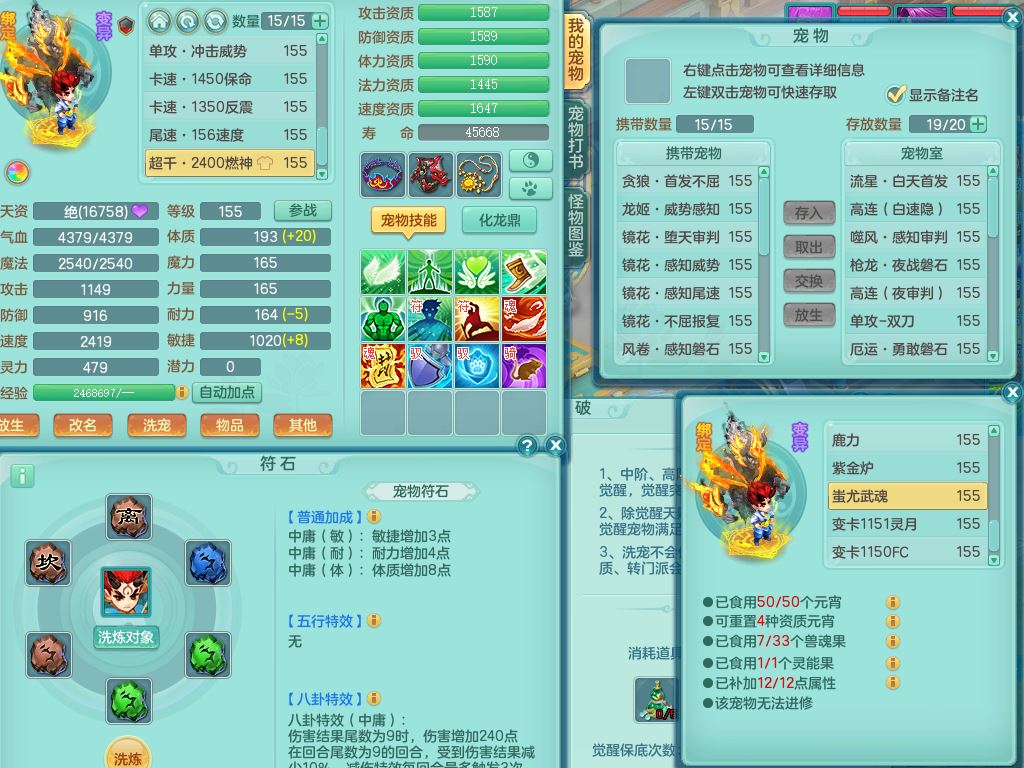 tx9683天下无双159男万兽【潜龙号+神驹红红火火+火焰之力】精灵歌,2套星穹,1龙(换,无内)1内丹龙马,5特殊(堕天/流星/噬风/枪出/虎虎兽决)4镜花灵1龙姬,16只满果子10觉醒8个纯6字,10红双破甲星辰之拥,916单加Y狂暴武器,单加破甲明镜头,崩山衣服,神佑破血项链,破甲野兽鞋,鼎5.5+70+280,146天月卡,永久外观精灵皮肤,2坐骑(1只双人)