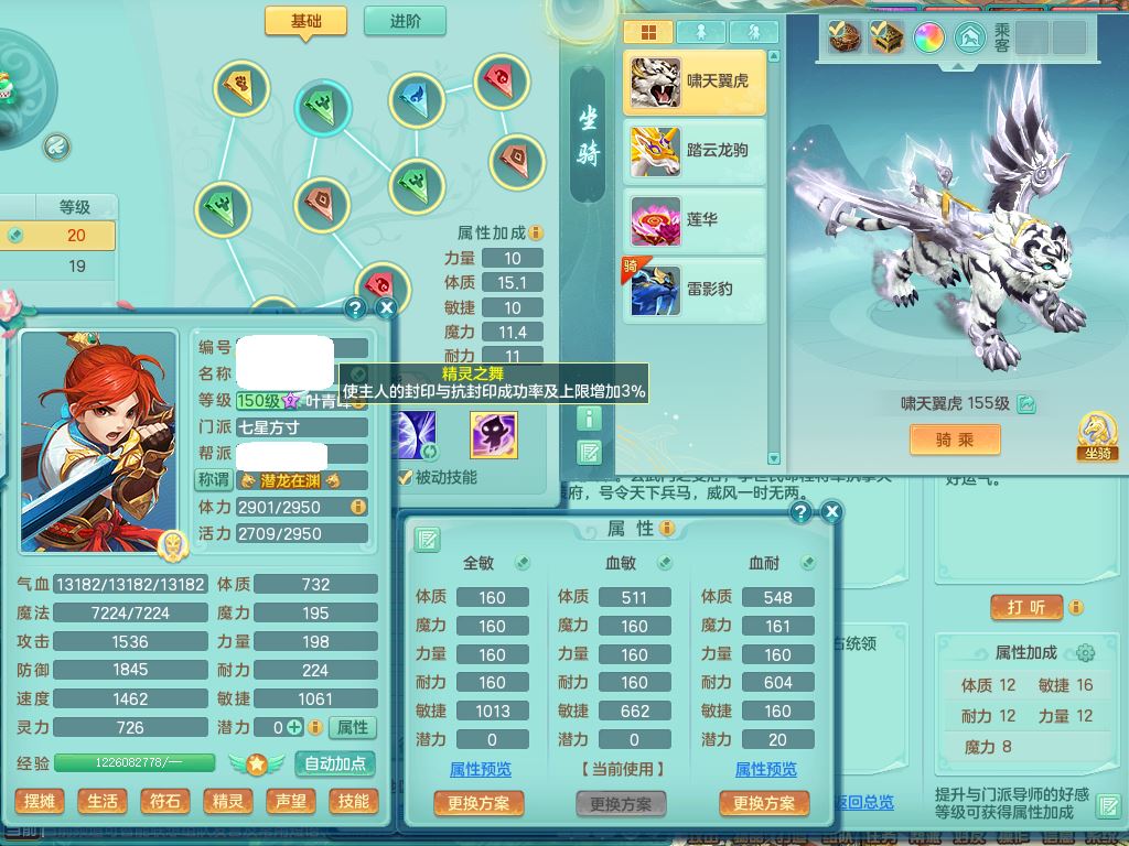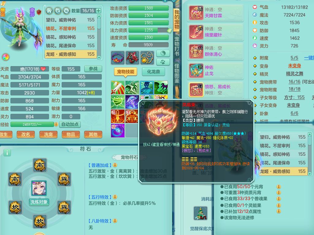 qq9682七窍玲珑159男方寸【潜龙号】精灵舞,4字靓号,7龙(换,无内)3内,3镜花灵1龙姬,20只满果子7觉醒8个纯6字,9红,单加神佑止戈项链,单加愤怒Y腰带,迅捷Y鞋,鼎5.5+70+280,2套符石,107天月卡,房屋183,永久外观精灵皮肤,40内丹碎片,2只双人坐骑