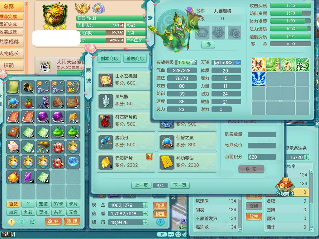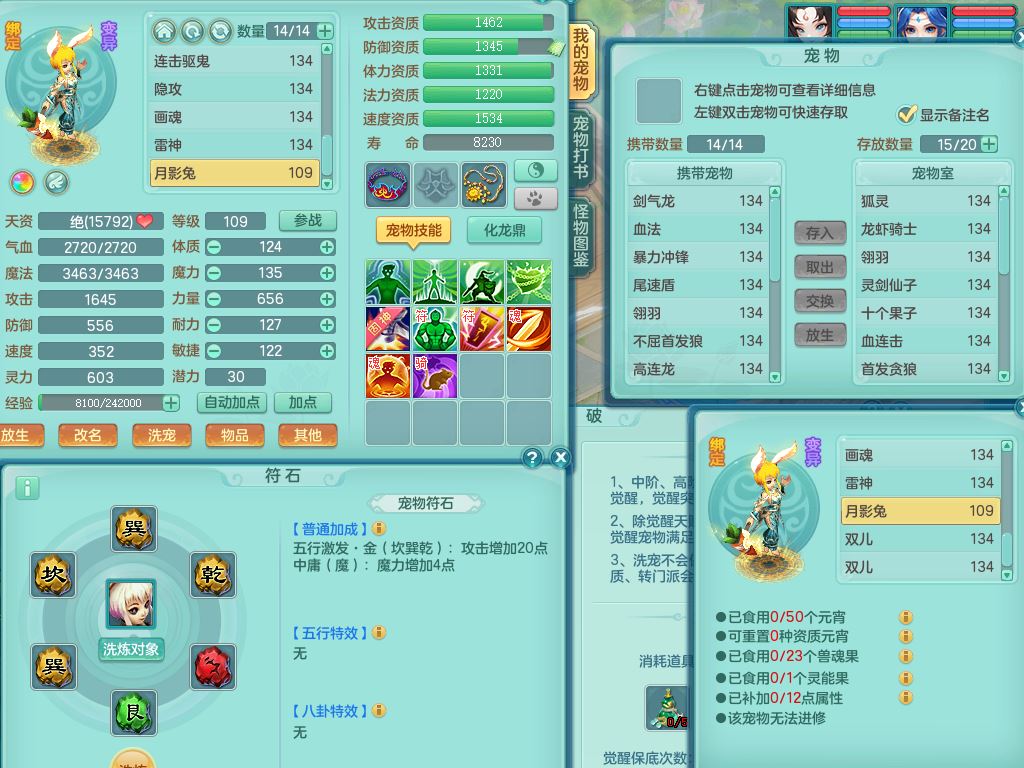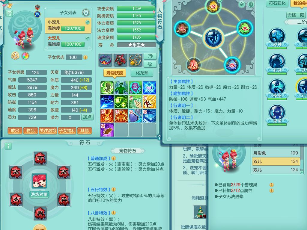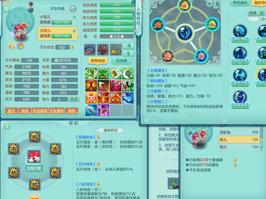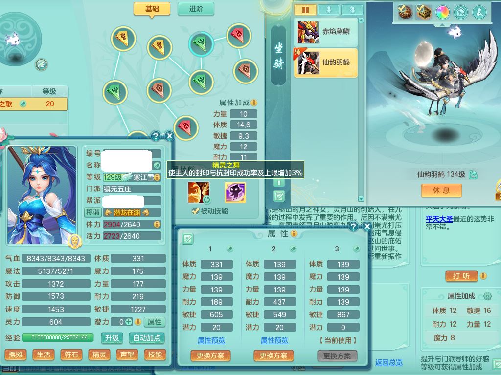 jt9686九天揽月129女五庄【潜龙号】精灵舞,2龙(换)2内(1青蛇),综合14只满果子7觉醒8个纯6字,全身高单加8红,强壮笑里衣服,愤怒Y腰带,迅捷鞋,物理729单加Y武器,防御破血衣服,鼎4.0+56+224,202天月卡,永久背饰,43内丹碎片,2坐骑(1只双人)