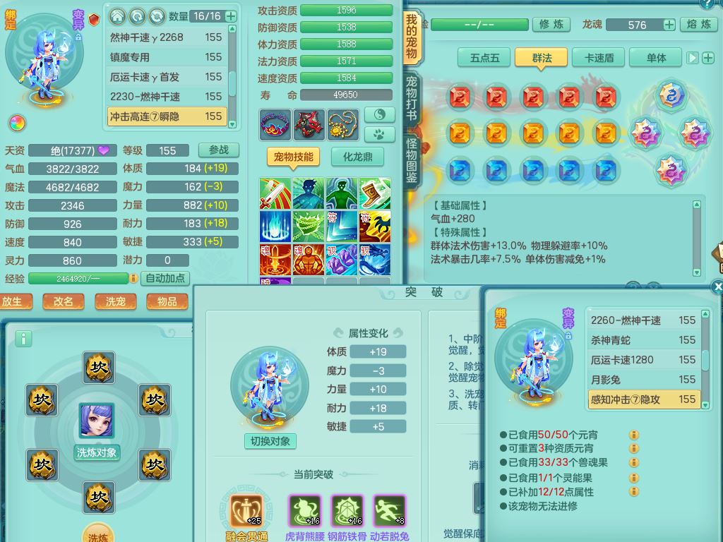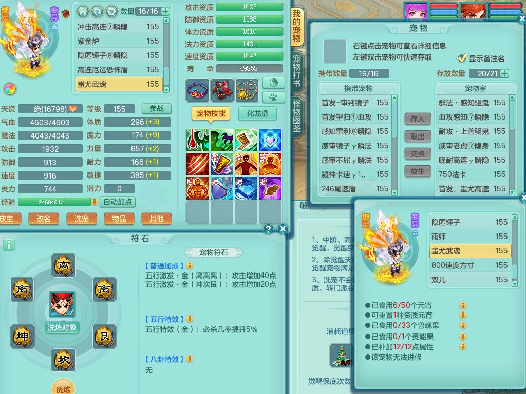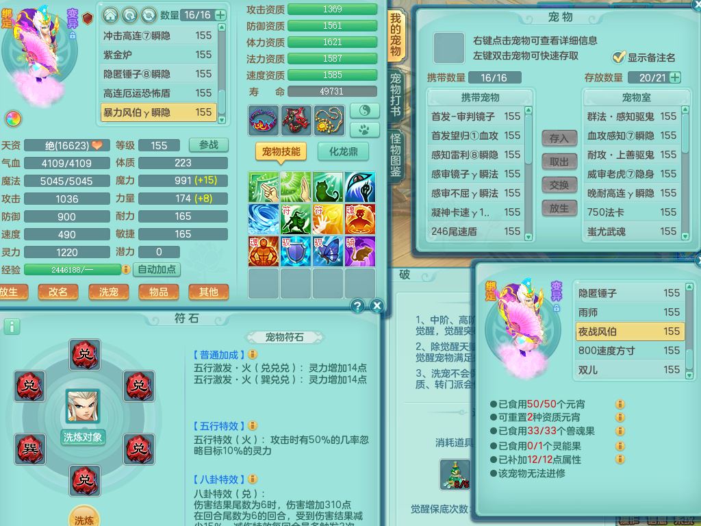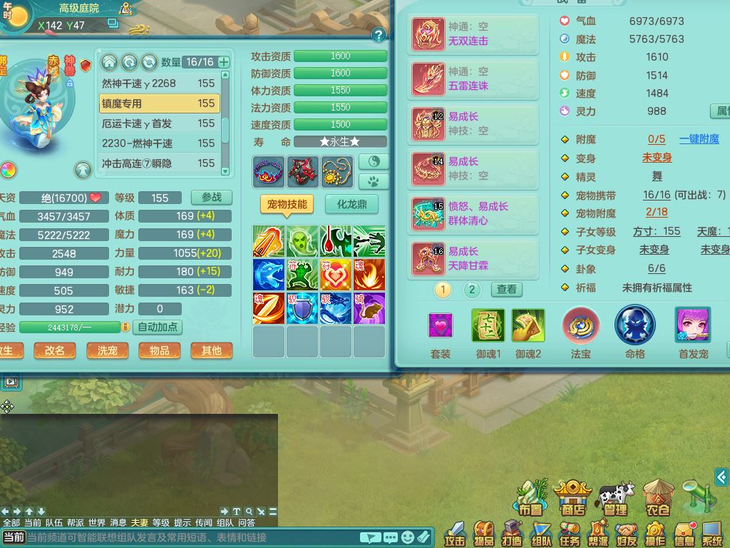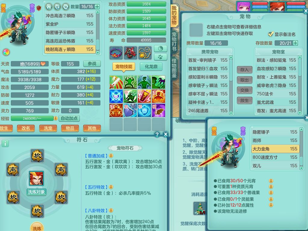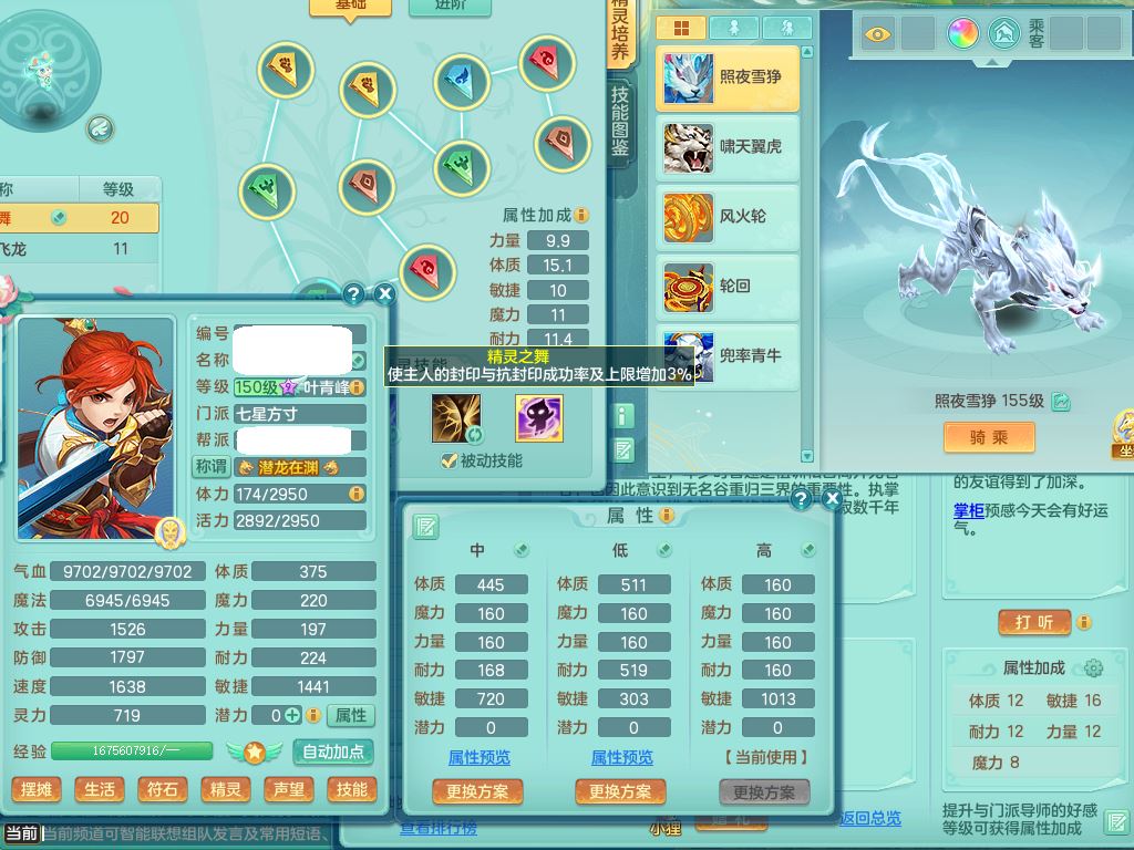 jt9690九天揽月159男方寸【潜龙号】精灵舞,1龙(换)1内丹青蛇2皮1破境,3特殊(虎虎/上善/藕断兽决)3镜花灵,19只满果子10觉醒7个纯6字,全身高单加9红愤怒6特,愤怒Y玉清腰带,Y四海鞋,法系275单加Y项链,单加五雷武器,鼎5.5+70+280,永久外观精灵皮肤,41内丹碎片,2只双人坐骑