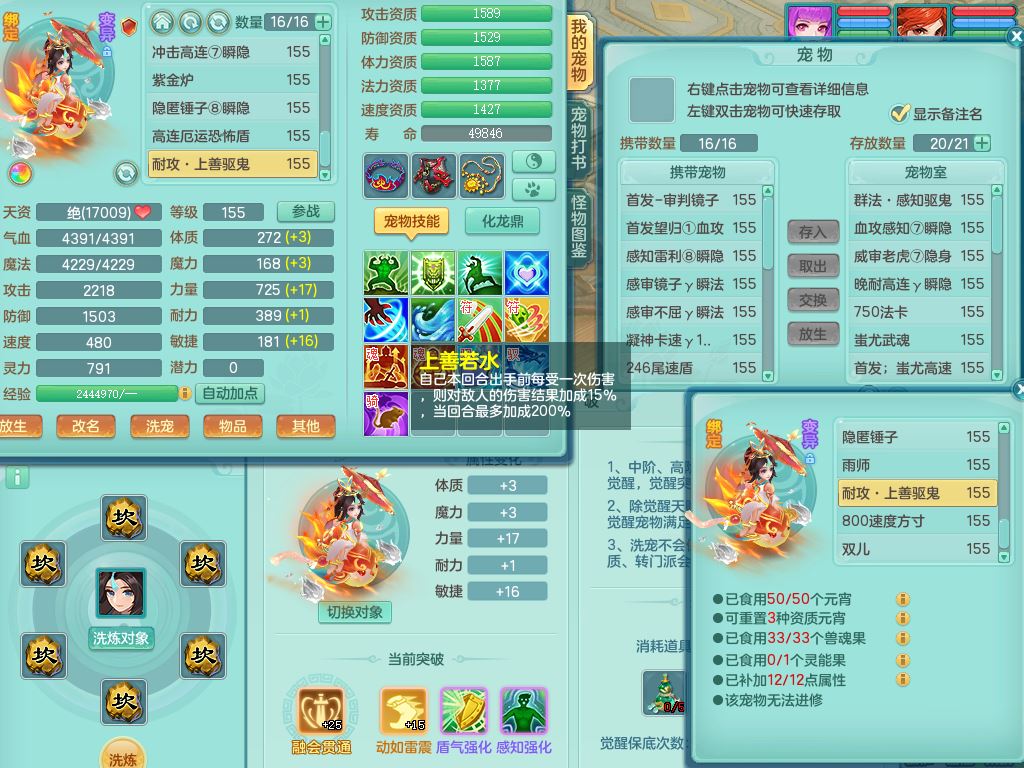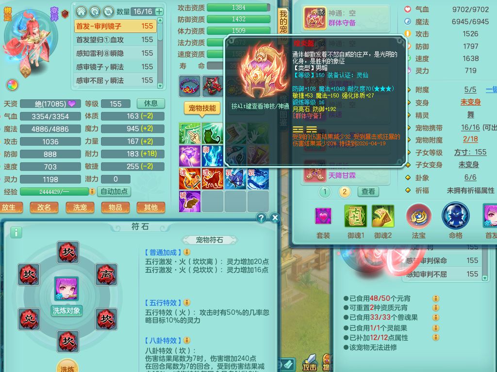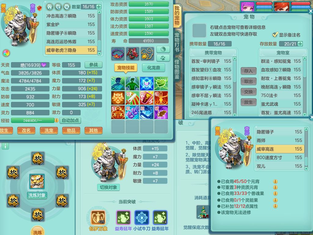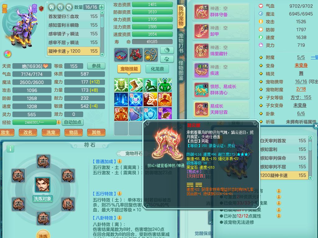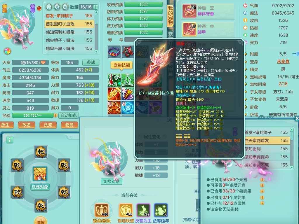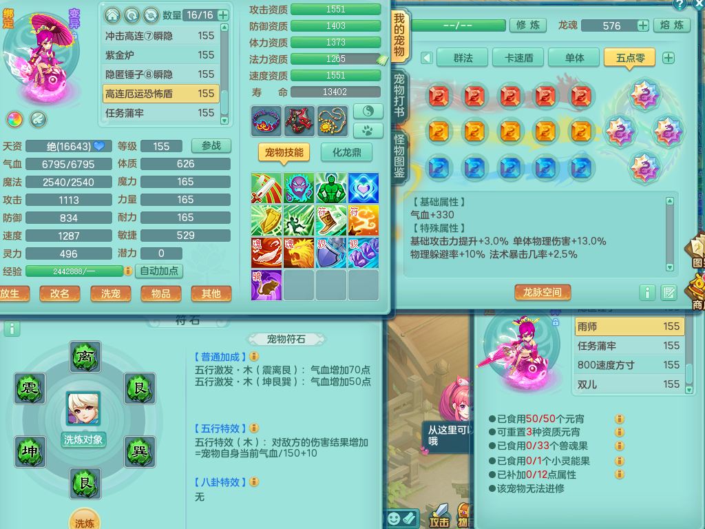 jt9690九天揽月159男方寸【潜龙号】精灵舞,1龙(换)1内丹青蛇2皮1破境,3特殊(虎虎/上善/藕断兽决)3镜花灵,19只满果子10觉醒7个纯6字,全身高单加9红愤怒6特,愤怒Y玉清腰带,Y四海鞋,法系275单加Y项链,单加五雷武器,鼎5.5+70+280,永久外观精灵皮肤,41内丹碎片,2只双人坐骑