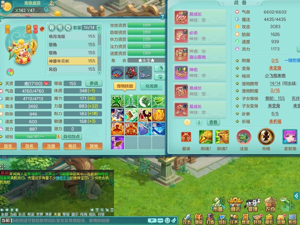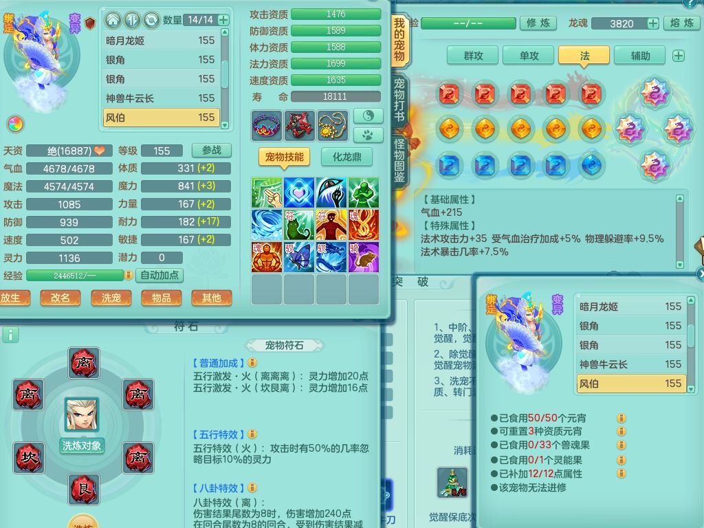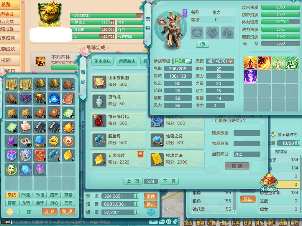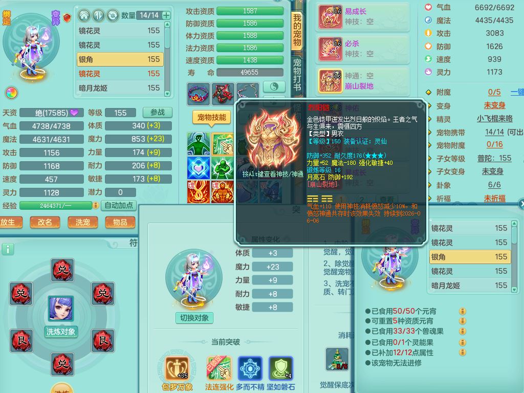 zw9703战无不胜159男万兽精灵舞,1龙(换,无内)1内丹神3特殊(枪出/兽决堕天/噬风)3镜花灵1龙姬,综合12只满果子7觉醒4个纯6字,全身高单加,928必杀武器,崩山衣服,鼎6.0,永久外观,宠排在榜