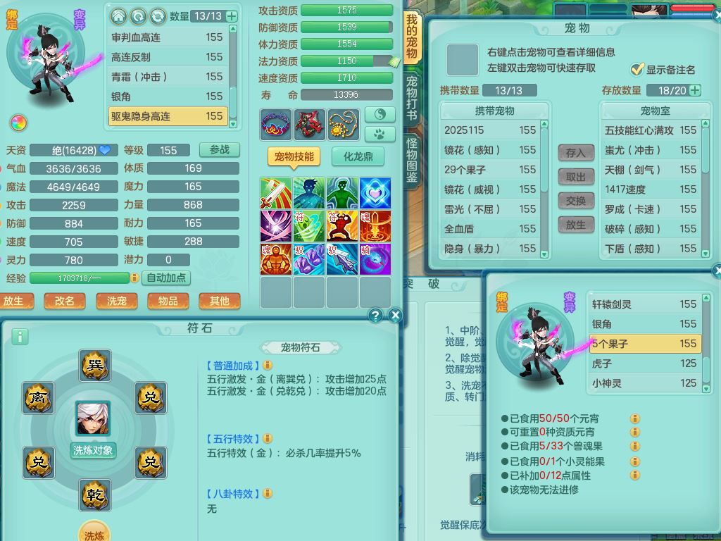 tx9704天下无双159男方寸精灵舞,绝版豹子4字靓号,满级共鸣,2套星穹,1内丹神3特殊(烈焰/兽决以战/月光)2镜花灵,综合8只满果子4觉醒2个纯6字,8红6特,单加药香晶清项链,Y四海鞋,鼎5.0+70,永久头饰,24仙兽灵,双人坐骑