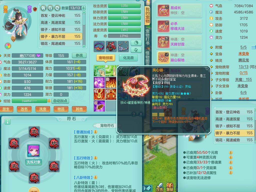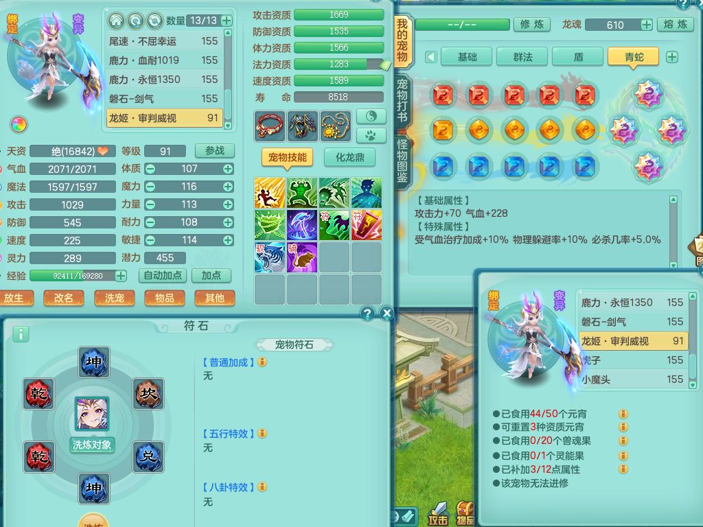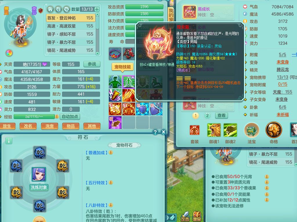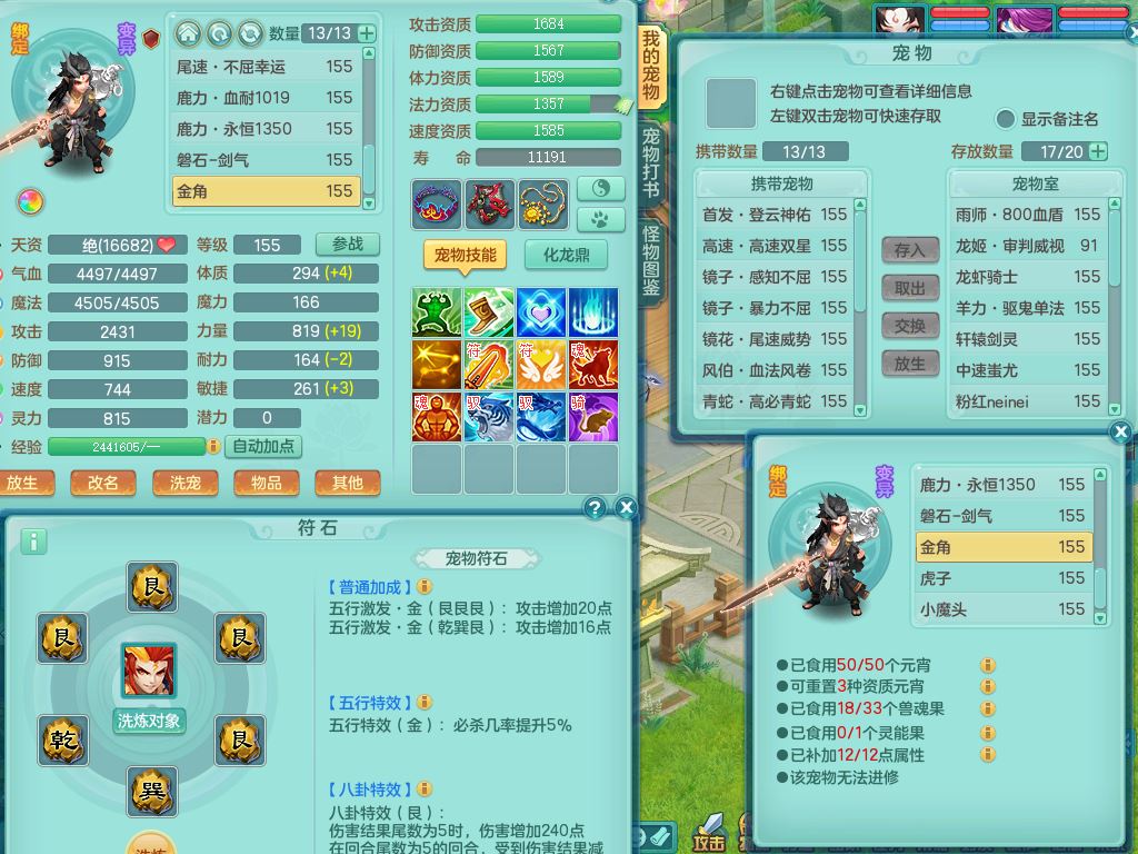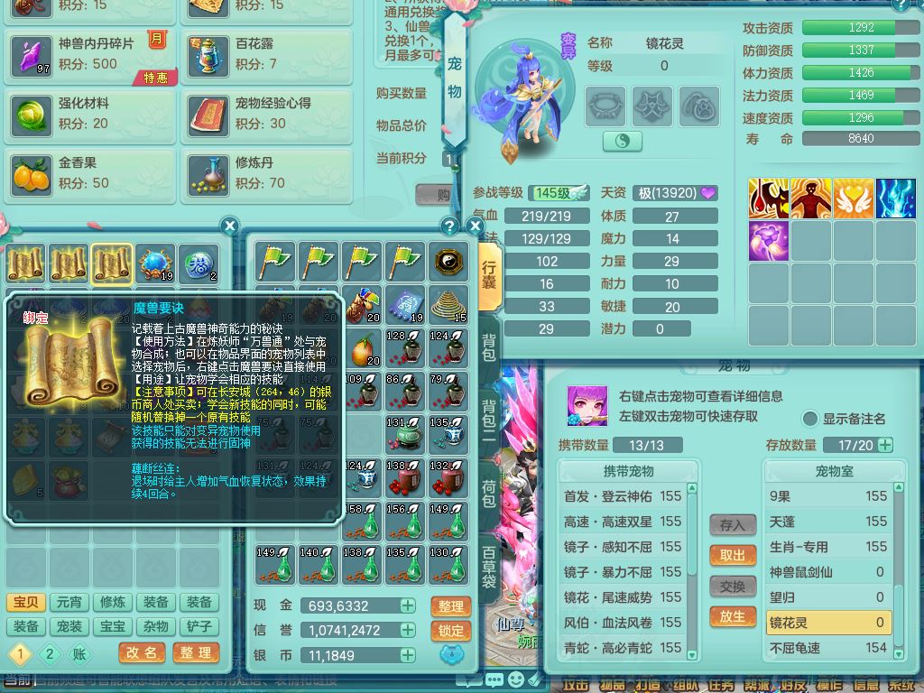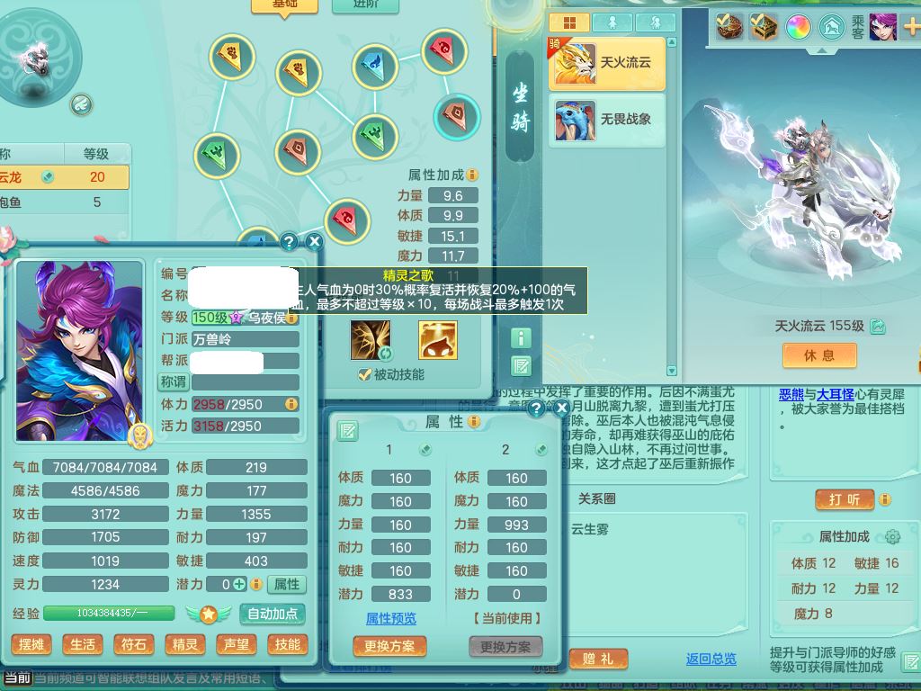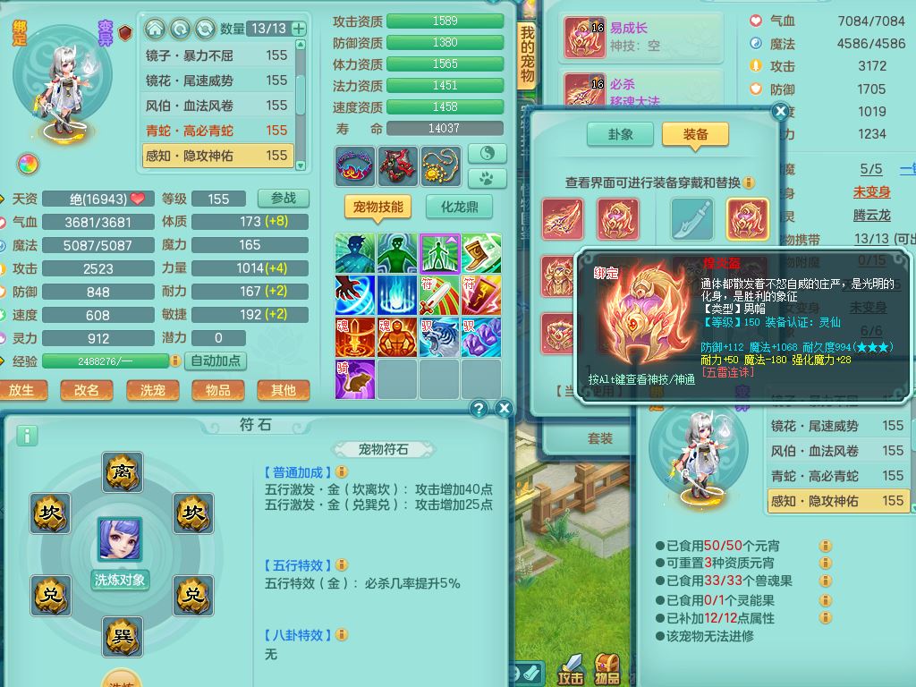 tx9723????3300天下无双159男万兽精灵歌,满级共鸣,1内丹青蛇4特殊(登云/双星/祈雨/藕断兽决)综合8只满果子1觉醒1个6字洗练珠,906单加必杀双红武器,崩山项链,鼎5.0+70,139天月卡,19仙兽灵,19内丹碎片,永久外观精灵皮肤,双人坐骑