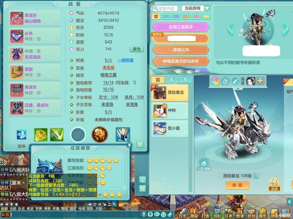 hf9735寒锋映雪103女天策八位靓号id+泰坦西瓜冰+15马心想事成武器剑 三内丹神(还能存一内)外观拉满 ,经验、修炼、成就、宠排全在榜,2980邮箱有双重一手可换