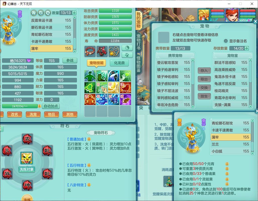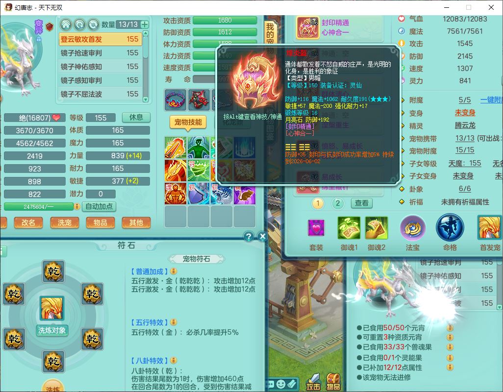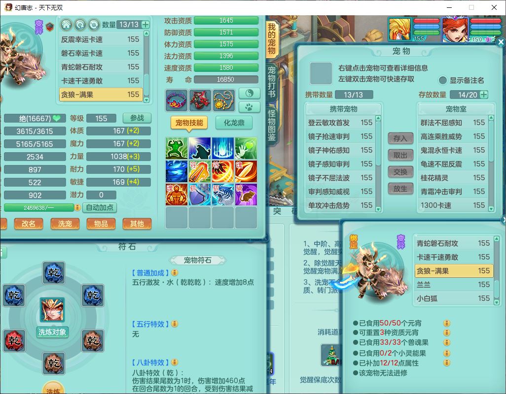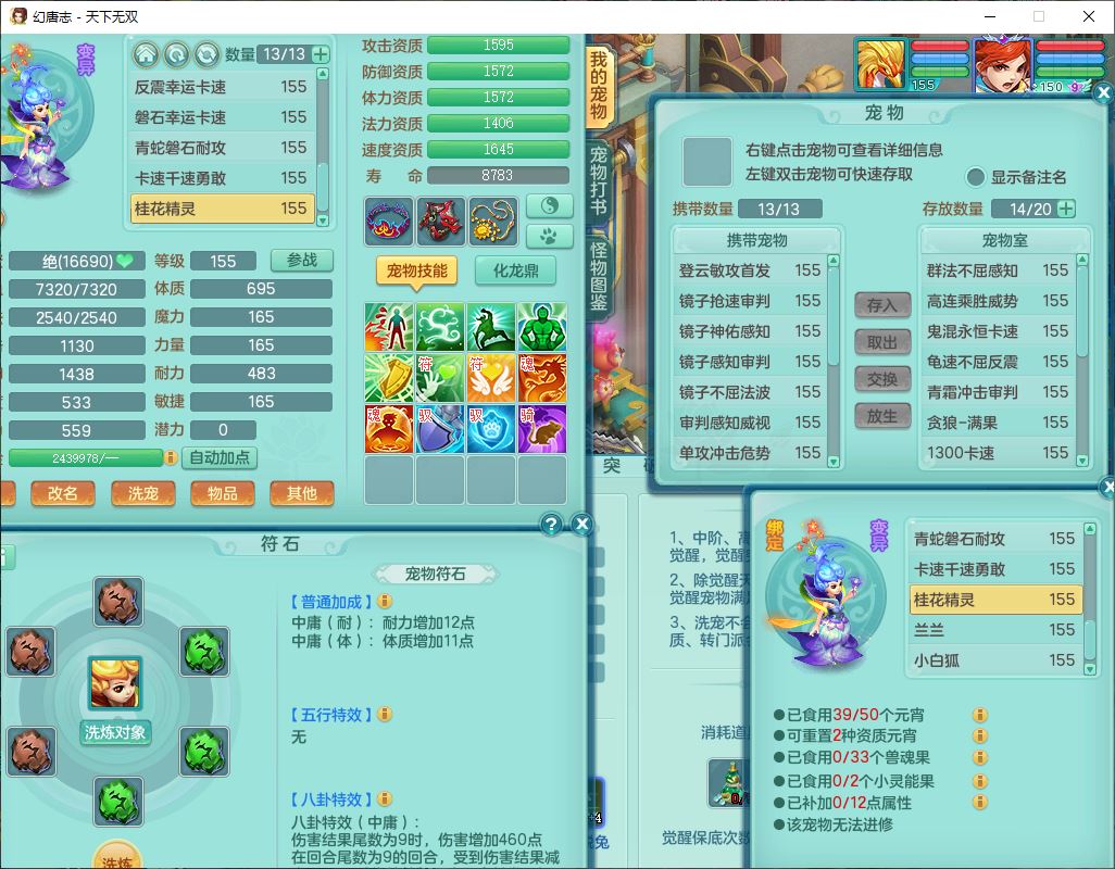 tx9724天下无双159男方寸【马上发财+暴龙洪荒+火焰之力+西瓜冰+潜龙过半】精灵舞,1青蛇(无内)1望归4镜花,7觉醒15六字1五字2四字18只满果子,10红装备,封印精通心神帽子,愤怒Y乱刃腰带,Y笑里鞋子,鼎5.5+70,133天月卡,庭院187房屋161,永久外观、精灵皮肤,11个仙兽灵,42个内丹碎片,1双人飞行坐骑,带159女天宫精灵怒,10红装备,318W神武币;159女万兽3镜花8红装备,287W神武币,1特殊兽决虎虎