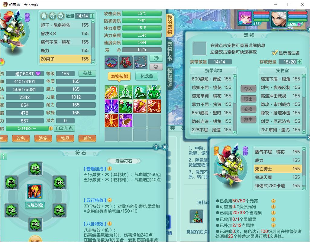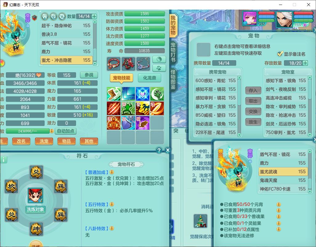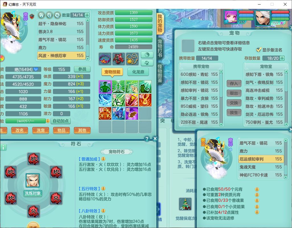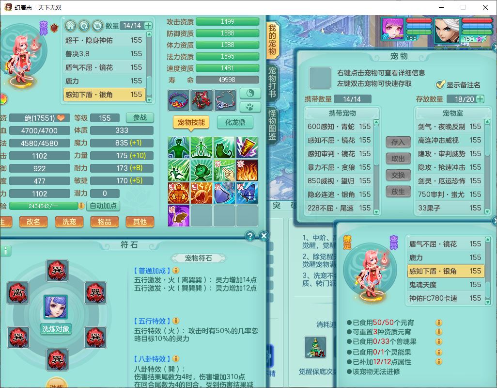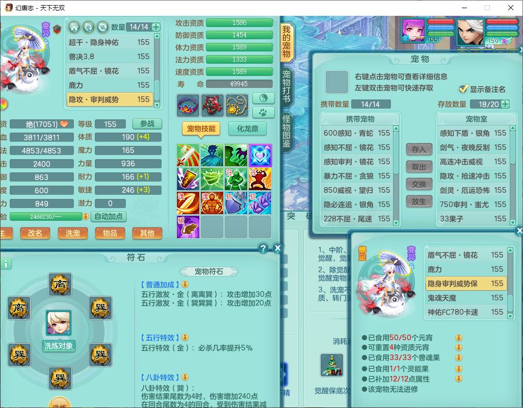 tx9736天下无双159男方寸精灵舞,带360W银币可转无量,还有套法爆法装备,仙龙5成就 1龙(换、无内)2神兽1内丹青蛇3镜花(1胚子)1望归,3觉醒2六字2五字7四字11只满果子,9红装备,Y罗汉帽子,神佑四海项链,迅捷激励鞋子,鼎5.0,2套符石,128天月卡,冰晶庭院166房屋164,永久头饰、精灵皮肤,34个内丹碎片,1双人坐骑,带150万兽奶粉