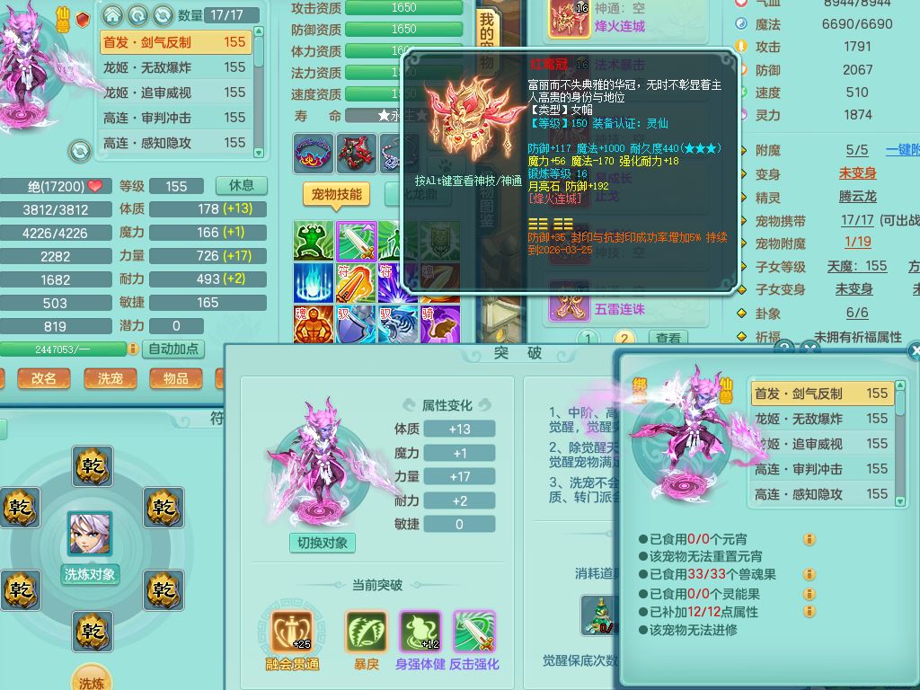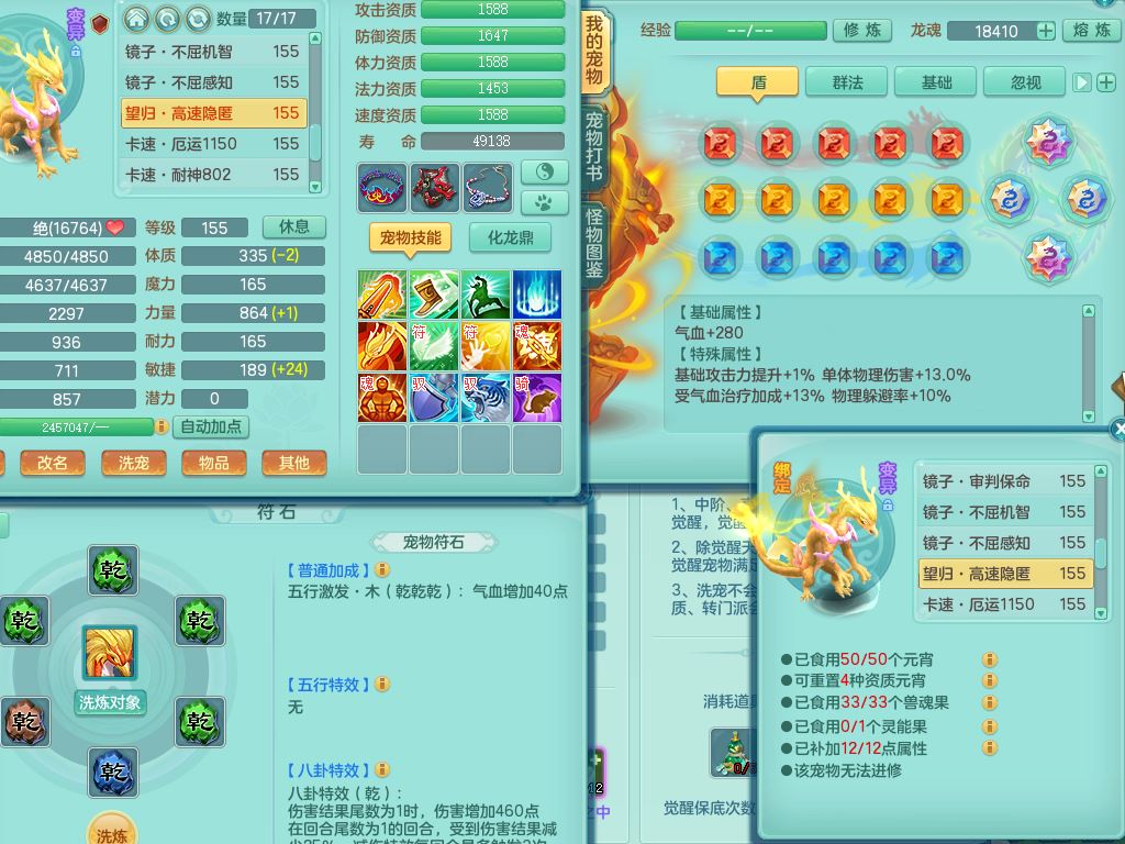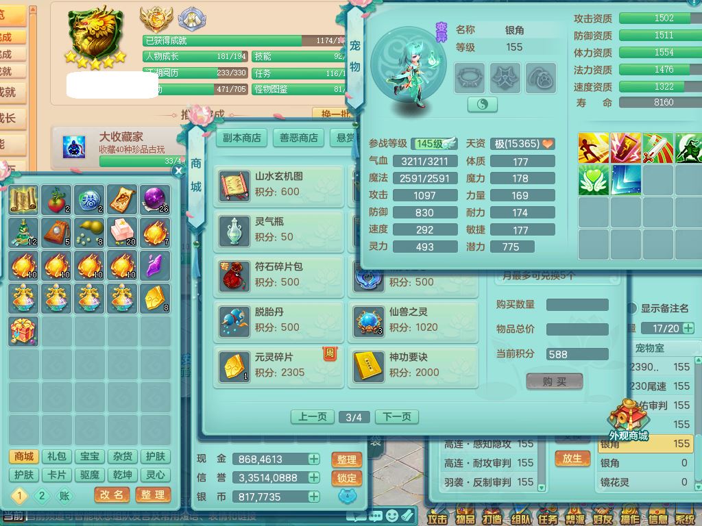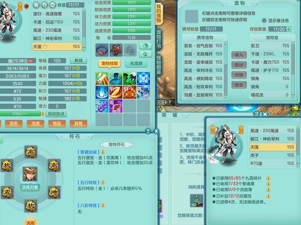 ym9711扬名立万159女魔王【潜龙号+龙皮】精灵歌,2套星穹,7龙(换)1龙皮2内3宠皮,3特殊(羽袭/月光/青霜兽决)3镜花灵3龙姬,17格子25只满果子11觉醒8个纯6字,全身单加,264Y止戈项链,五雷鞋,辅助愤怒5特,鼎6.0+70+280,2套符石,庭院155房屋172,永久外观精灵皮肤,817W神武币,宠排在榜,3只双人坐骑