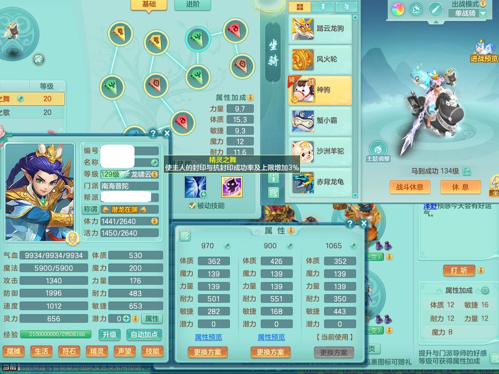jt9754九天揽月129男普陀【潜龙号+神驹马到成功】精灵歌+舞,4字靓号,2龙(换)2内3破境1皮,16格子28只满果子14觉醒13个纯6字,12红愤怒6特,Y止戈头,幸运笑里武器,Y玉清衣服,坚毅四海项链,愤怒野兽腰带,Y明镜鞋,鼎4.0+56+224,217天月卡,庭院162房屋161,永久外观精灵皮肤,77内丹碎片,宠排在榜,2坐骑(1只双人)