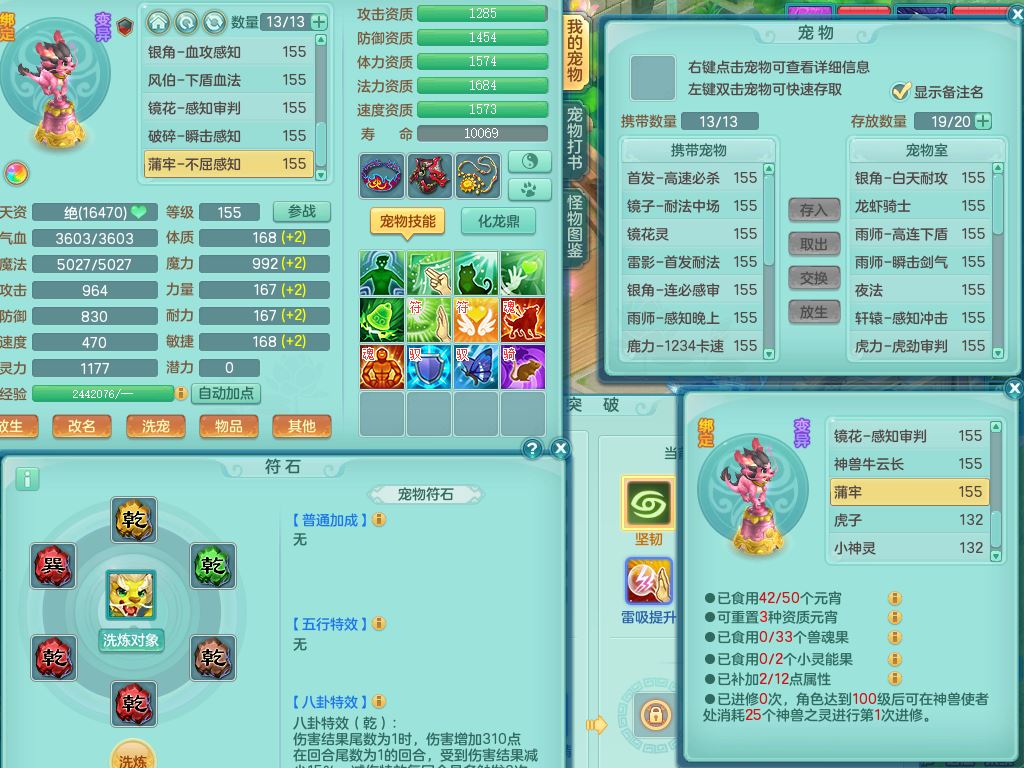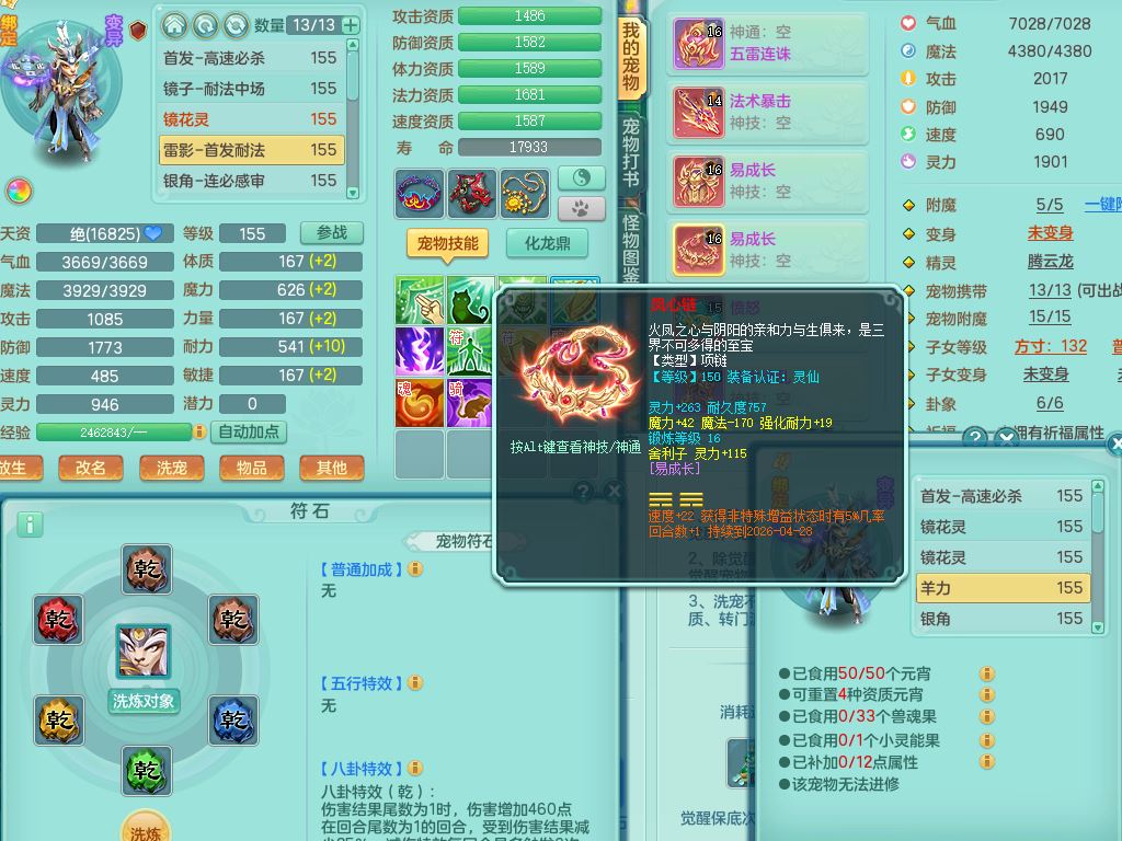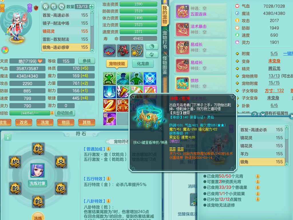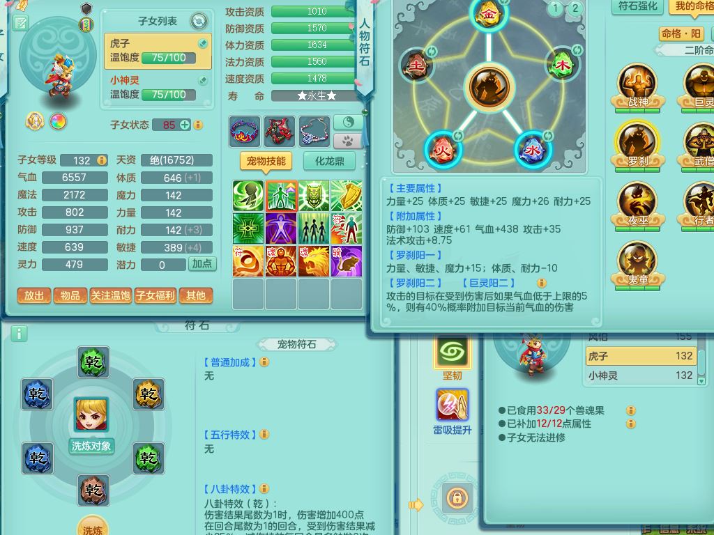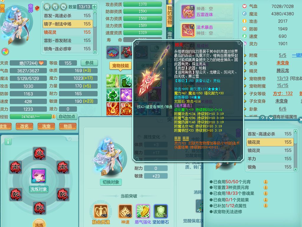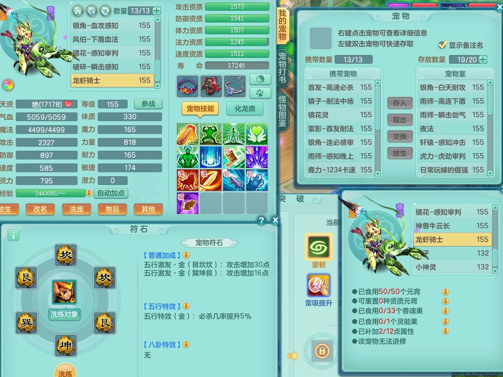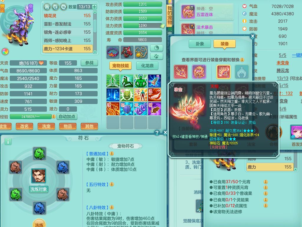tx9747天下无双159男天宫精灵怒,满级共鸣,1内丹神,3镜花灵,综合8只满果子4觉醒10个4字1个5字,单加法爆武器,单加五雷头,263单加Y项链,Y衣服,法术缭乱鞋,鼎4.5,2套符石,永久外观精灵皮肤,30仙兽灵,飞行双人坐骑