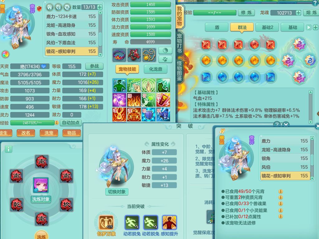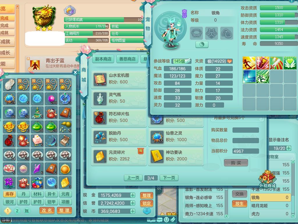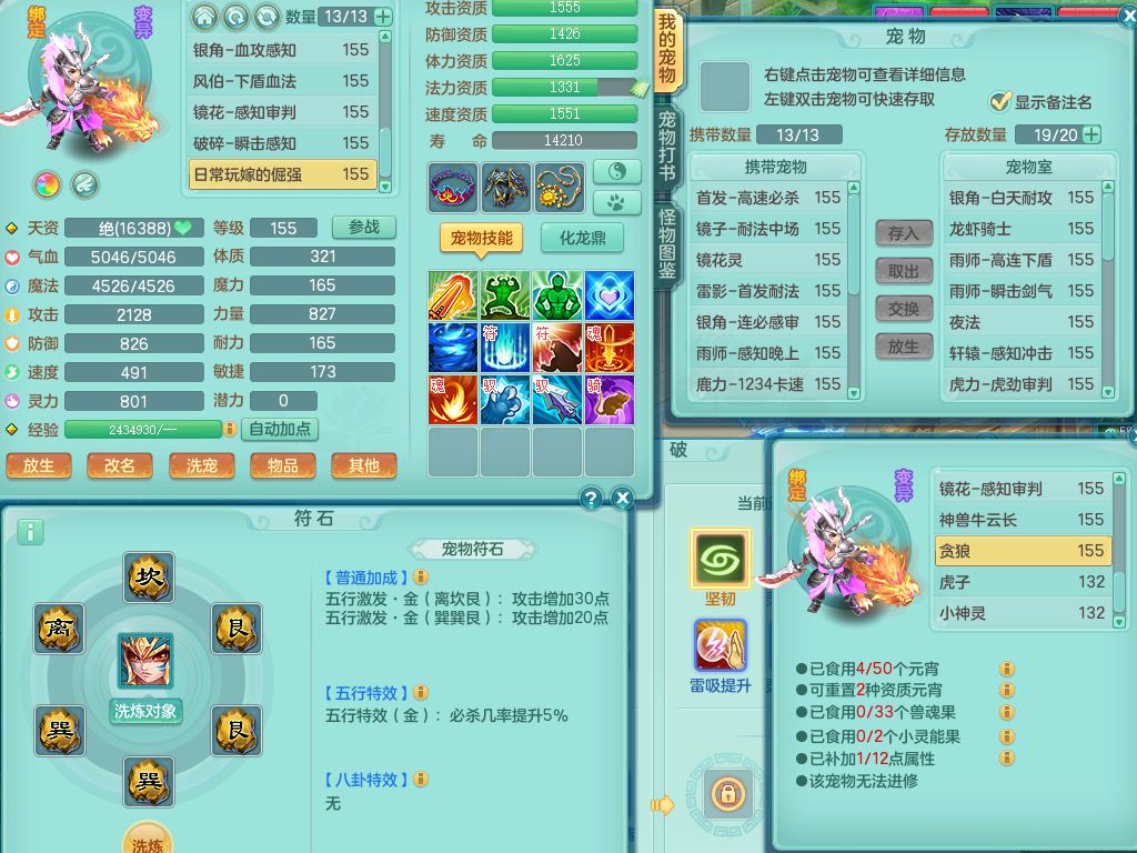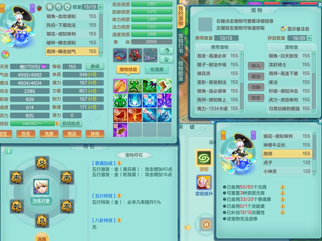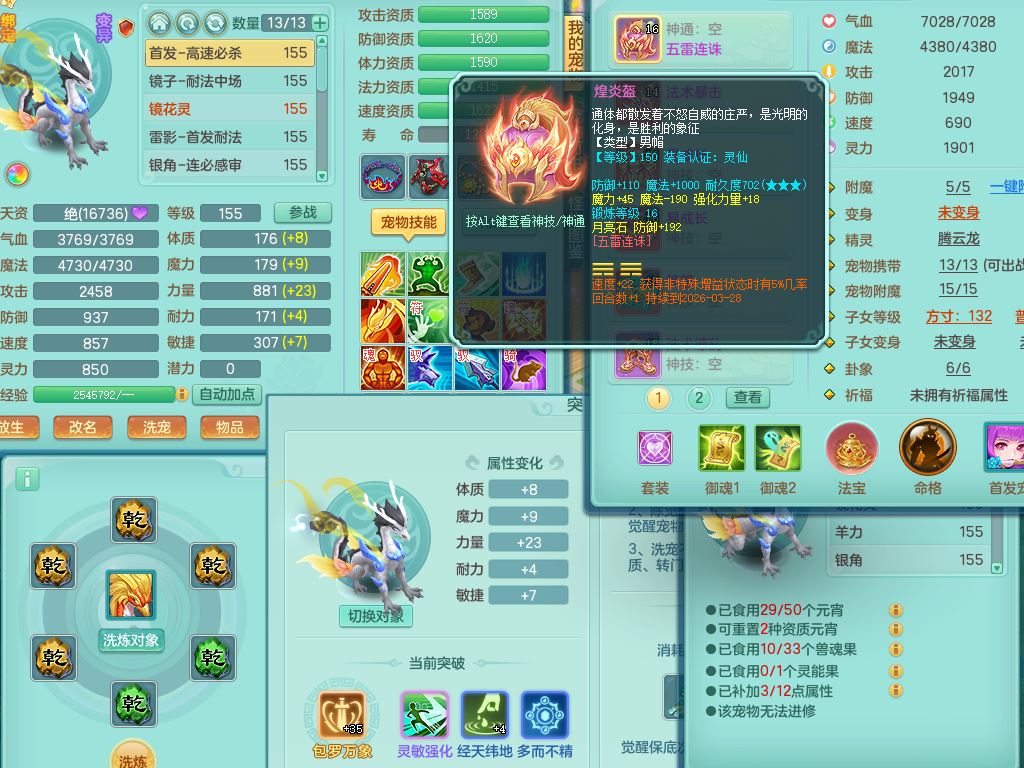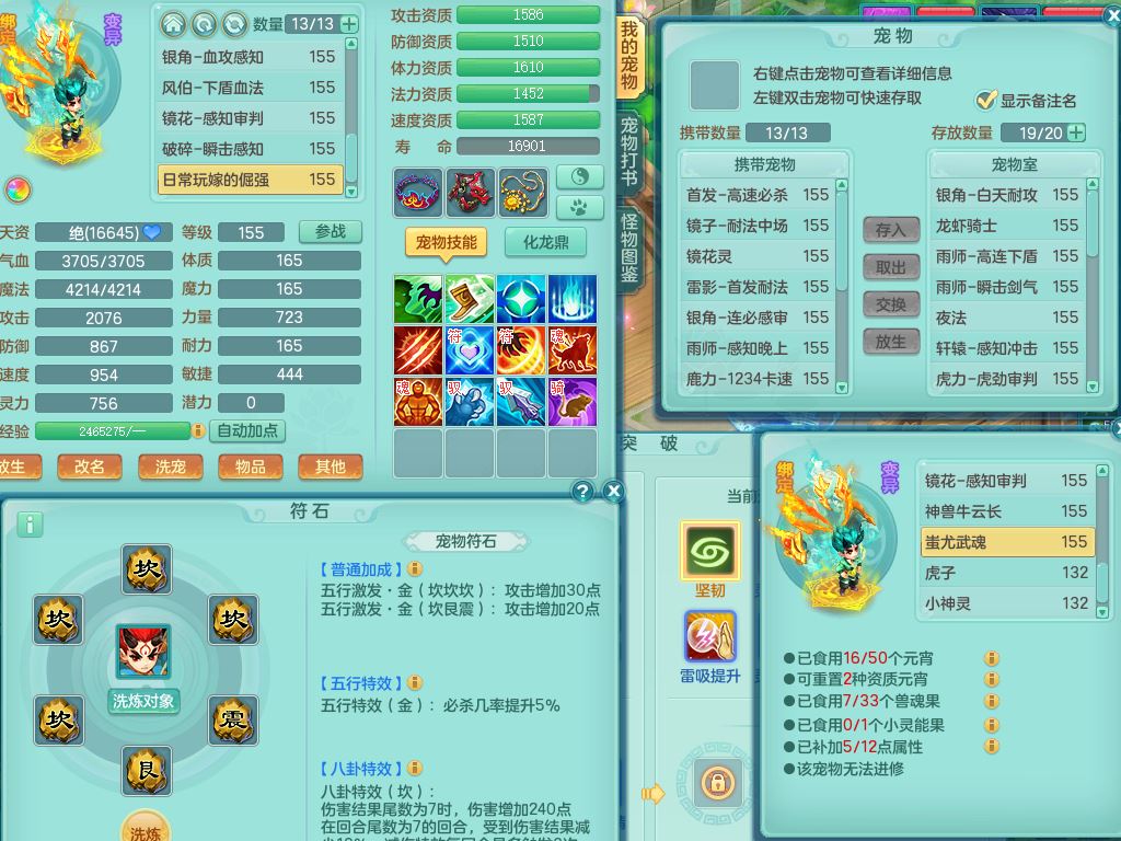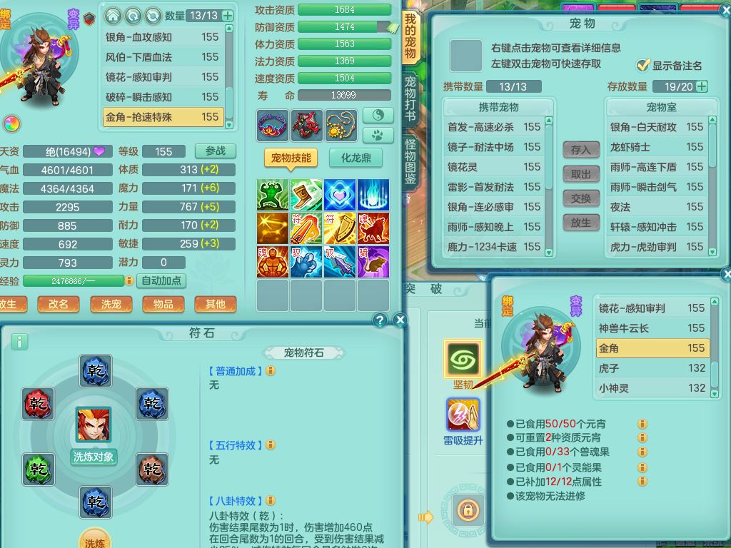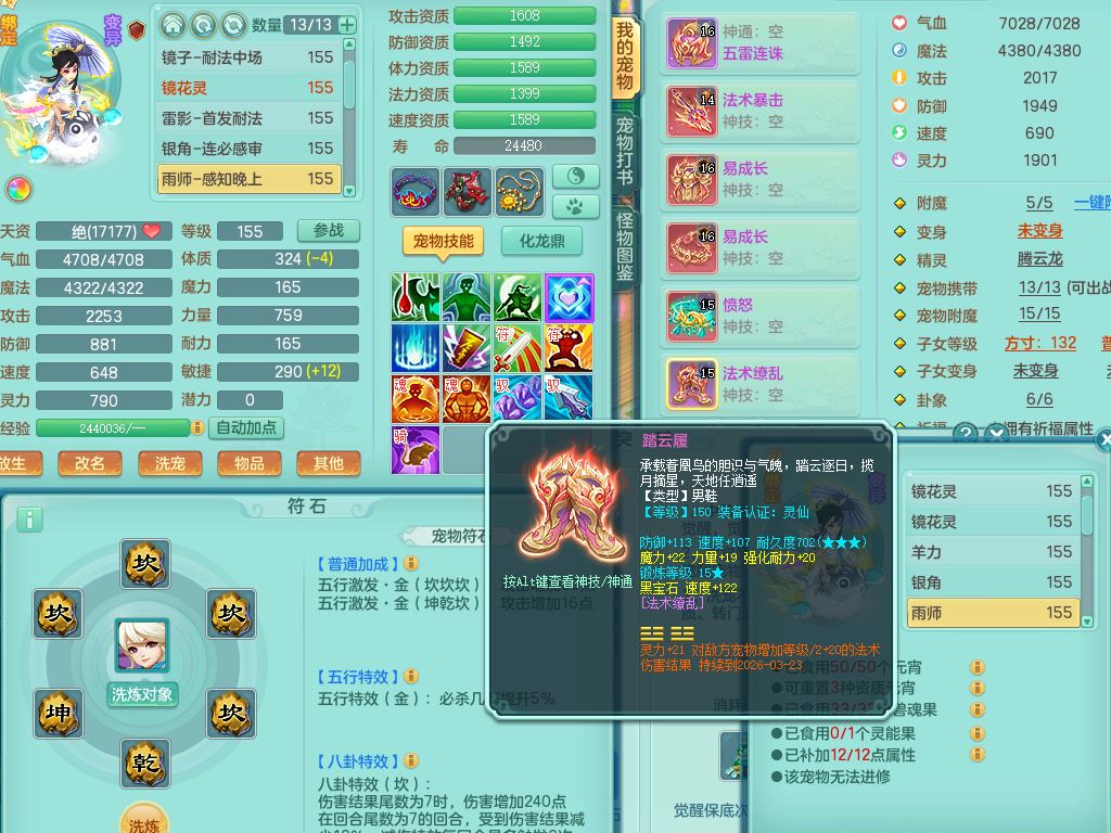 tx9747天下无双159男天宫精灵怒,满级共鸣,1内丹神,3镜花灵,综合8只满果子4觉醒10个4字1个5字,单加法爆武器,单加五雷头,263单加Y项链,Y衣服,法术缭乱鞋,鼎4.5,2套符石,永久外观精灵皮肤,30仙兽灵,飞行双人坐骑