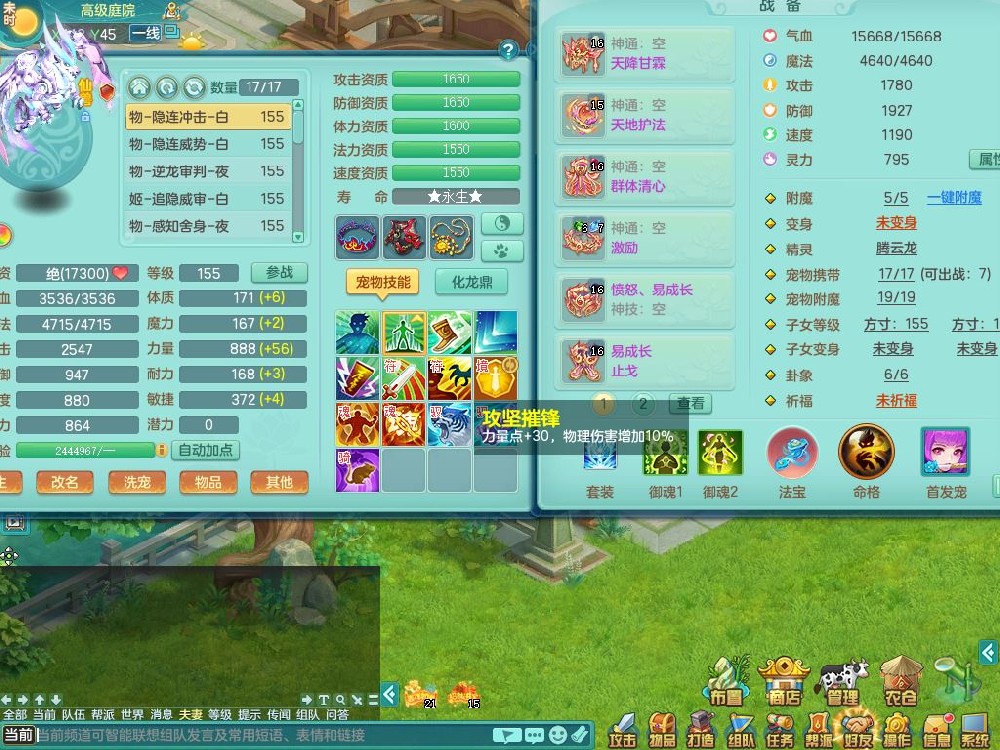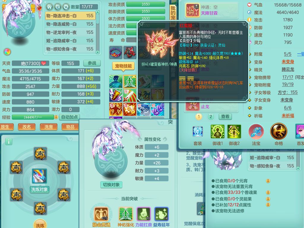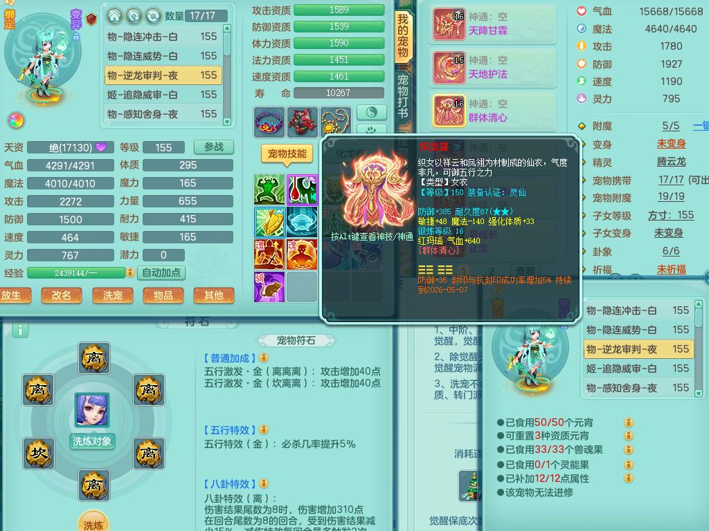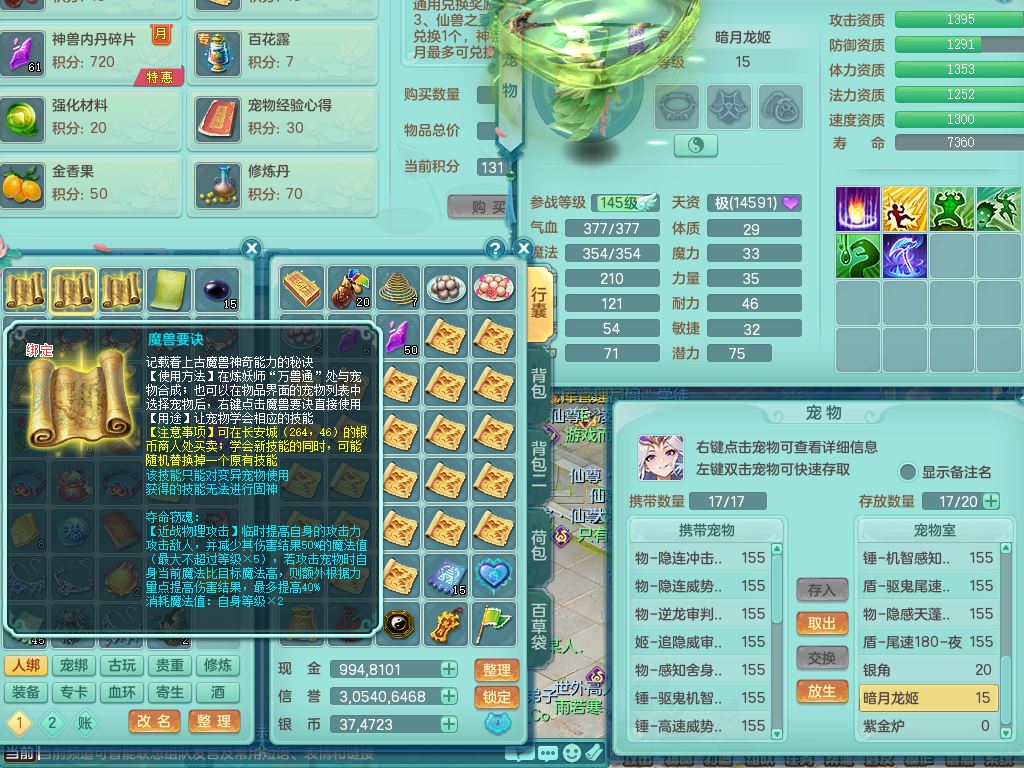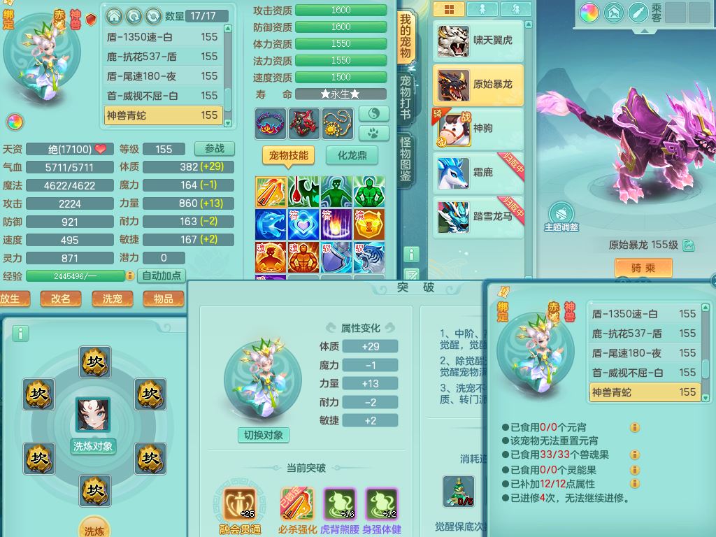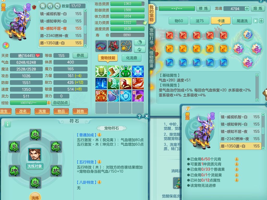 tx9752天下无双159女佛门【潜龙号+神驹马上发财+暴龙洪荒+火焰之力】精灵歌,1龙(换)3内(1青蛇)2破境1皮,4特殊(逆龙/舍身/登云/夺命兽诀)4镜花灵1龙姬,17格子21只满果子10觉醒8个纯6字,8红愤怒5特,愤怒Y腰带,单加Y止戈鞋,鼎6.0+70+280,2套符石,20天月卡,永久外观精灵皮肤,56内丹碎片,78果子,宠排在榜,3坐骑(2只双人)