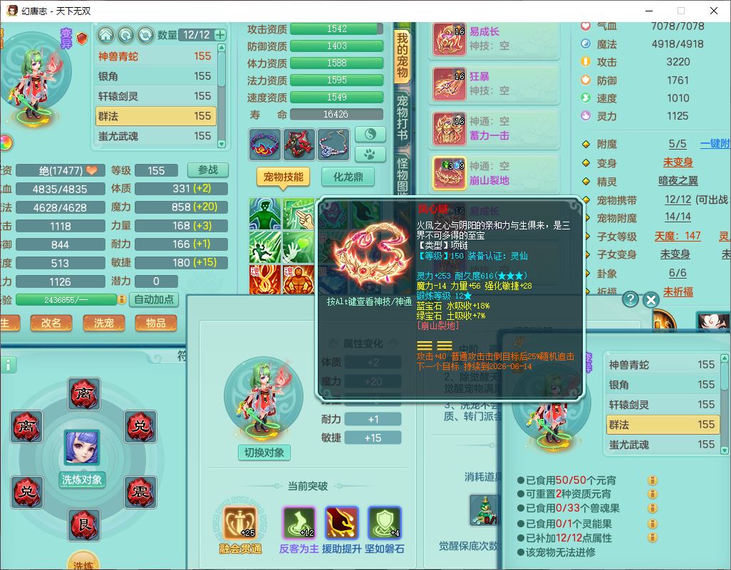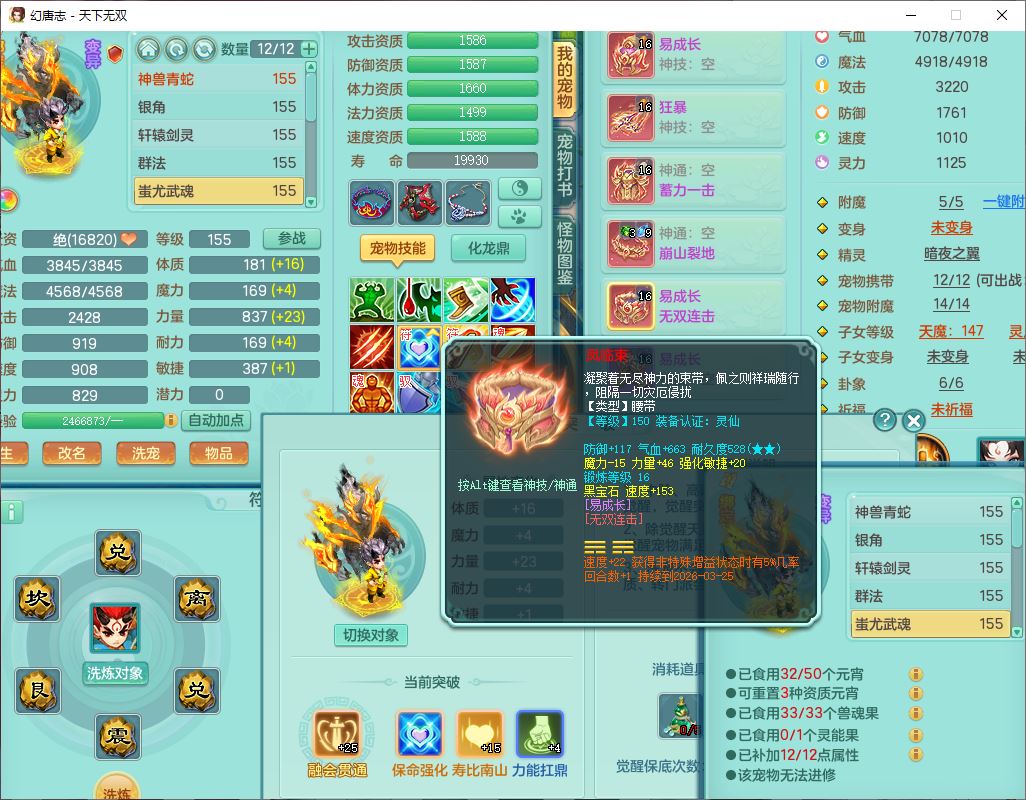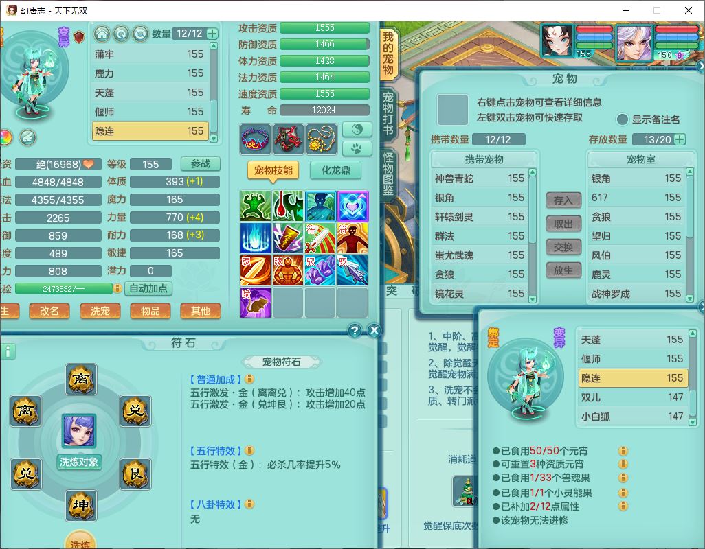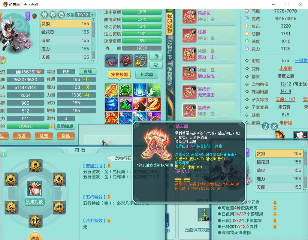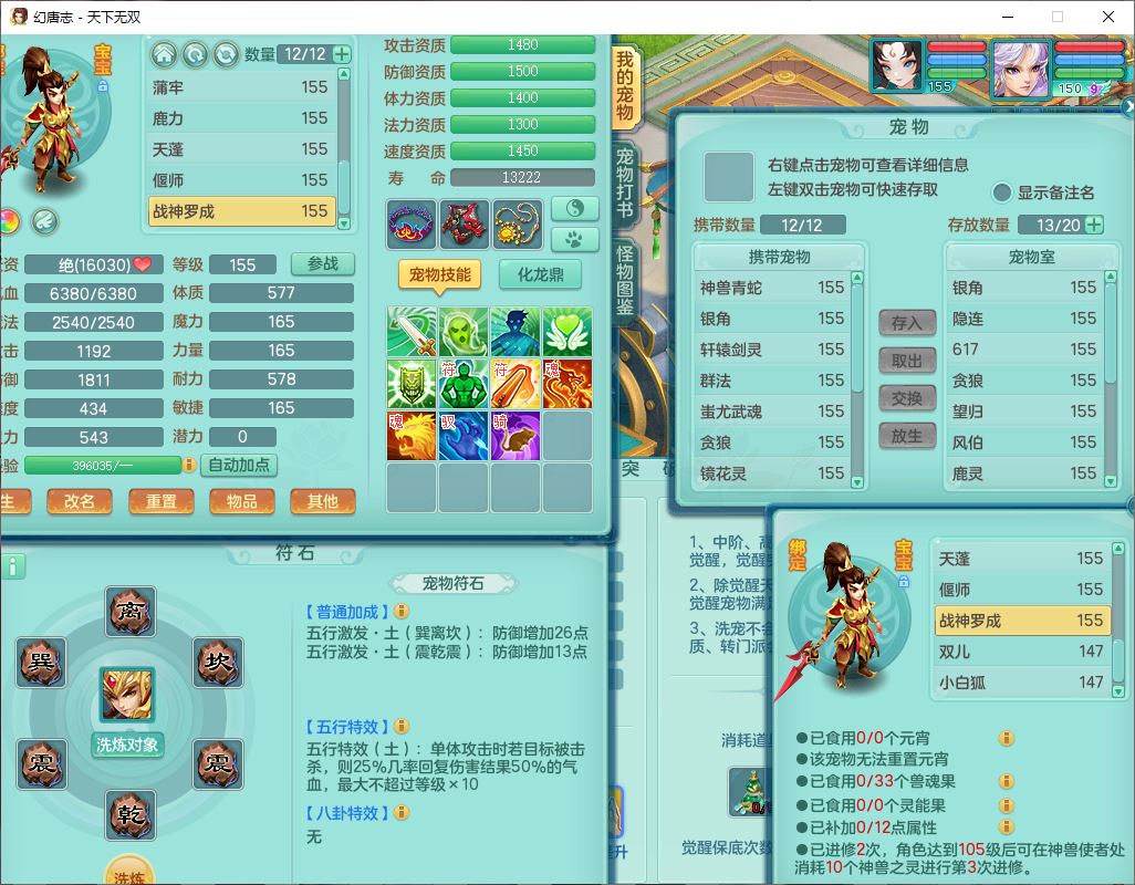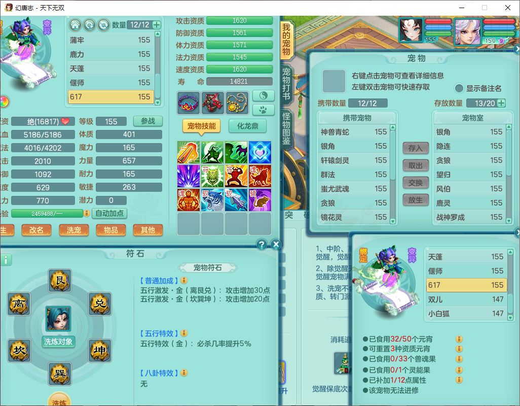 tx9761天下无双159男万兽精灵歌,1内丹青蛇1神兽(无内)1望归1镜花,4觉醒,7红全单加装备,926狂暴武器,崩山项链,Y破血腰带,鼎5.0,永久背饰,20个仙兽灵,2476金币,1飞行坐骑
