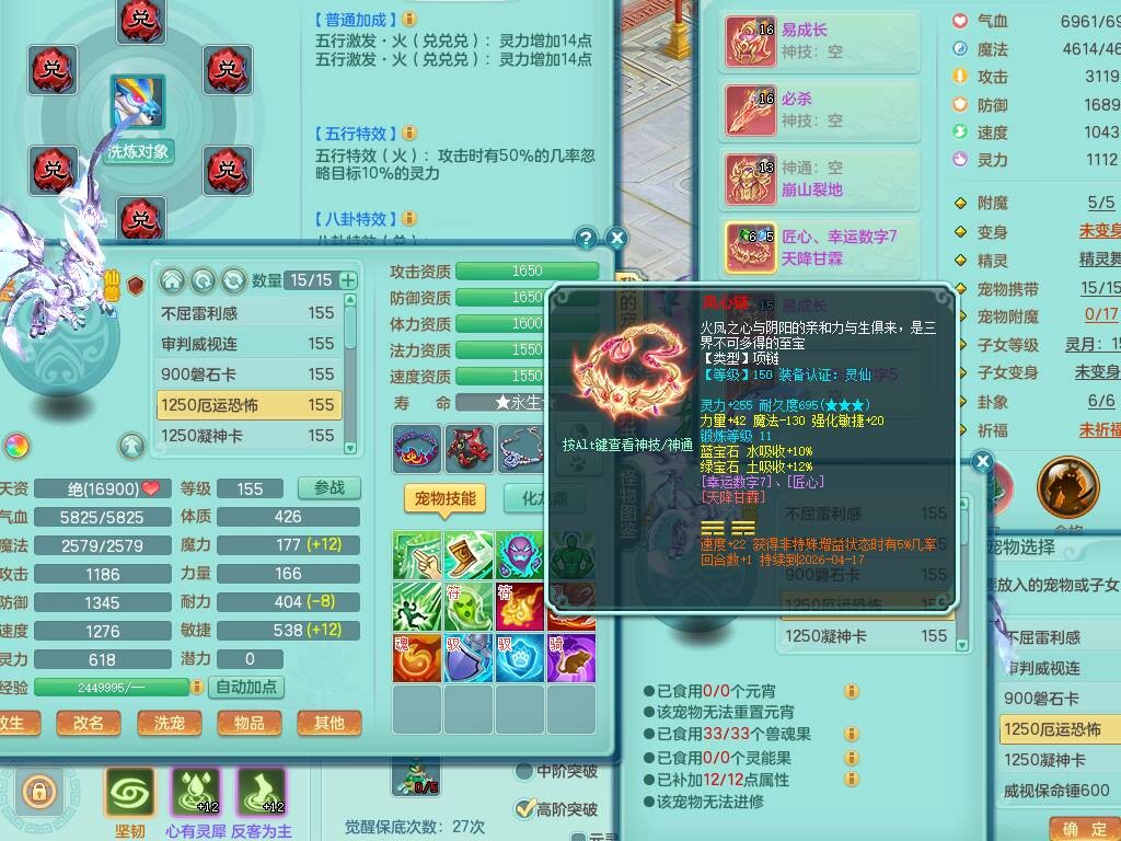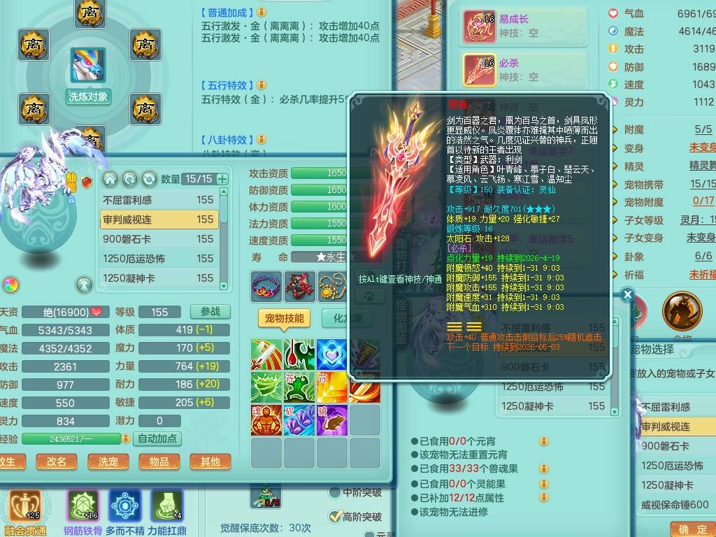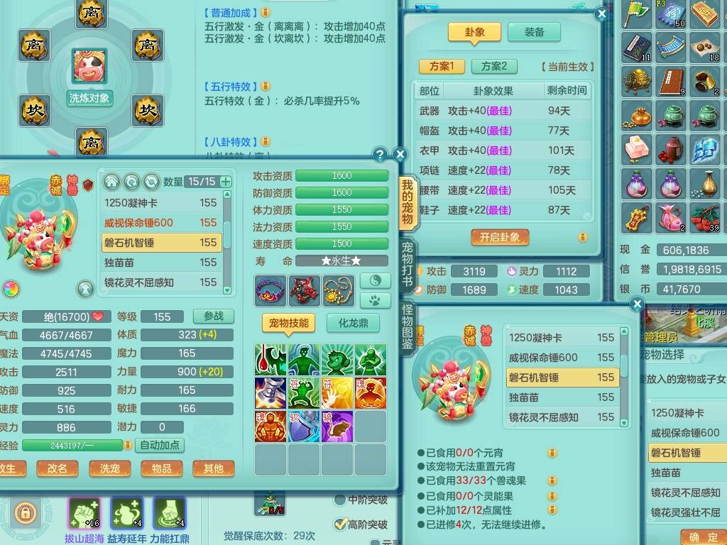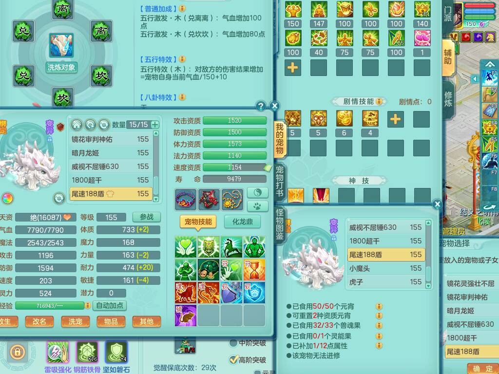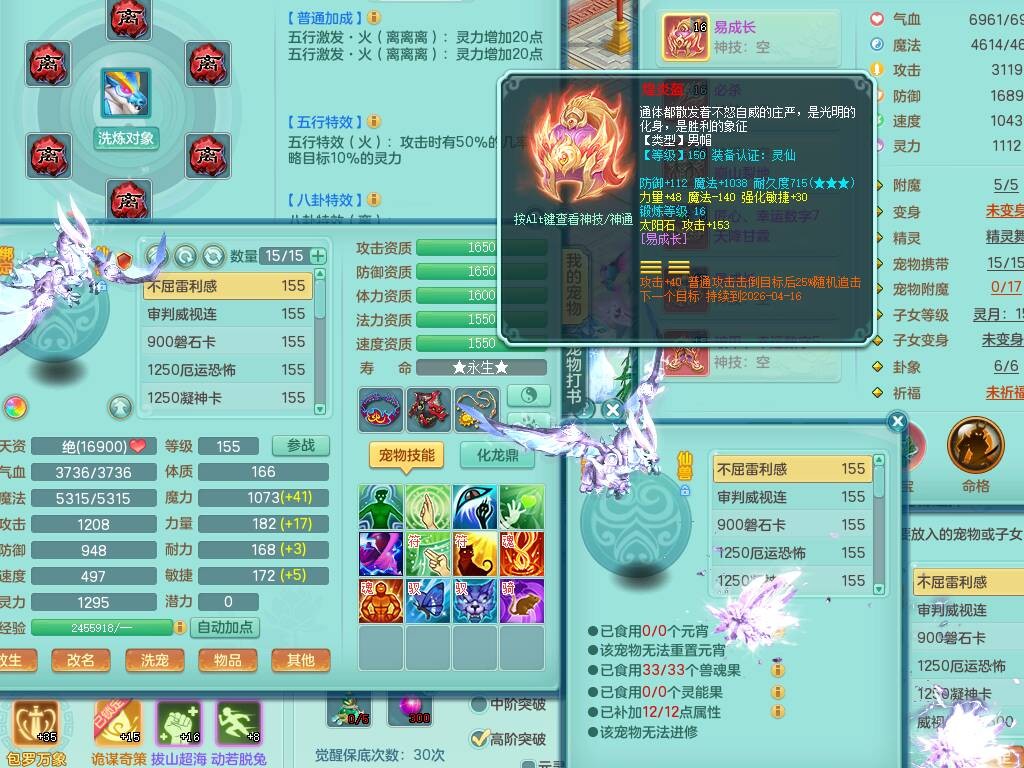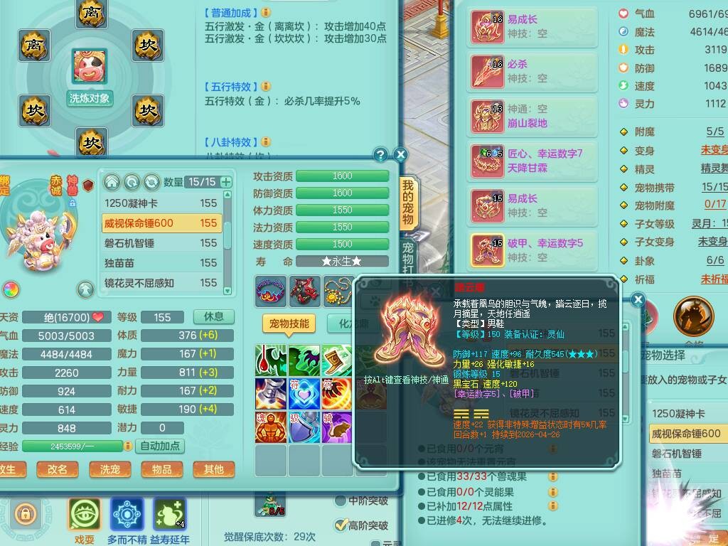zn9762周年相伴156男天宫精灵舞,5龙2内胆神,3只觉醒,极品7位靓号AAAAABB,5宠皮,3只六技能镜花灵,1只六技能龙姬,崩山单加57衣服,幸运5破甲鞋,三红幸运7匠心四海项链,4.5基础鼎+70攻,10个纯六字,17只满果子,仓库还有120个果子,宠排在榜,修炼在榜,2只双人坐骑,暴龙泰坦+洪荒+逍客+神驹心想事成+红红火火+火焰之力武器+西瓜冰武器,仓库24神兽内胆碎片,冰晶庭院,39仙兽蛋,带153天月卡