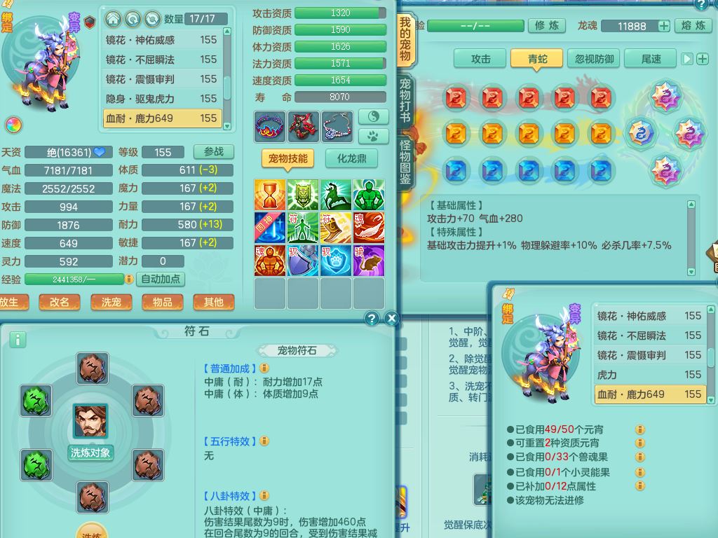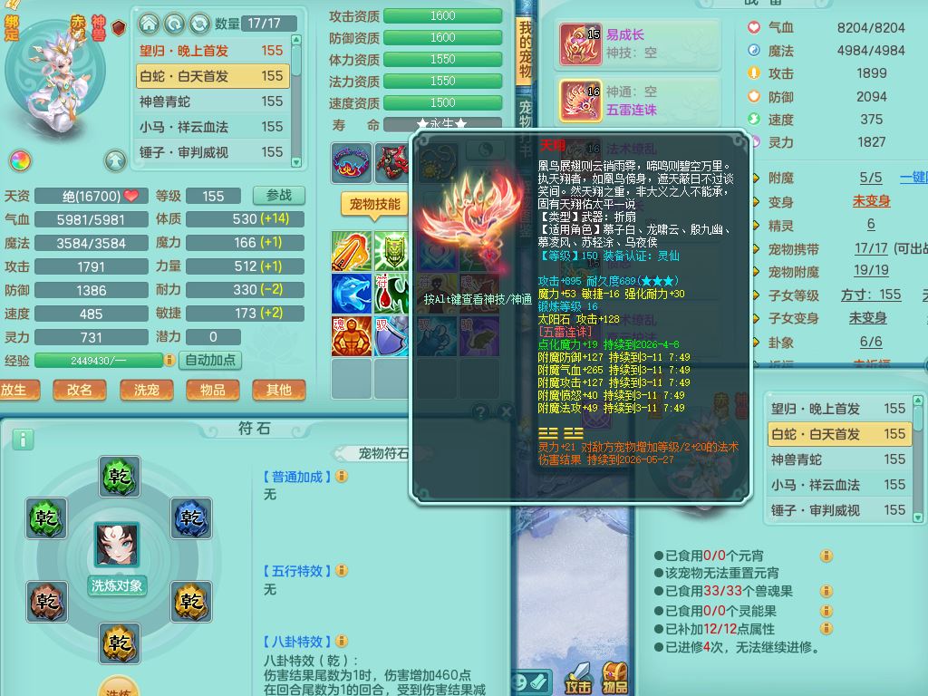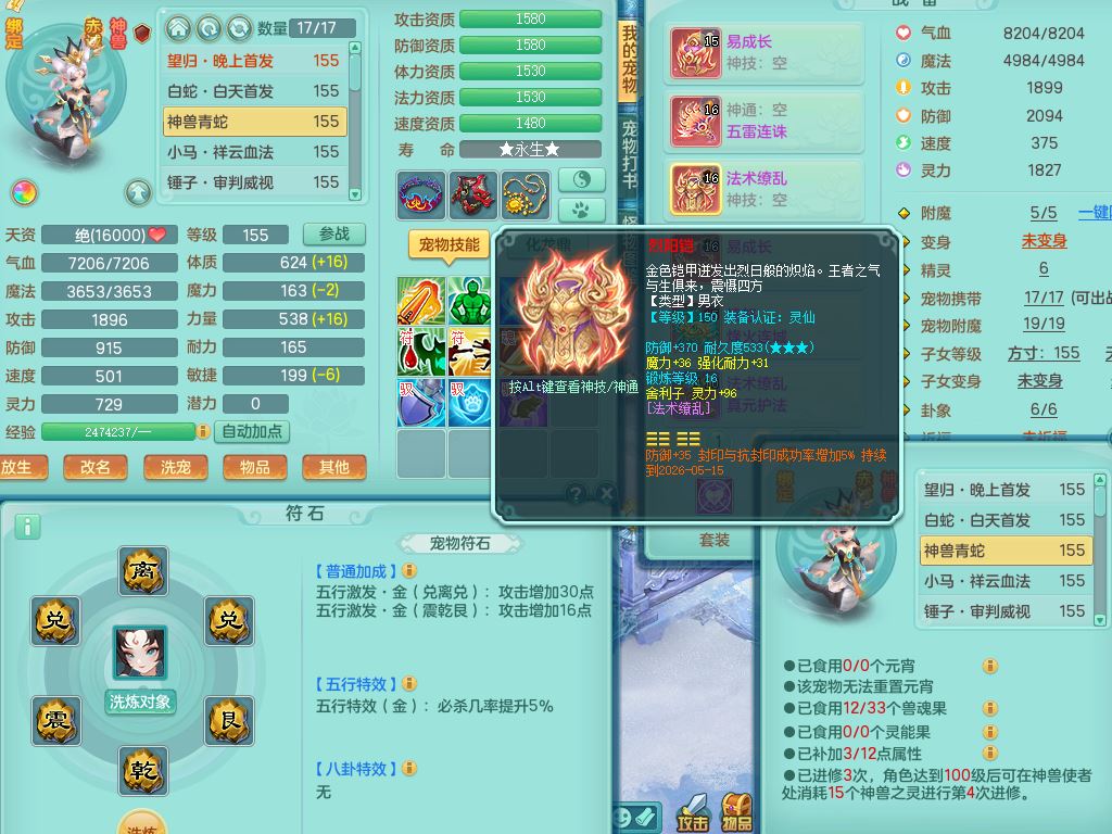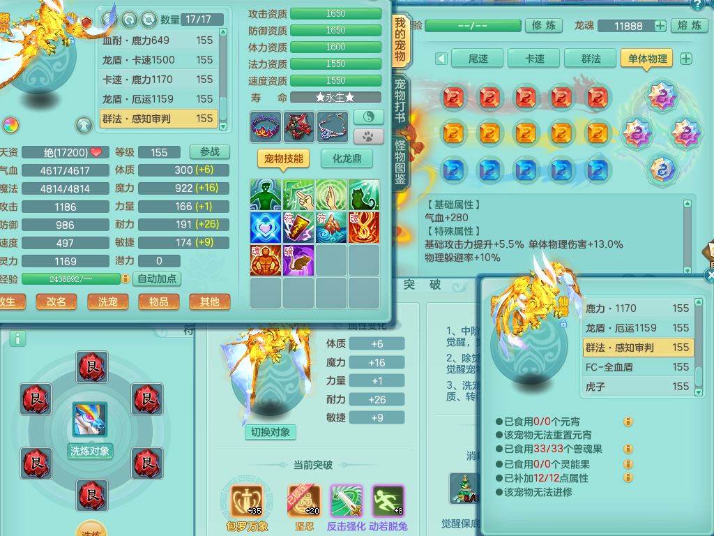 tx9764天下无双159男魔王【潜龙号+神驹红红火火+暴龙洪荒+火焰之力】精灵舞,4字靓号,7龙(换)2内(青蛇,龙马)5皮,6镜花灵1龙姬,17格子29只满果子10觉醒13个纯6字,双法缭8红,单加五雷武器,275Y项链,单加愤怒烽火腰带,物理满攻狂暴武器,崩山衣服,鼎5.5+70+280,2套符石,100天月卡,冰晶庭院208房屋178,永久外观精灵皮肤,39内丹碎片,宠排在榜,9坐骑(5只双人)支持分期